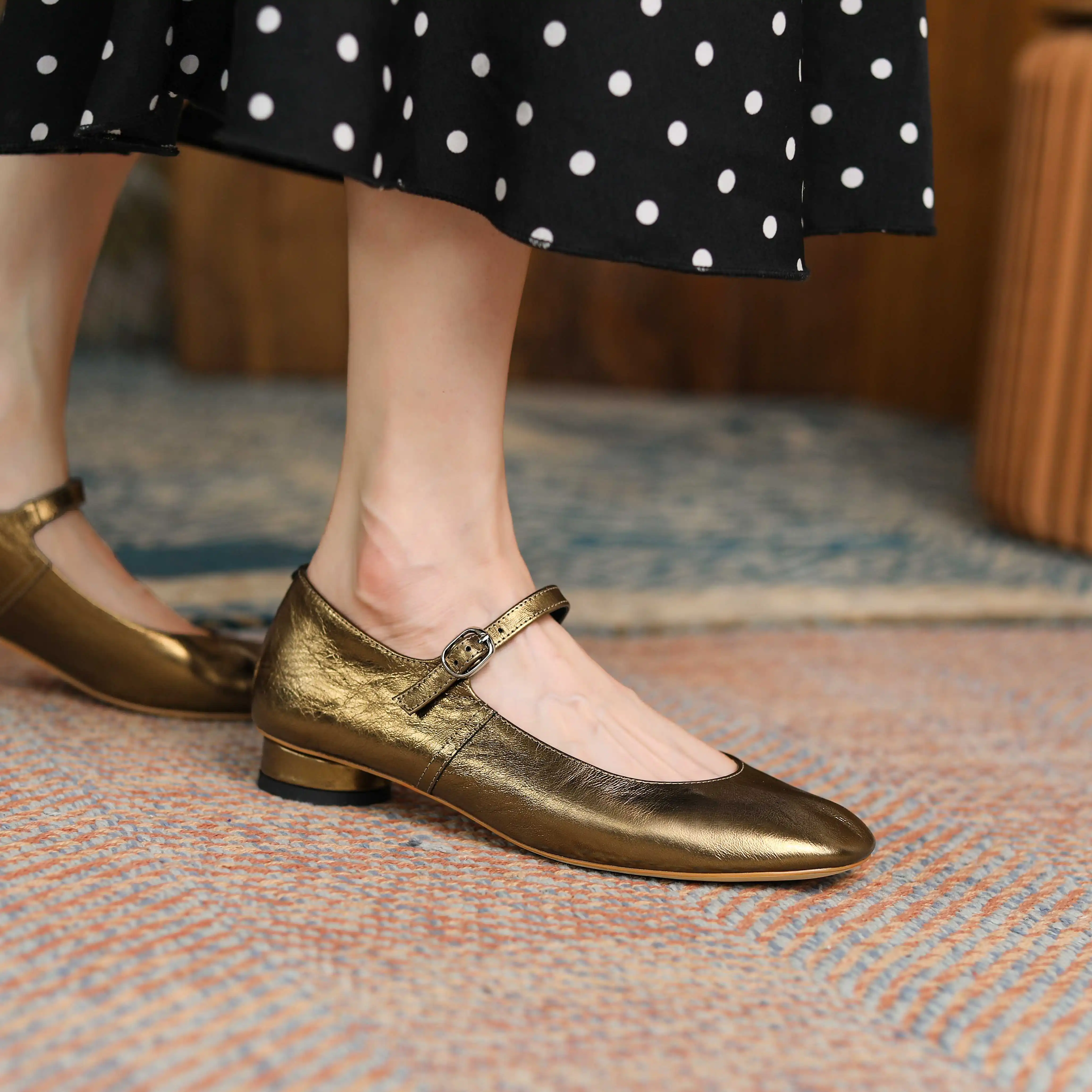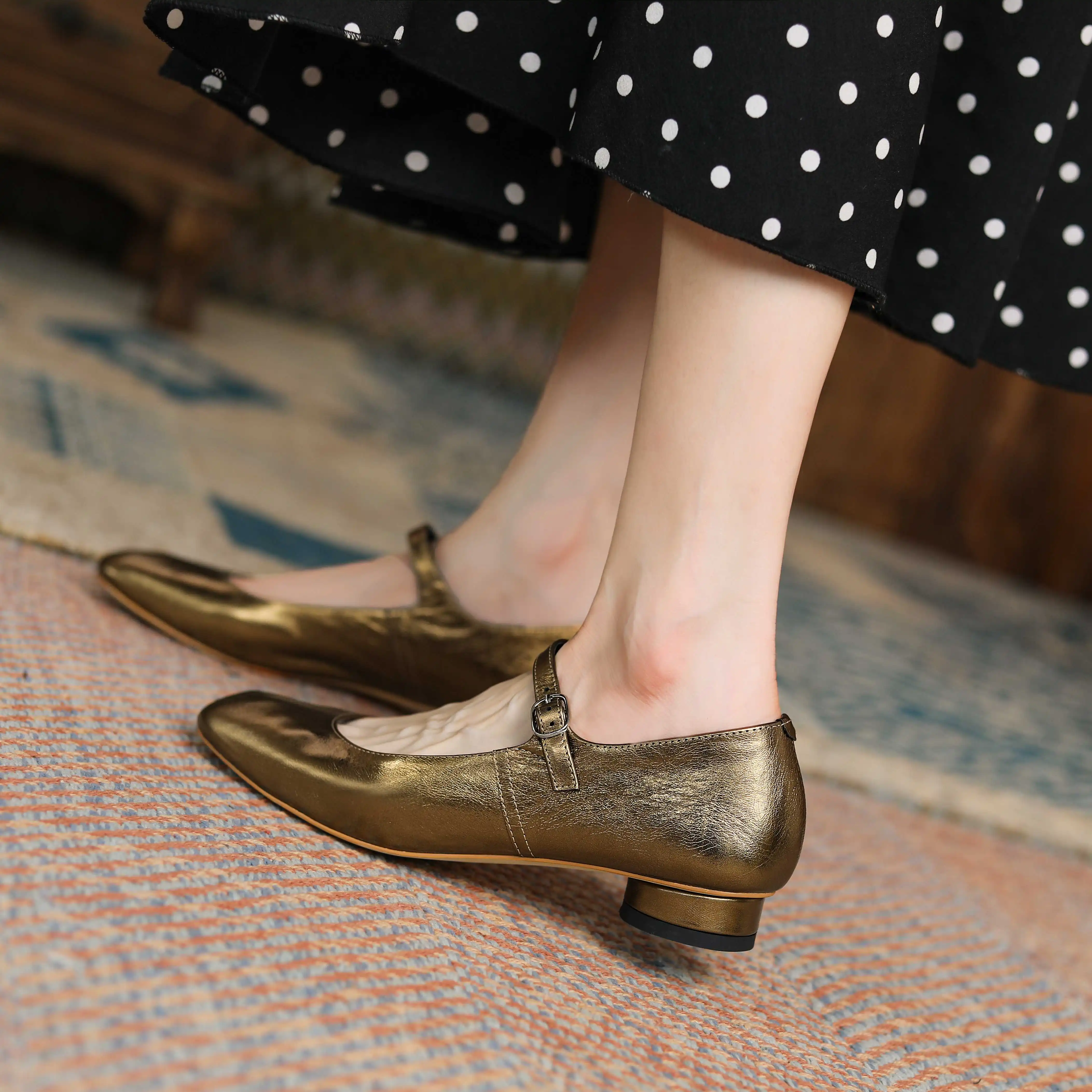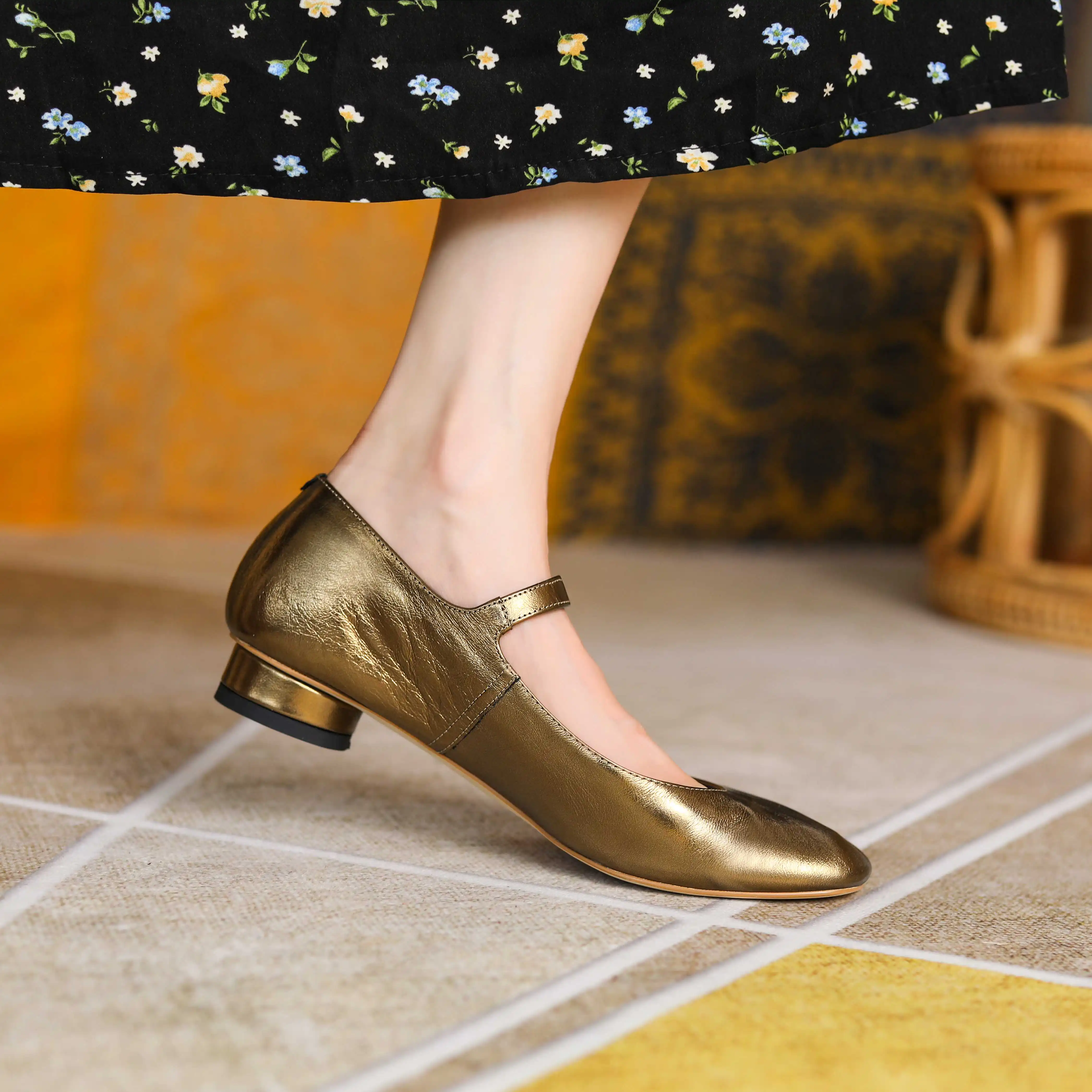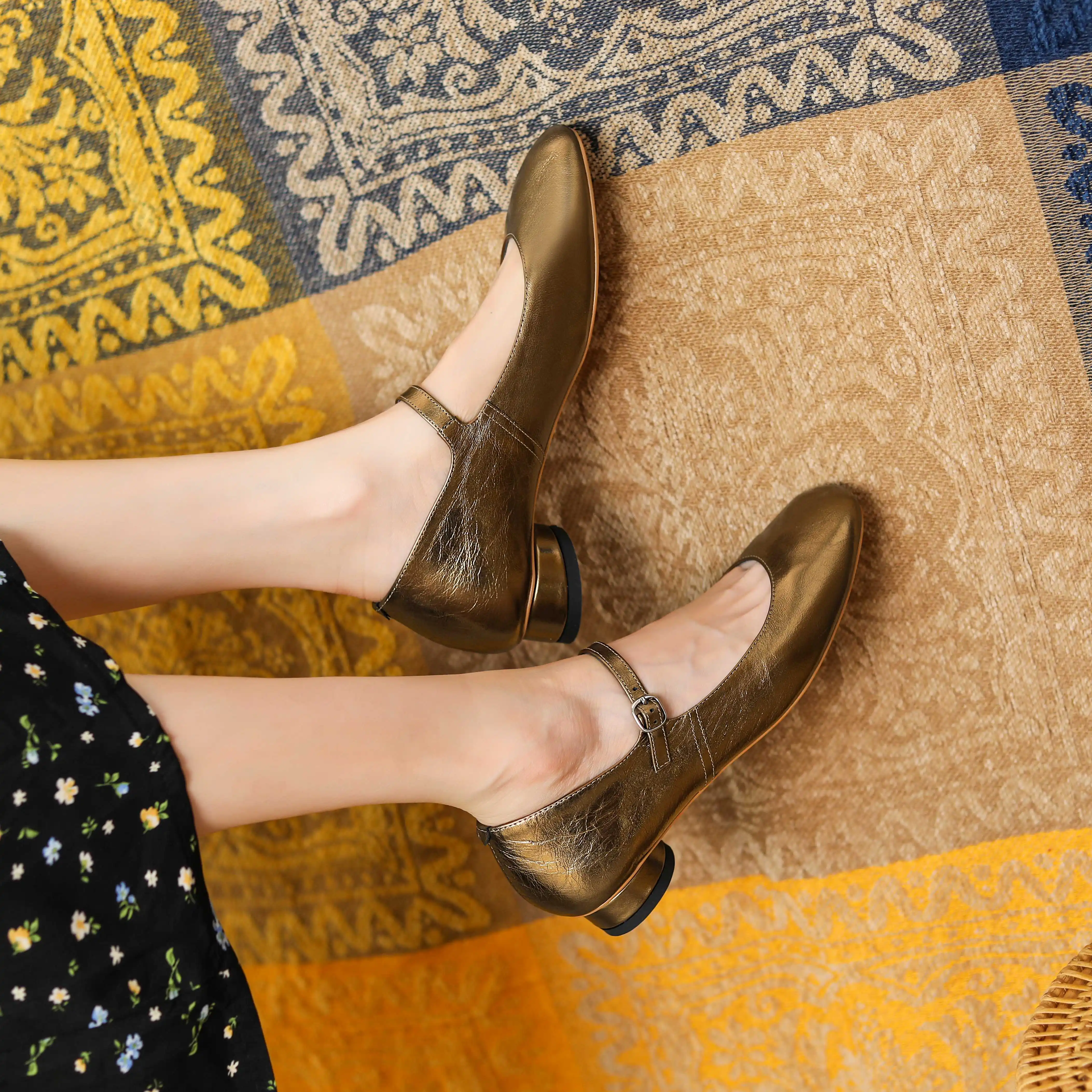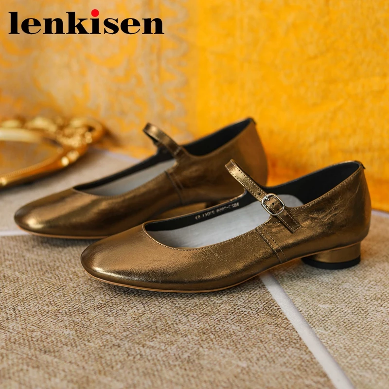 Lenkisen spring full grain leather round toe low heel Korean street beauty lady dating all-match buckle strap women pumps l58