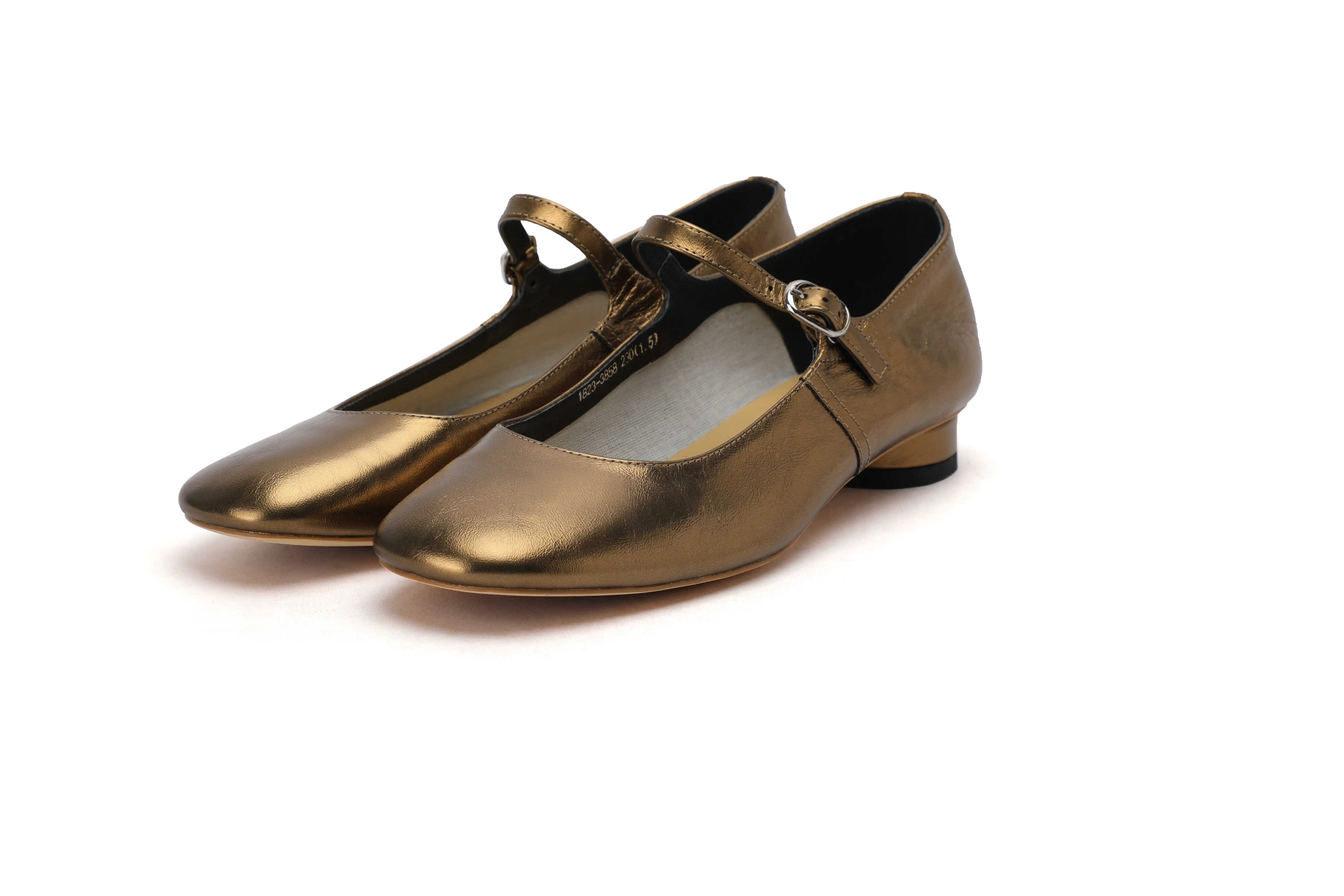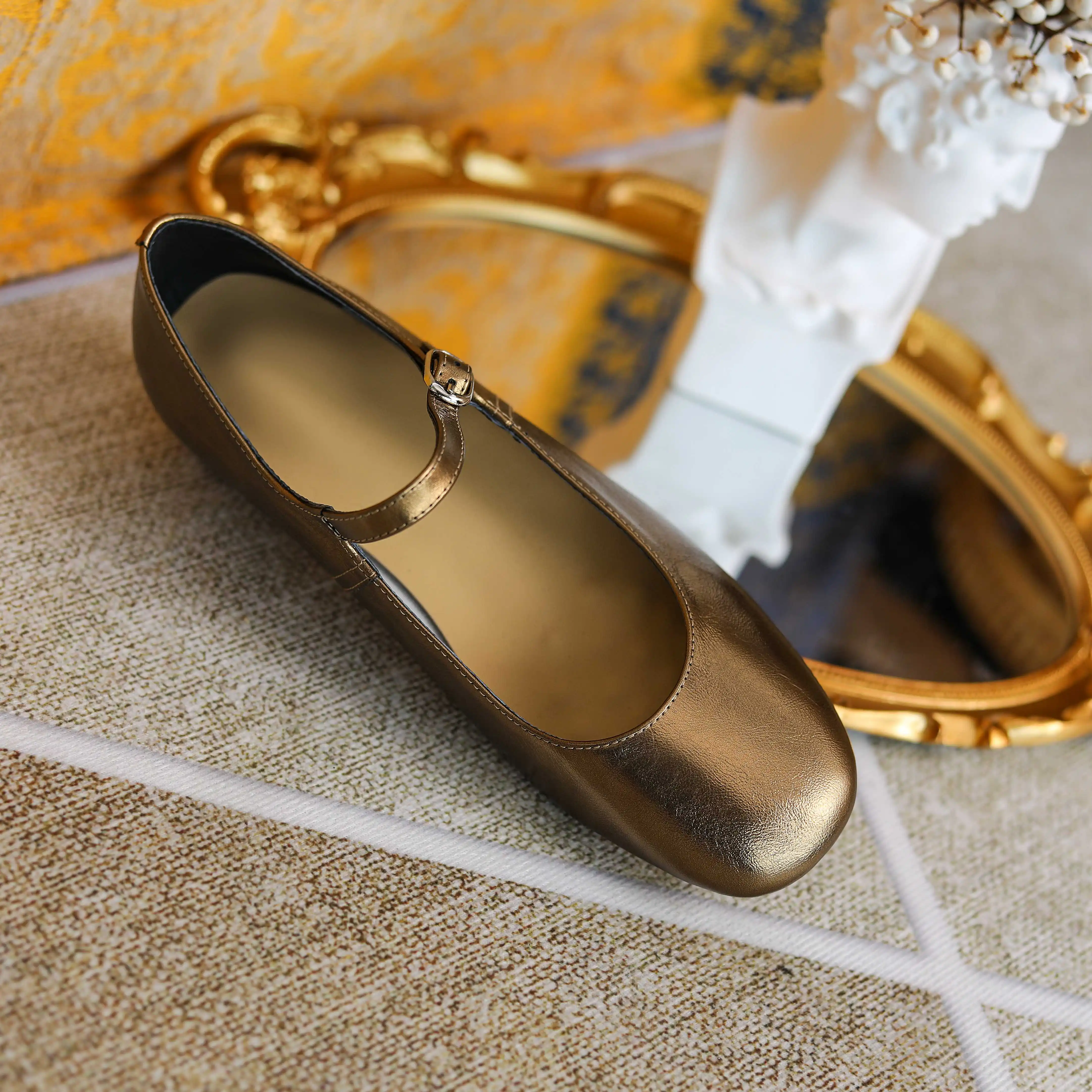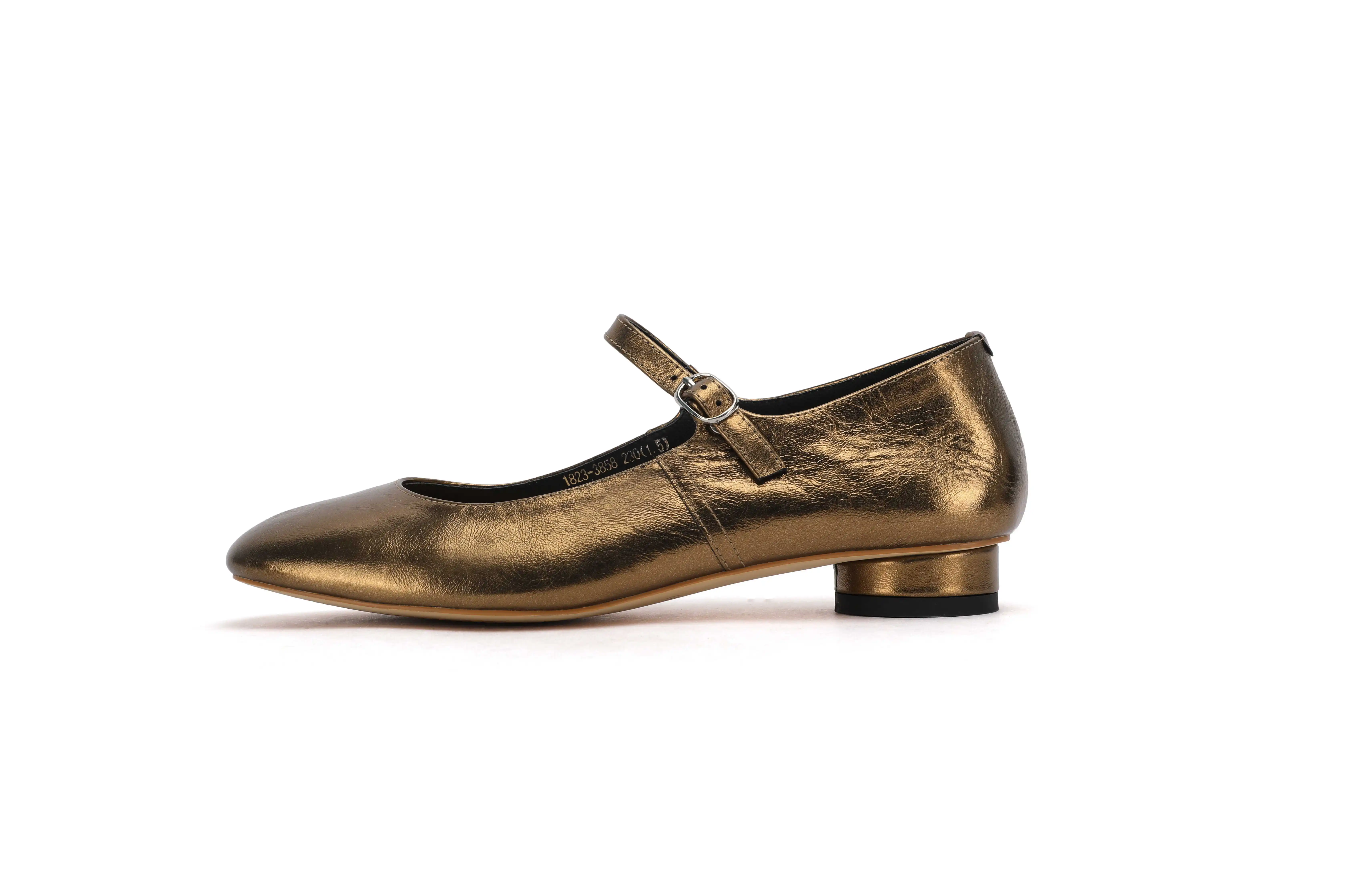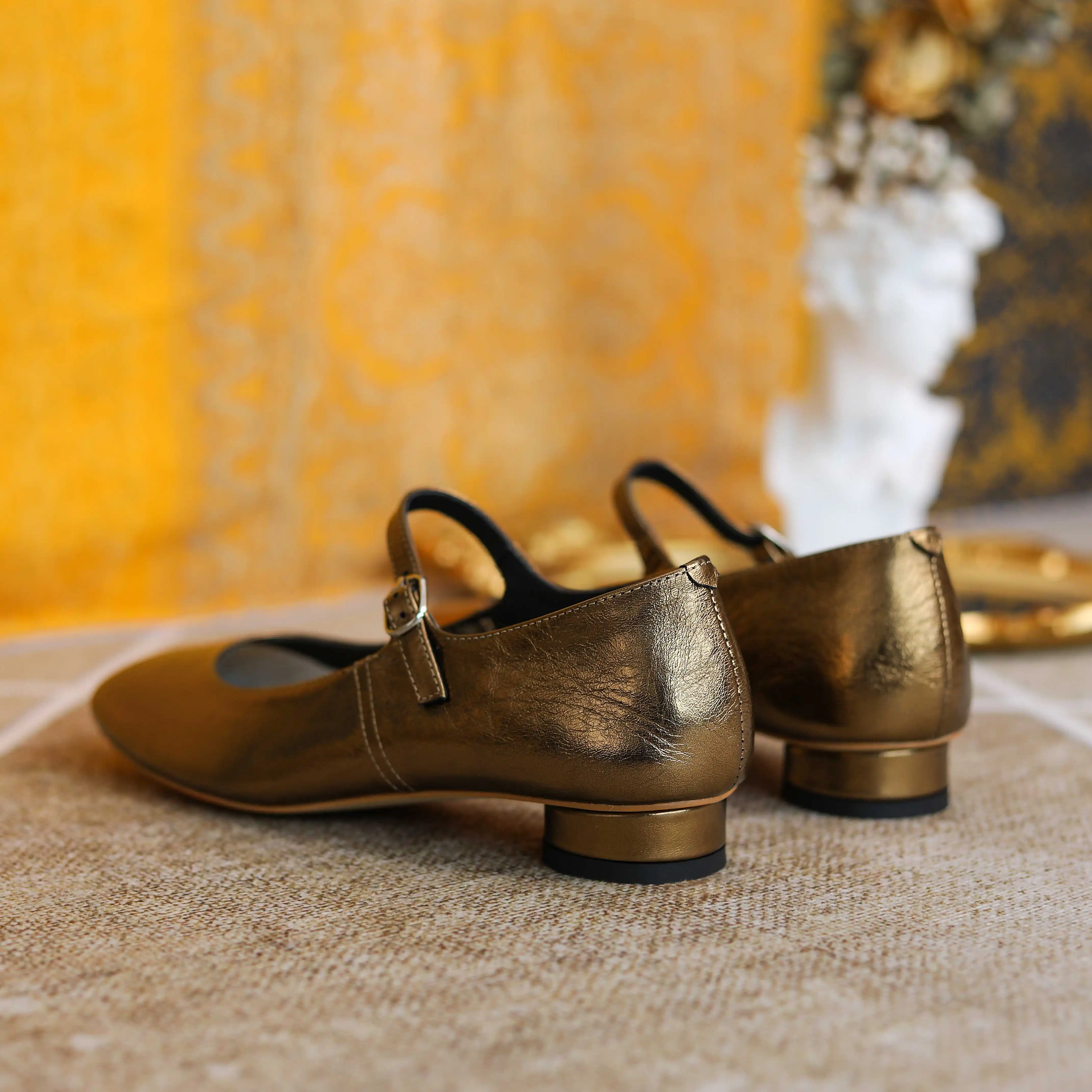 Lenkisen spring full grain leather round toe low heel Korean street beauty lady dating all-match buckle strap women pumps l58