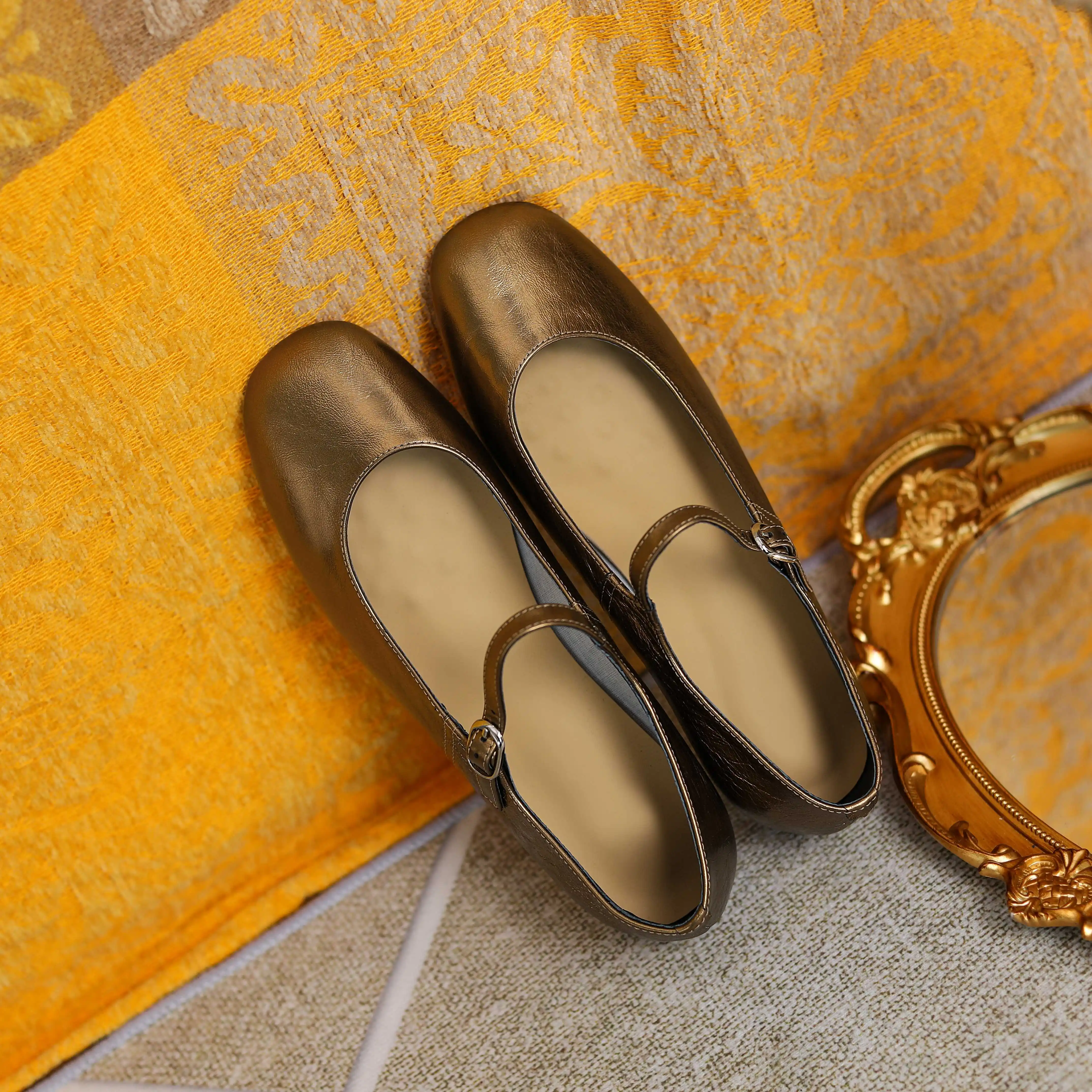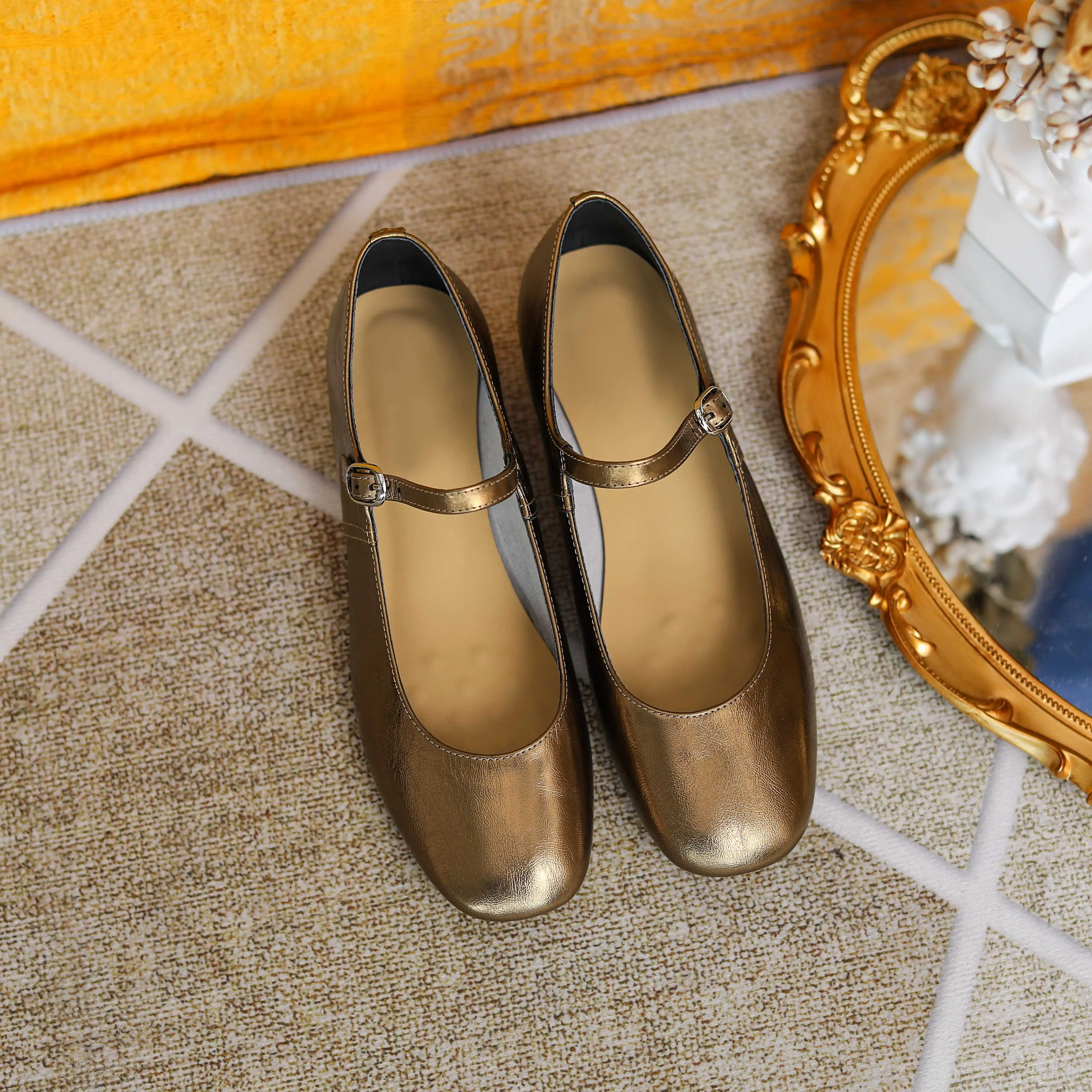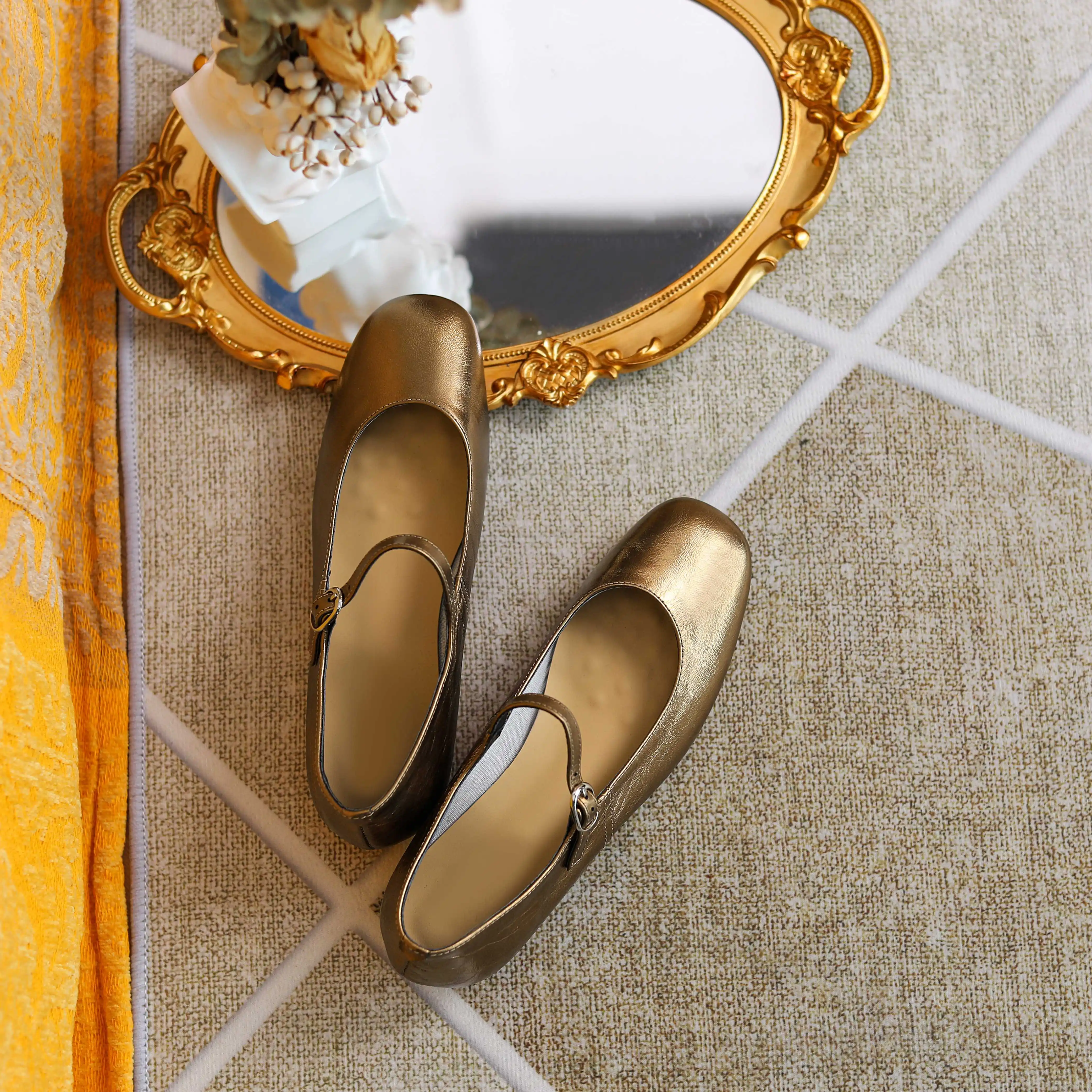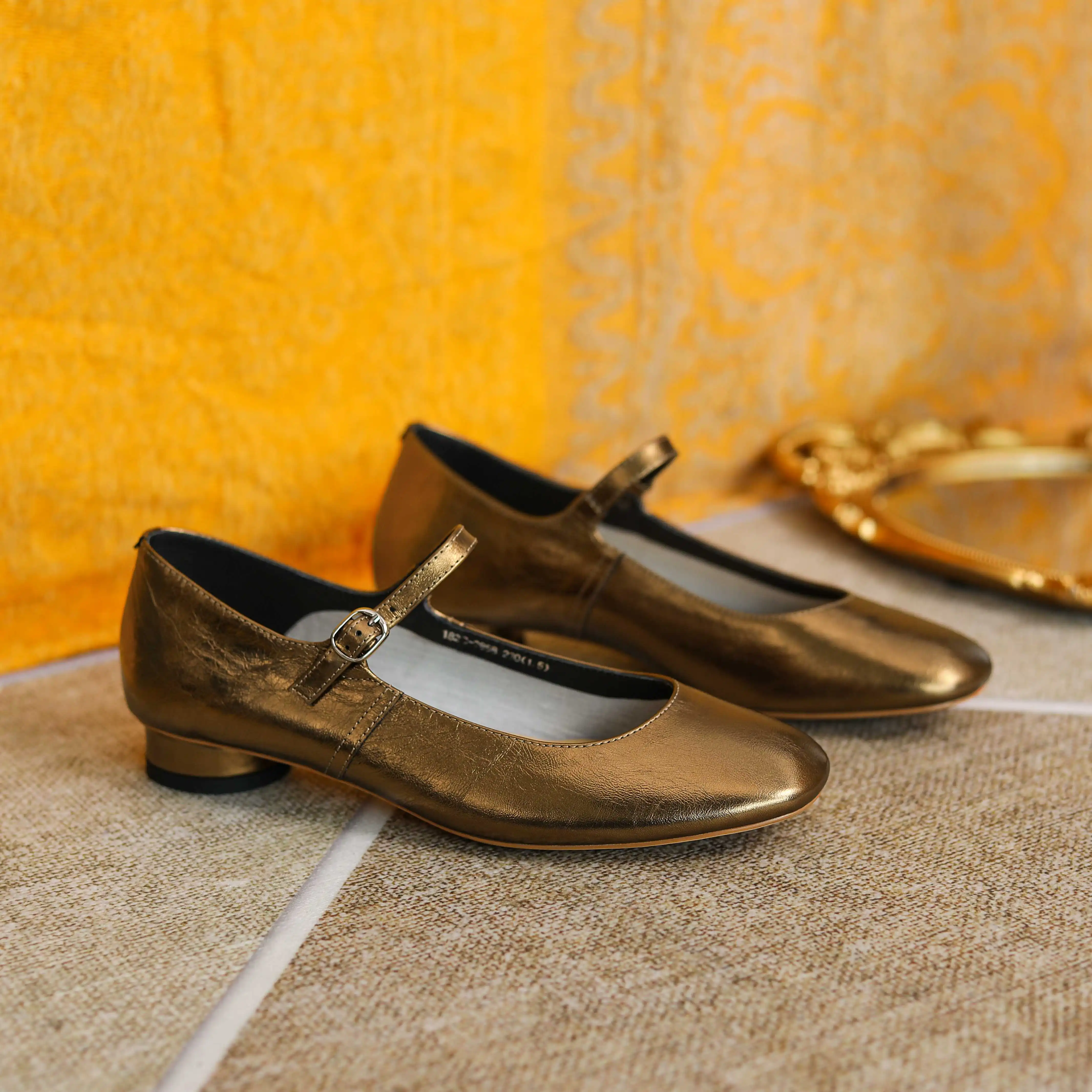 Lenkisen spring full grain leather round toe low heel Korean street beauty lady dating all-match buckle strap women pumps l58