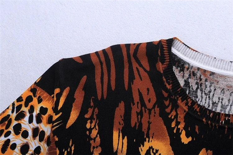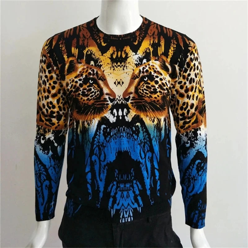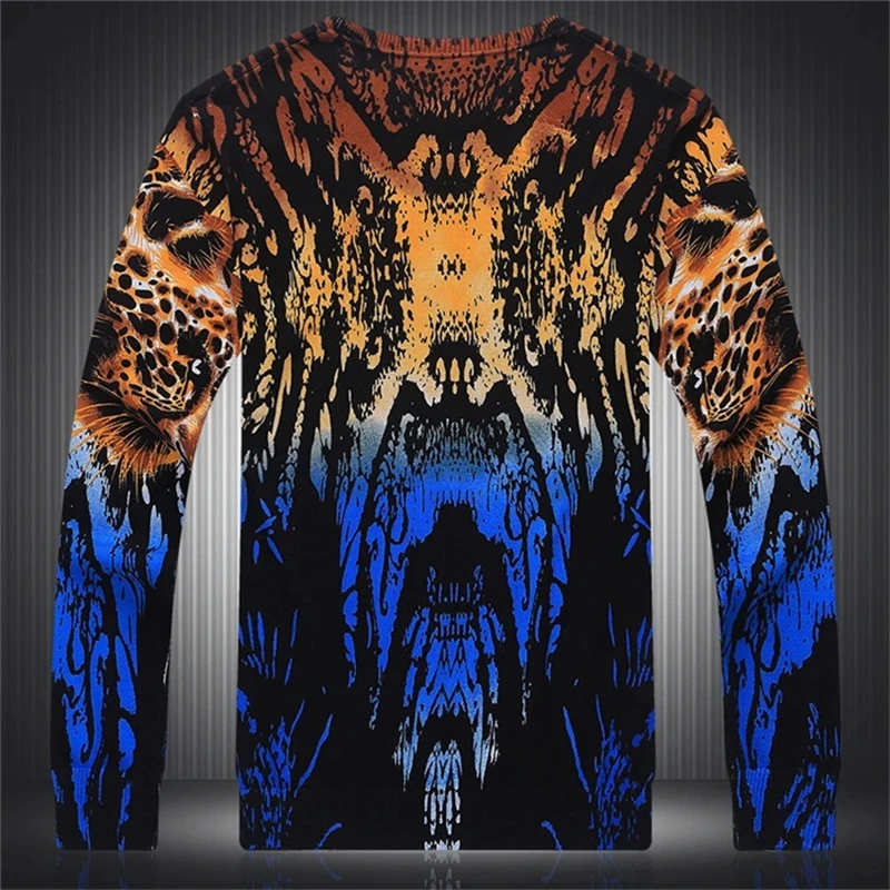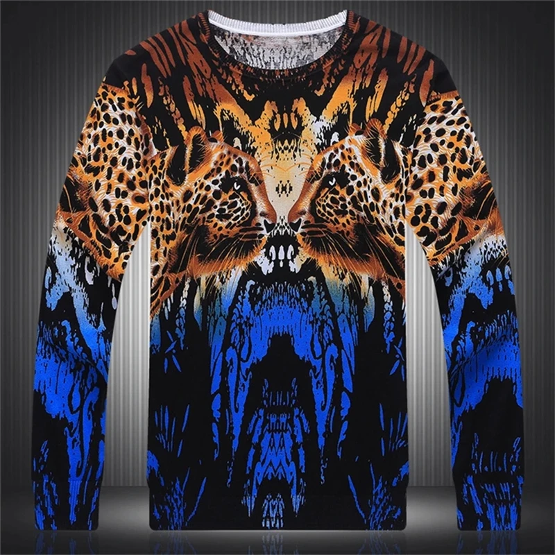 Leopard 3D Print Pullovers Knitted Sweaters For Men Chinese Style Autumn High Quality Smooth Fashion Casual Sueteres Para Hombre