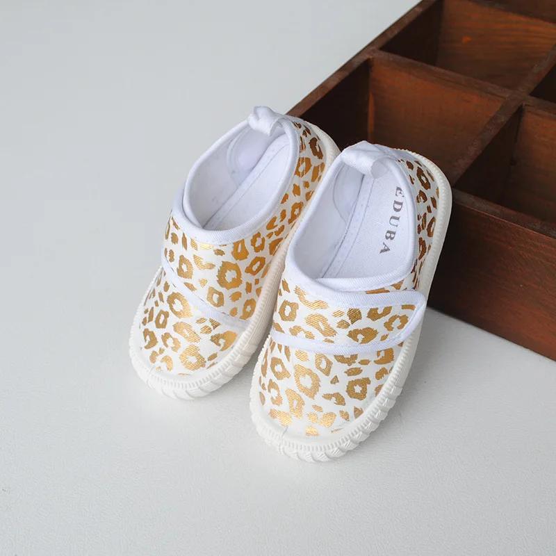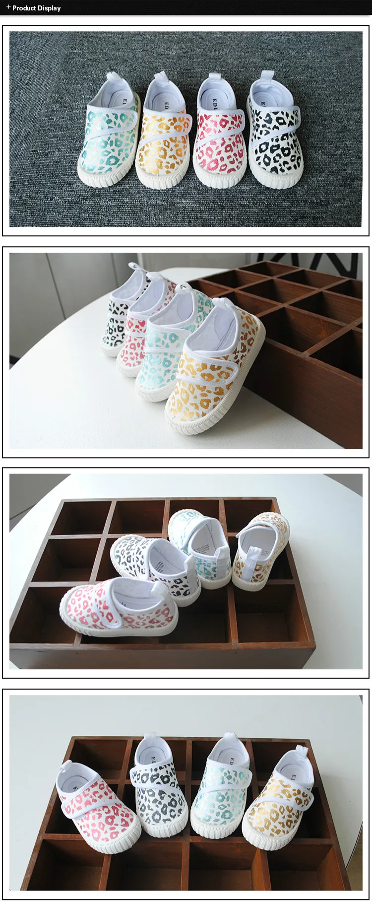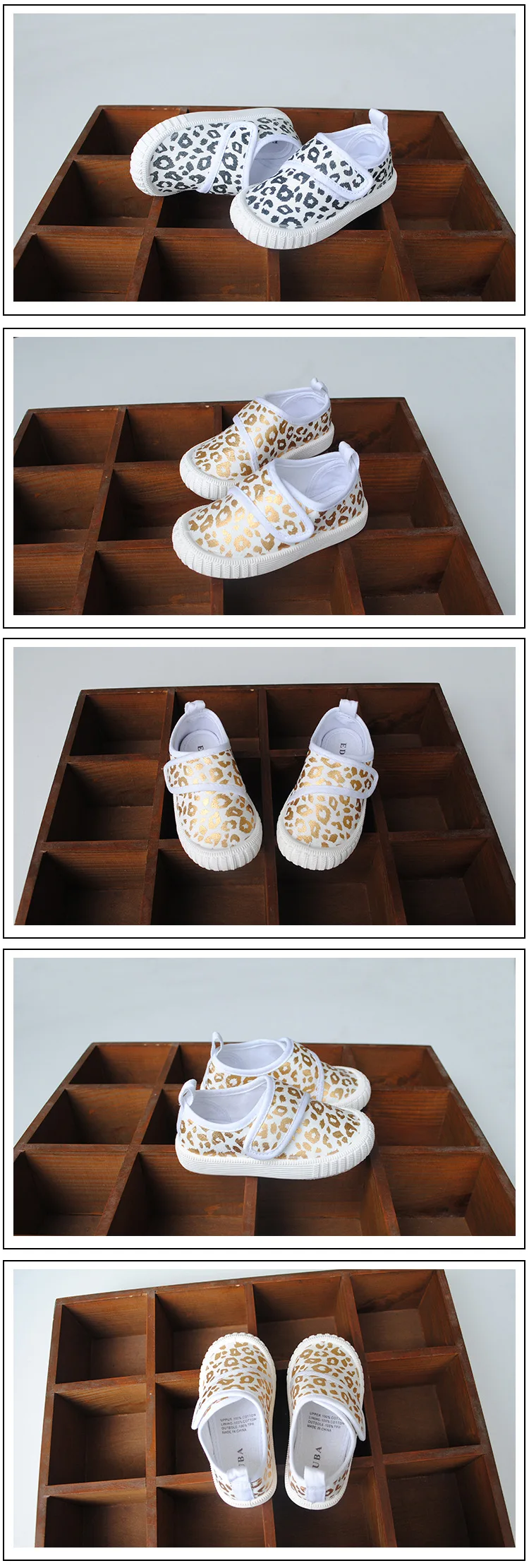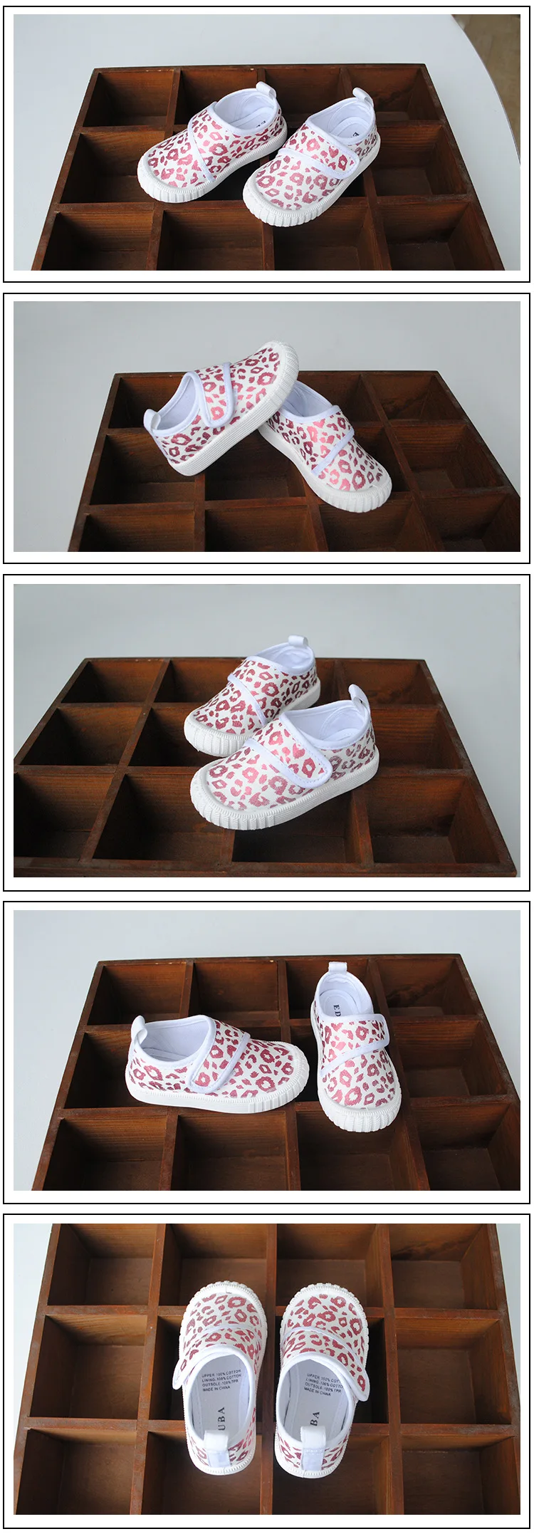 Leopard Print Kids Canvas Shoes Girl Shoes Soft Bottom Baby Toddler Shoes Hook Loop Casual Flats Sequins Tenis Infantil 23-30#