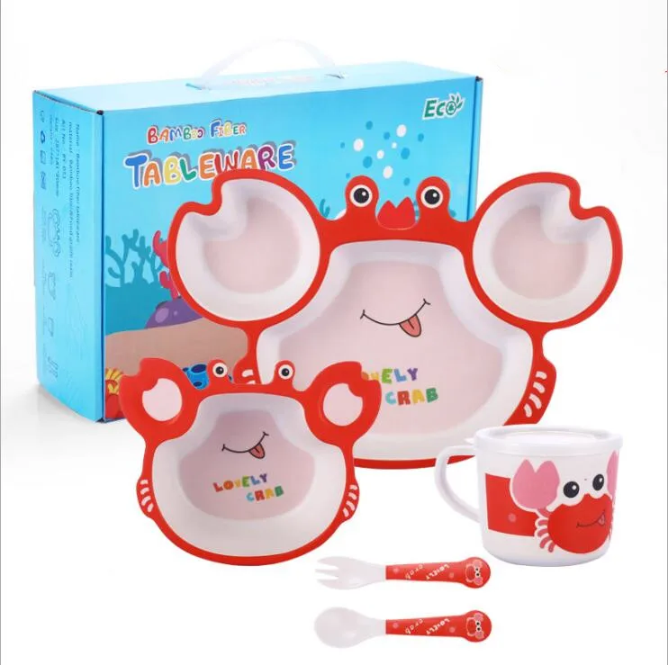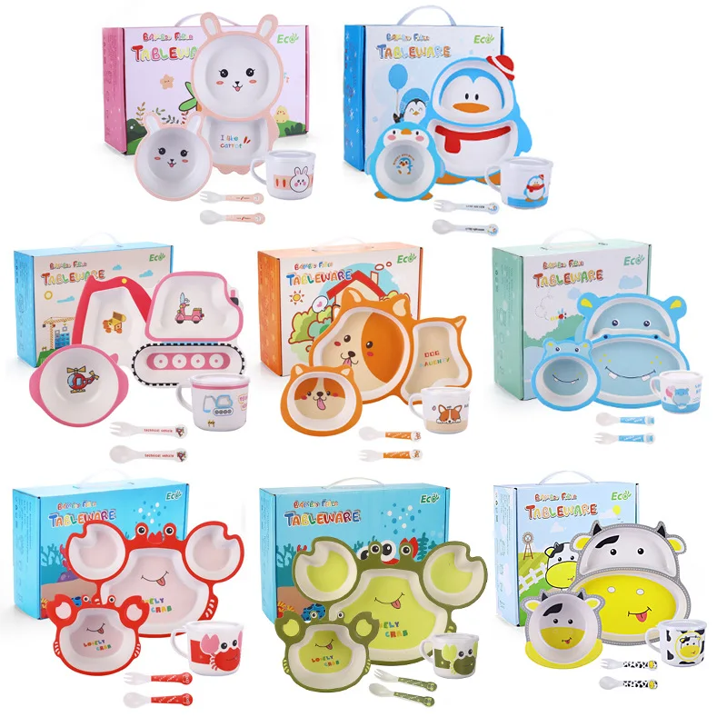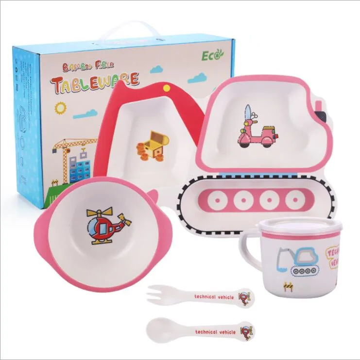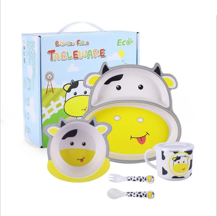 5 pcs/Set Baby Feeding Tableware Set Fiber Material