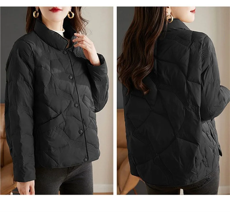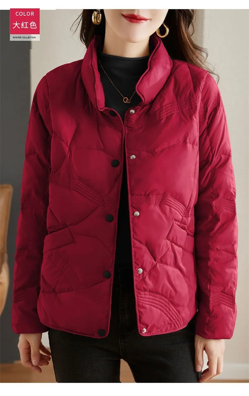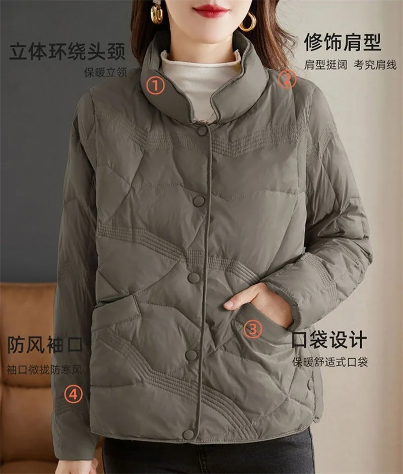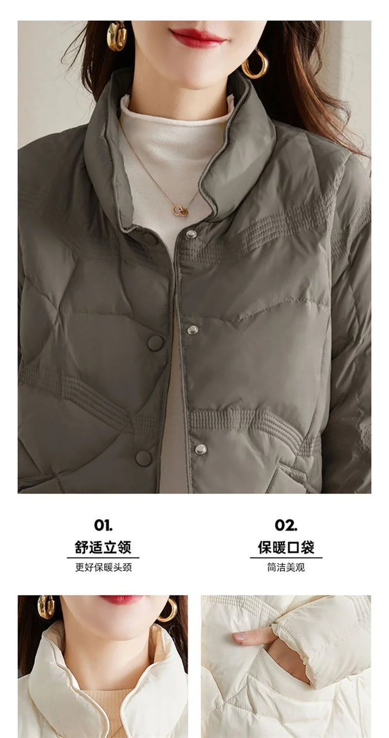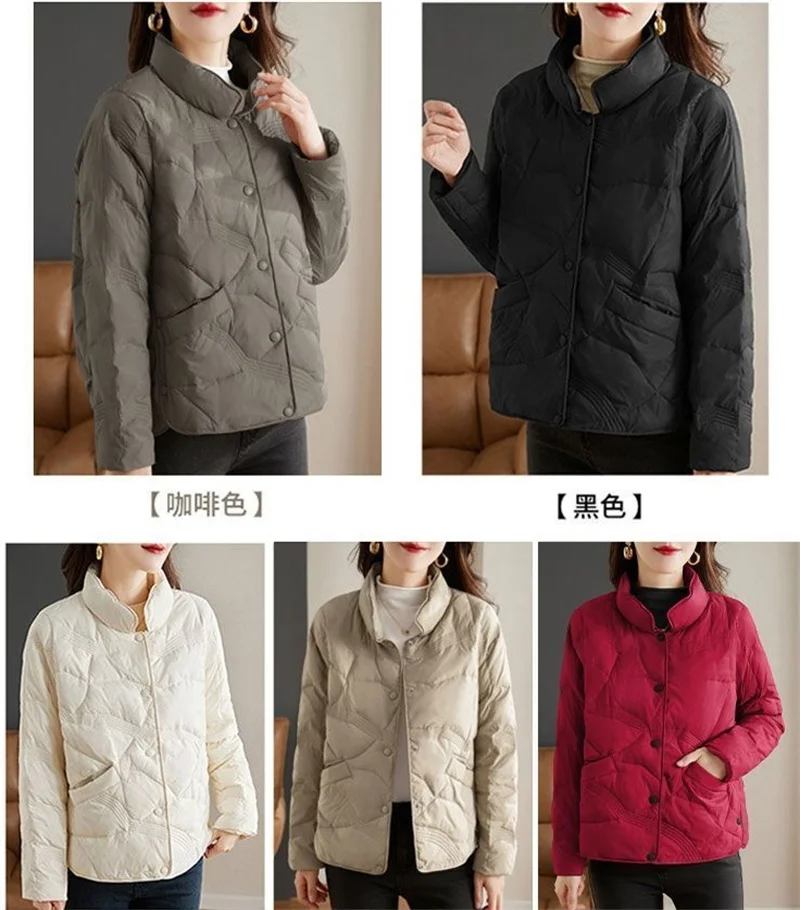 Lightweight Down Cotton Jacket, Women’s Short Casual Windproof Top,2023 New Winter High-end Warm Standing Collar Mother’s Coat