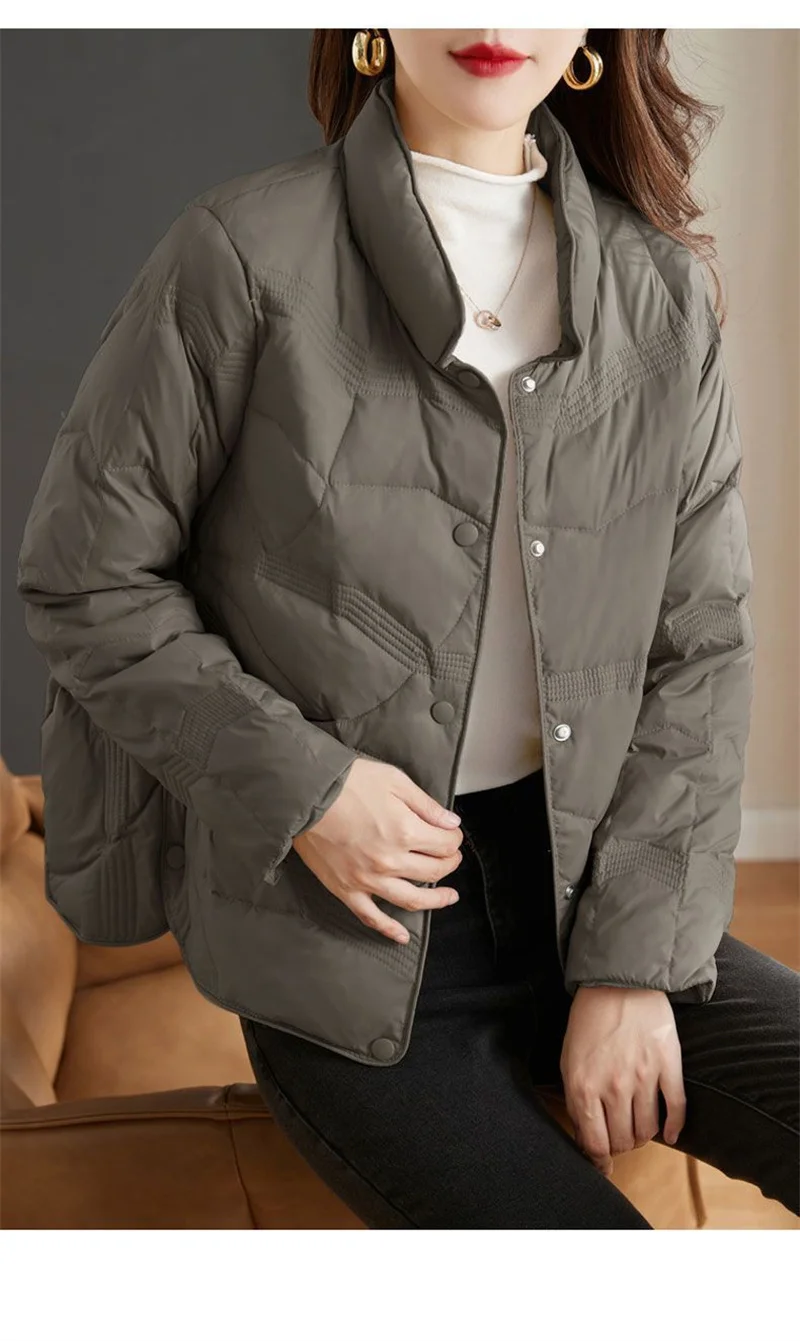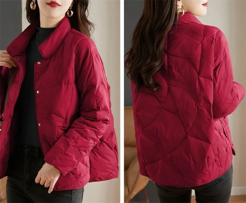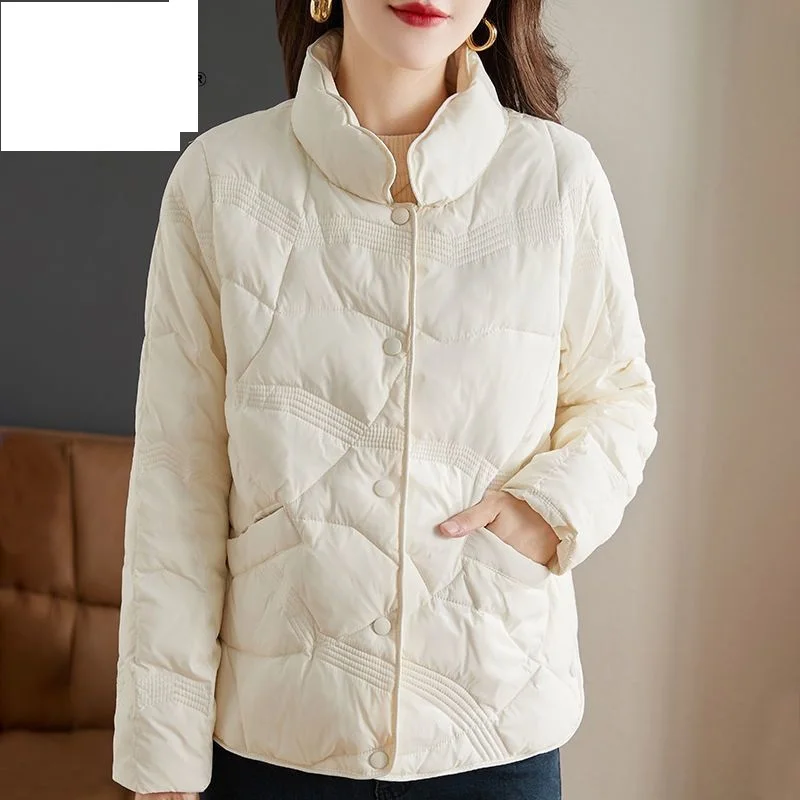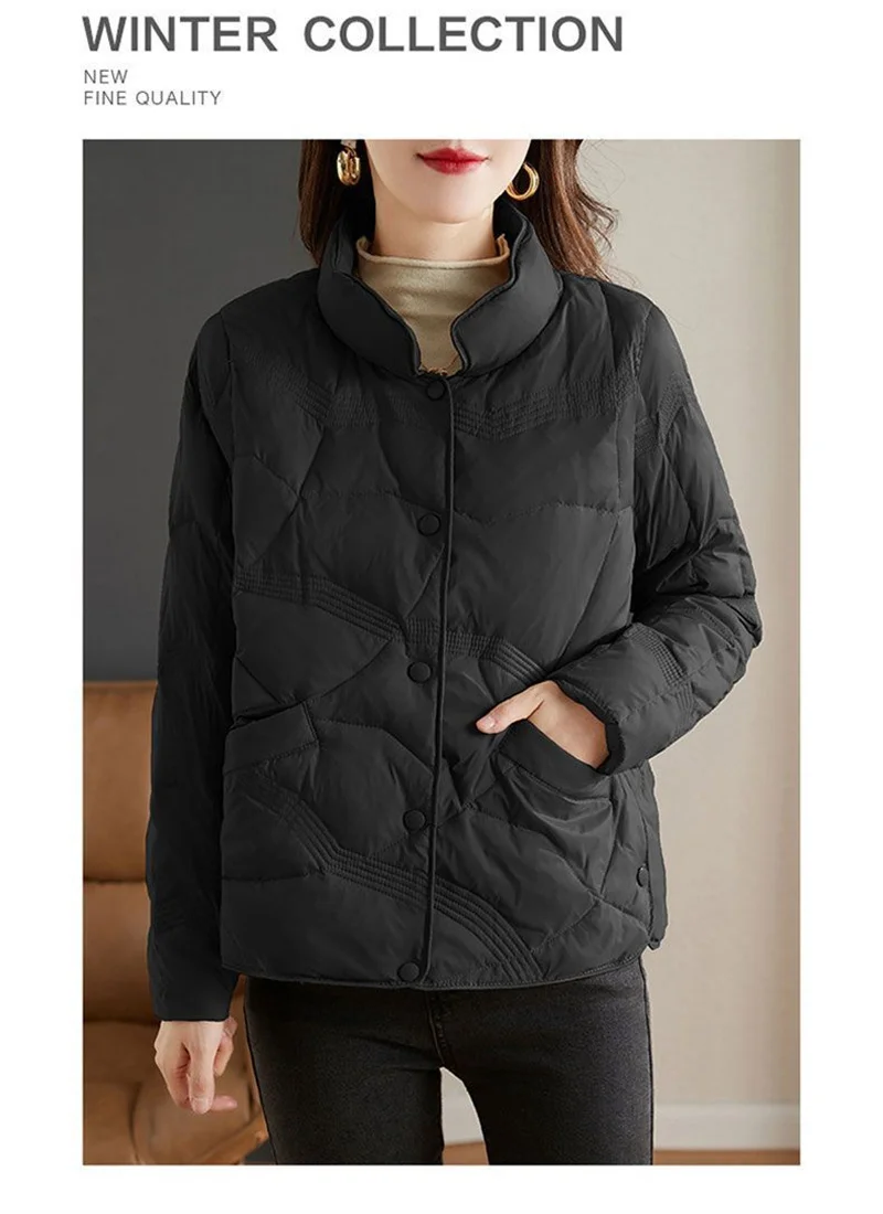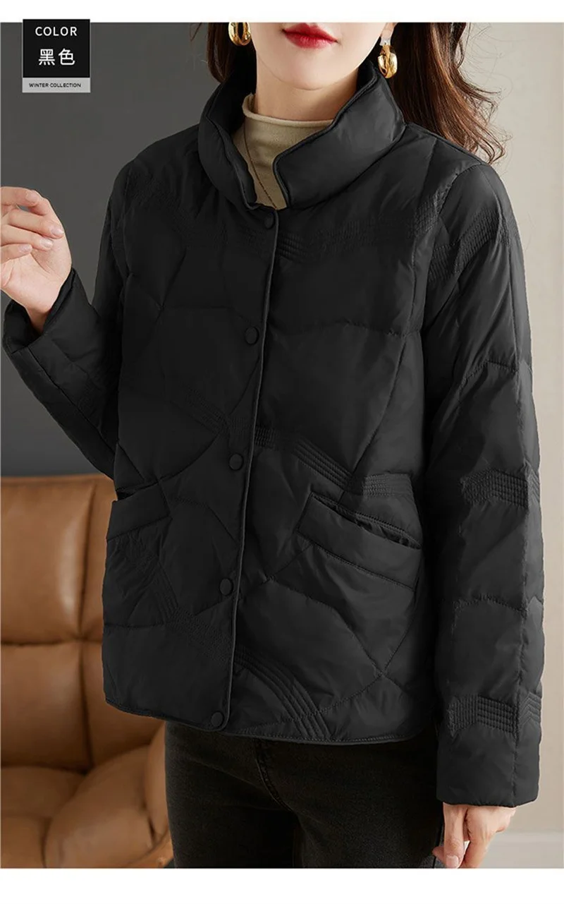 Lightweight Down Cotton Jacket, Women’s Short Casual Windproof Top,2023 New Winter High-end Warm Standing Collar Mother’s Coat