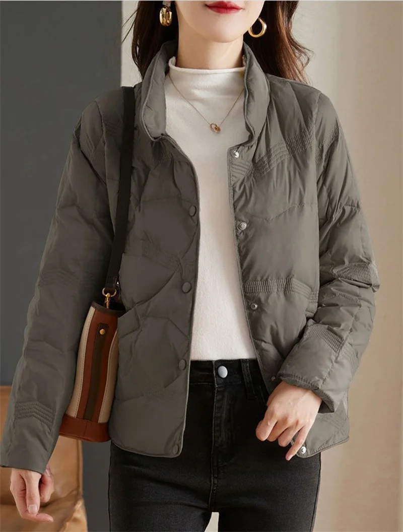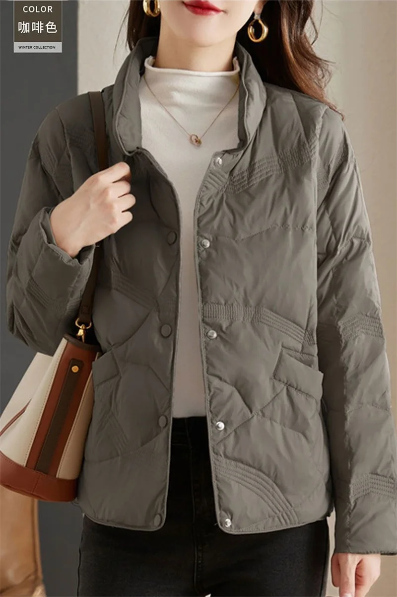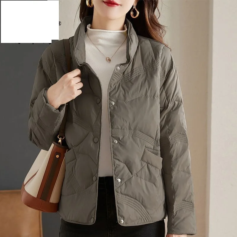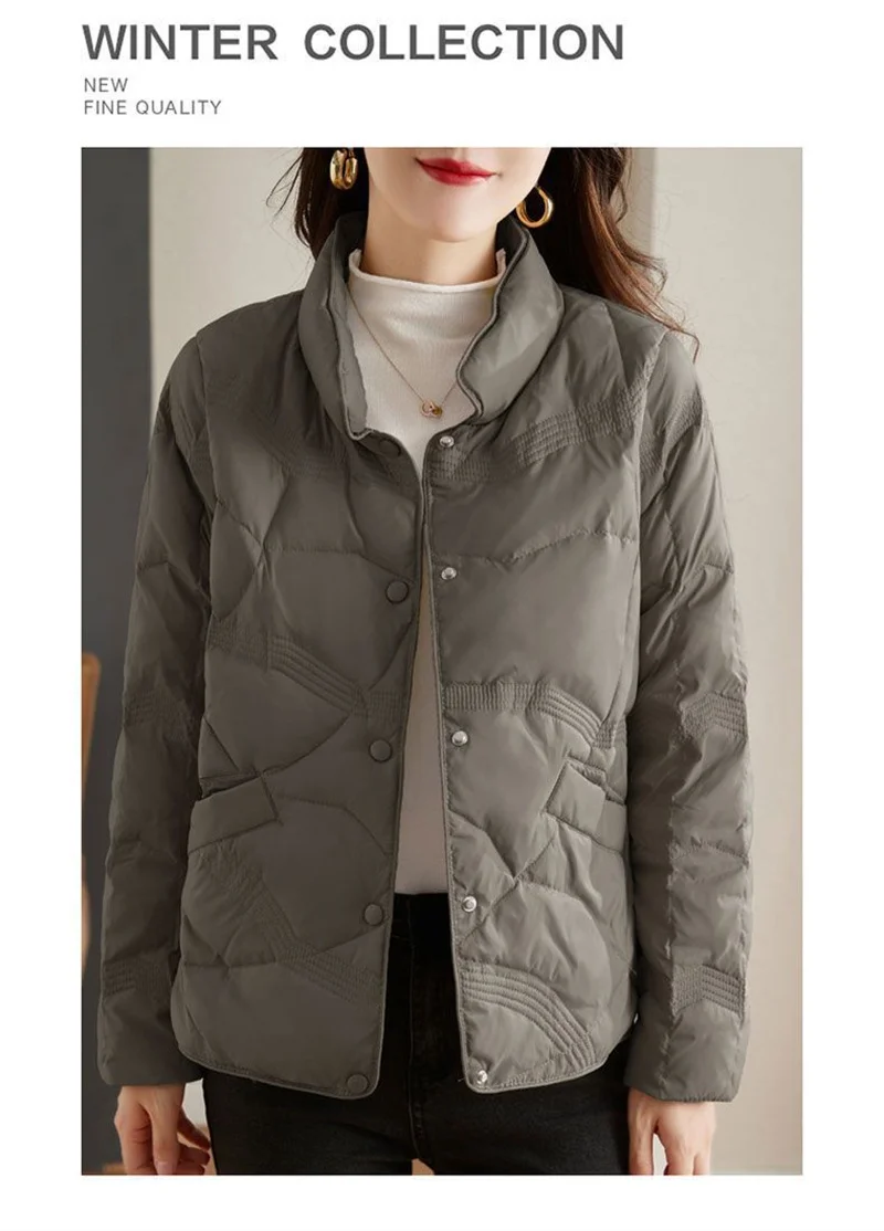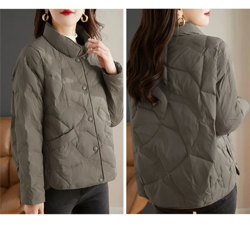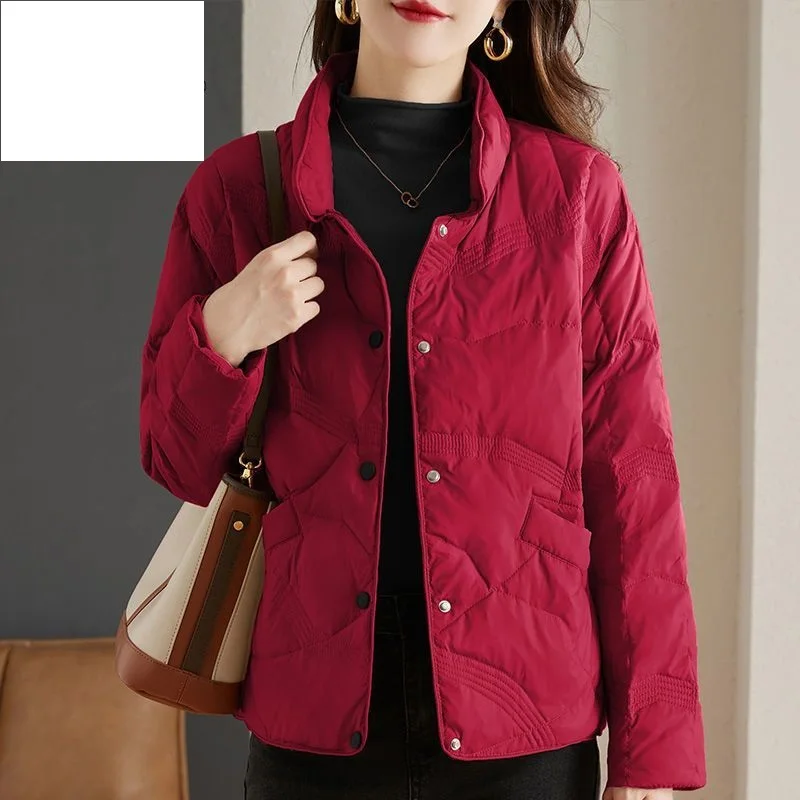 Lightweight Down Cotton Jacket, Women’s Short Casual Windproof Top,2023 New Winter High-end Warm Standing Collar Mother’s Coat