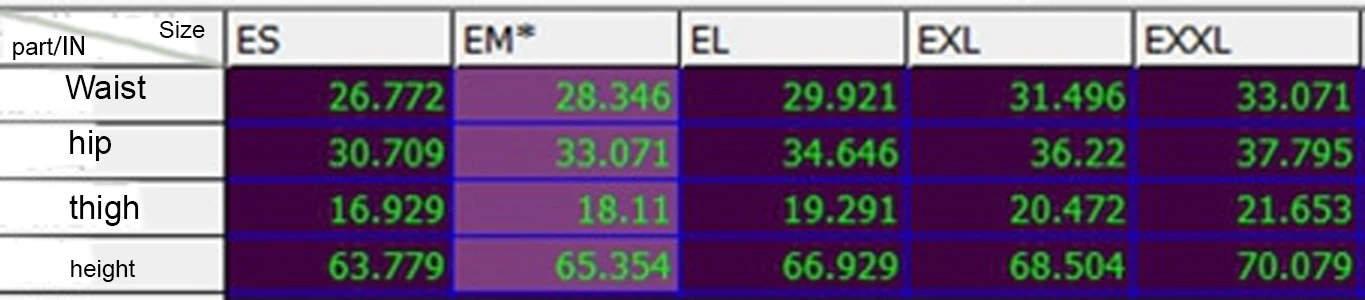 Model height: 173cm, weight: 65KG, hip circumference: 92CM; Shot size is EM(a little tight), recommended size is EL(general tight).