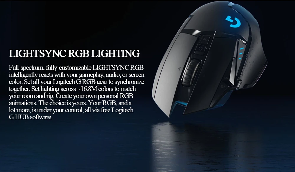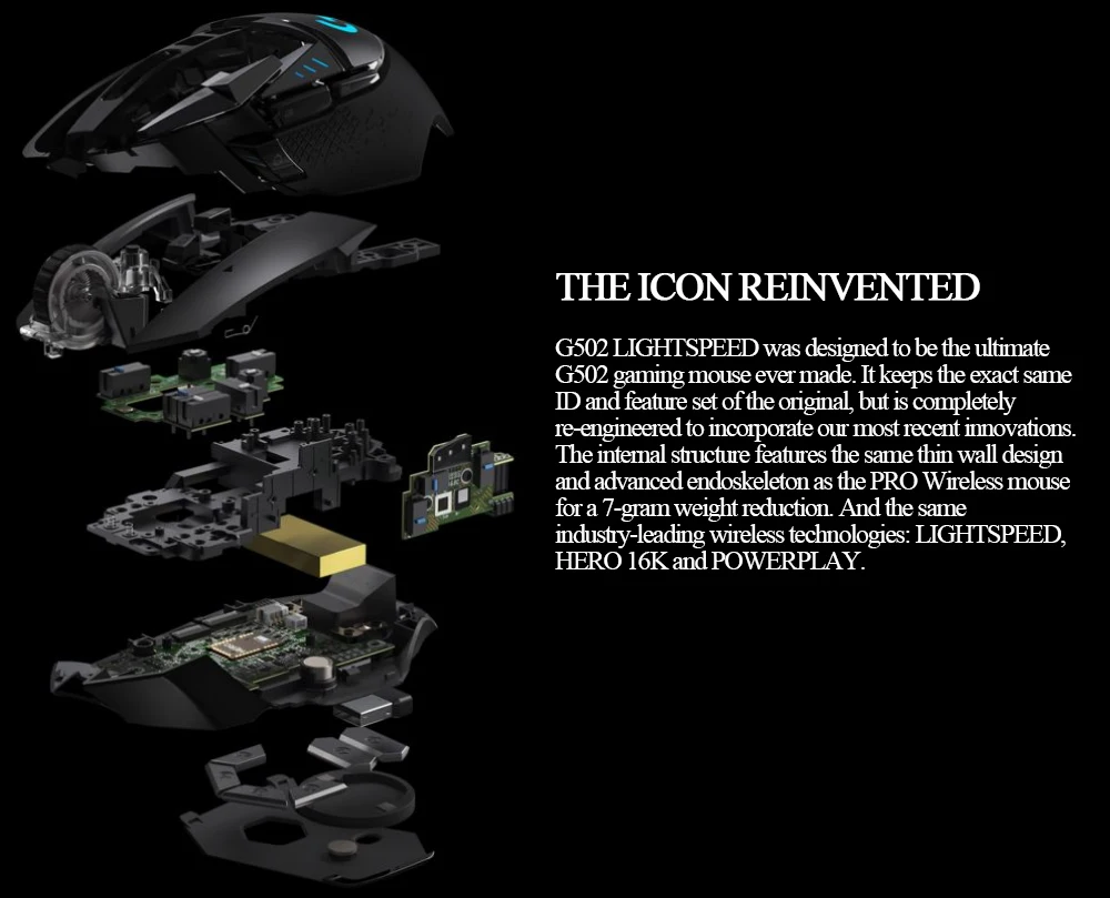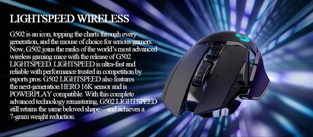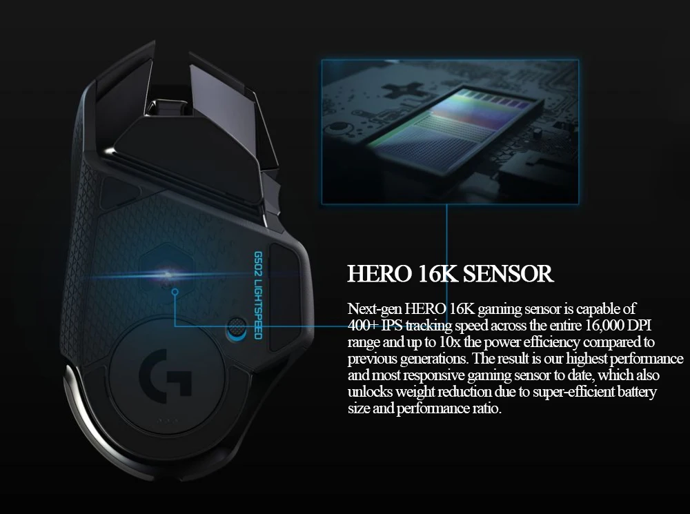 Logitech G502 LIGHTSPEED Wireless Gaming Mouse LIGHTSYNC RGB Lighting 11 Buttons