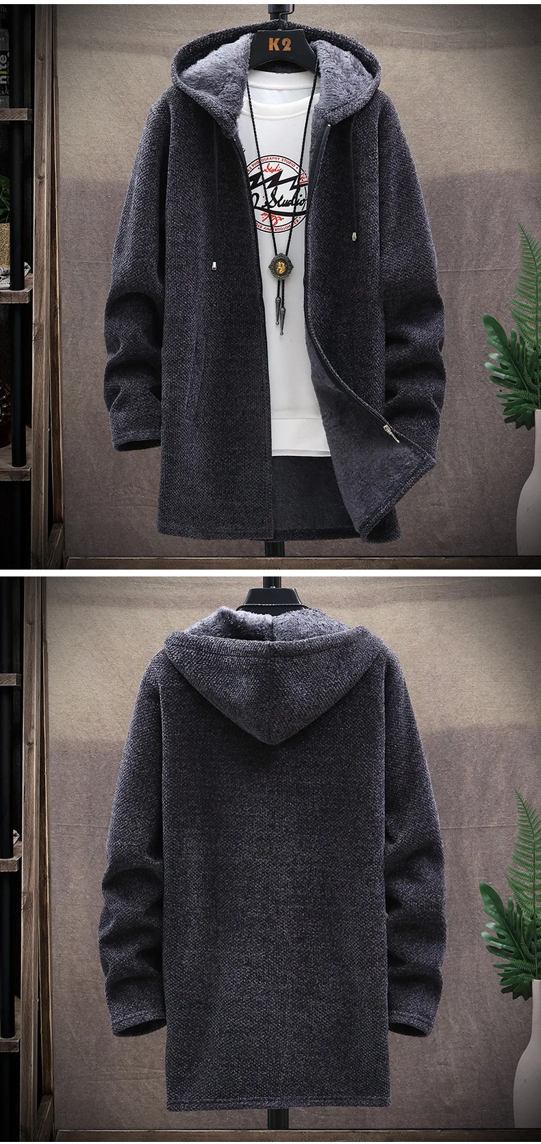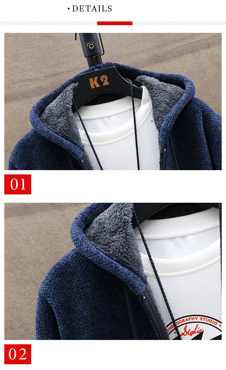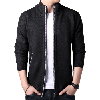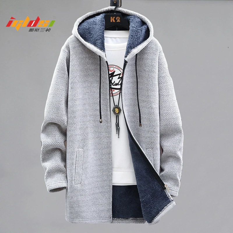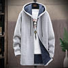 Long Hooded Fleece Cardigan Men Winter Thick Warm Velvet Sweaters Knitted Sweatercoat Solid Jacket Male Zipper Outwear Coats