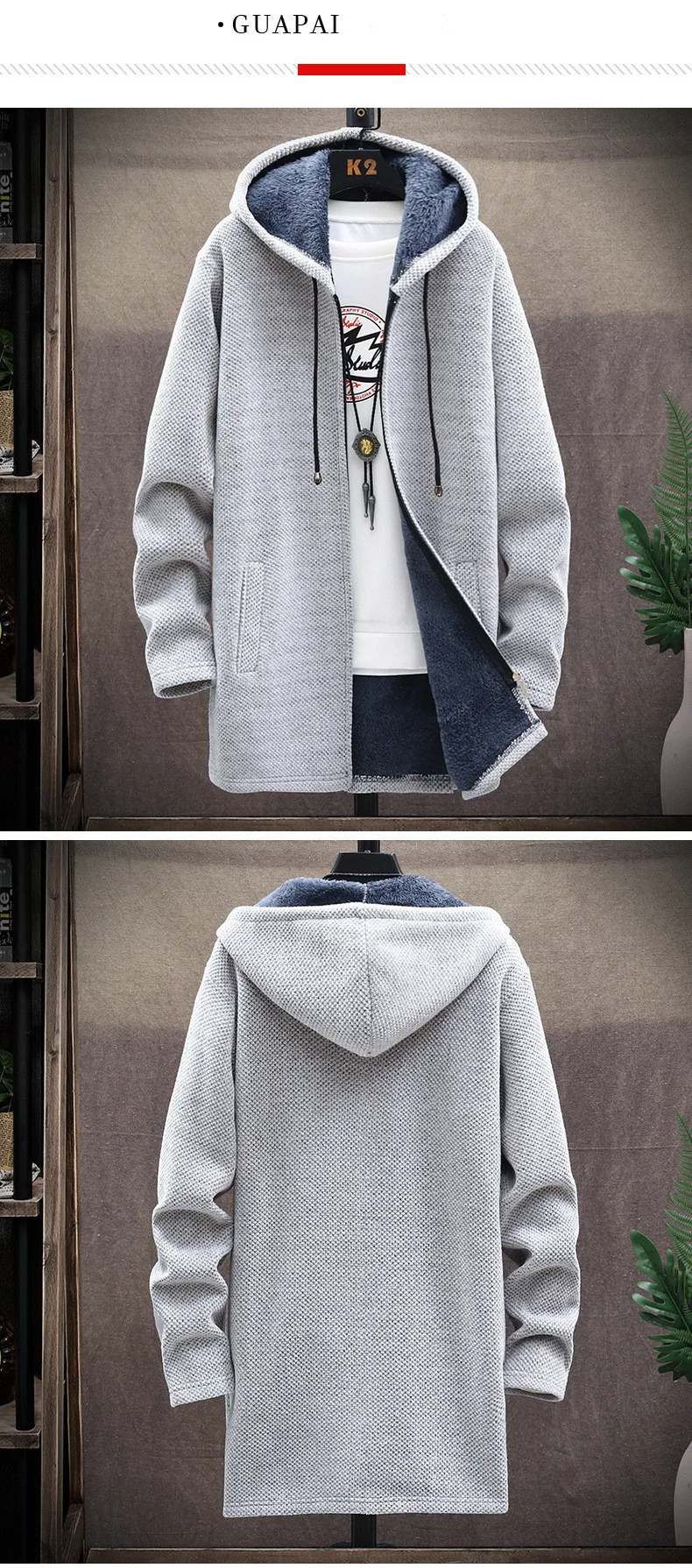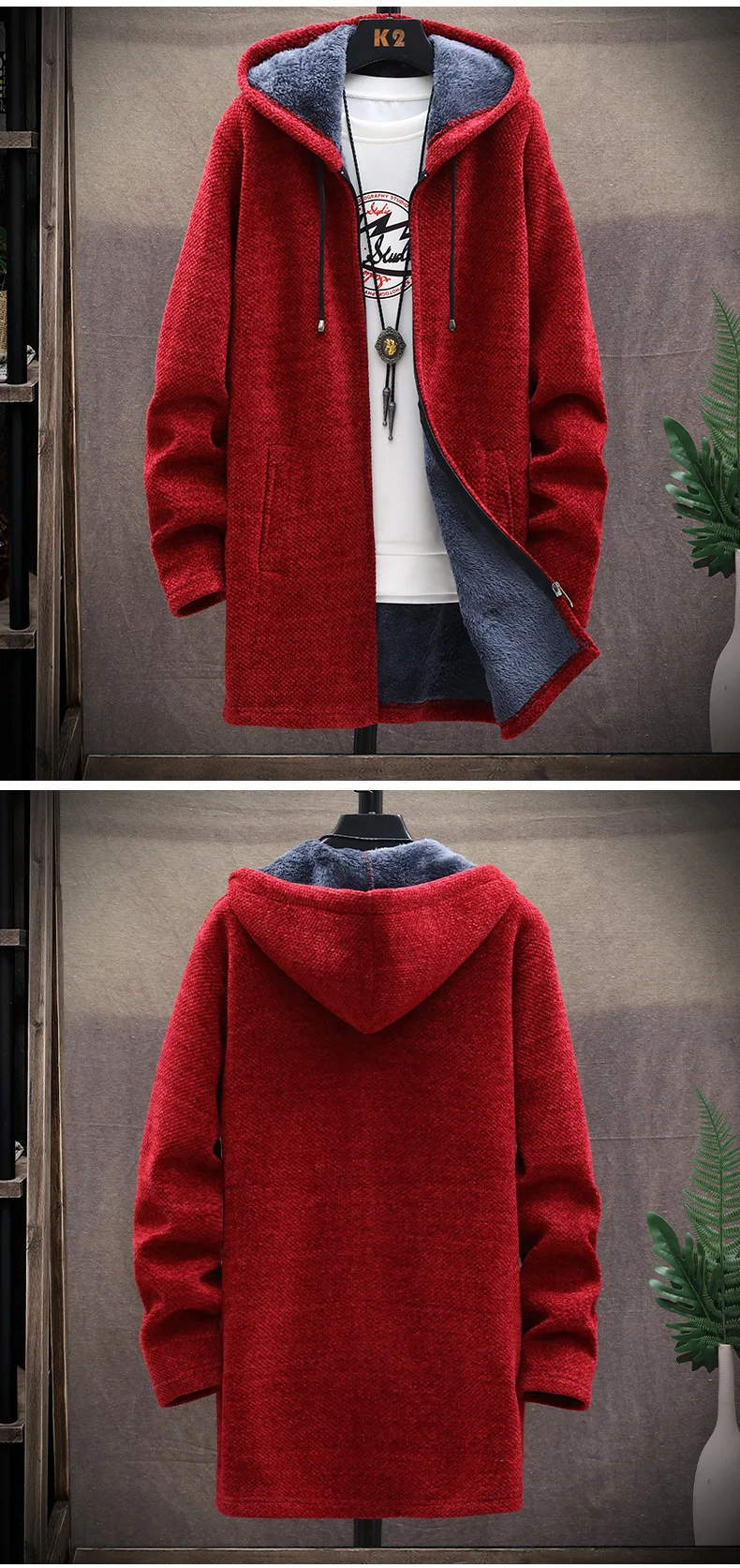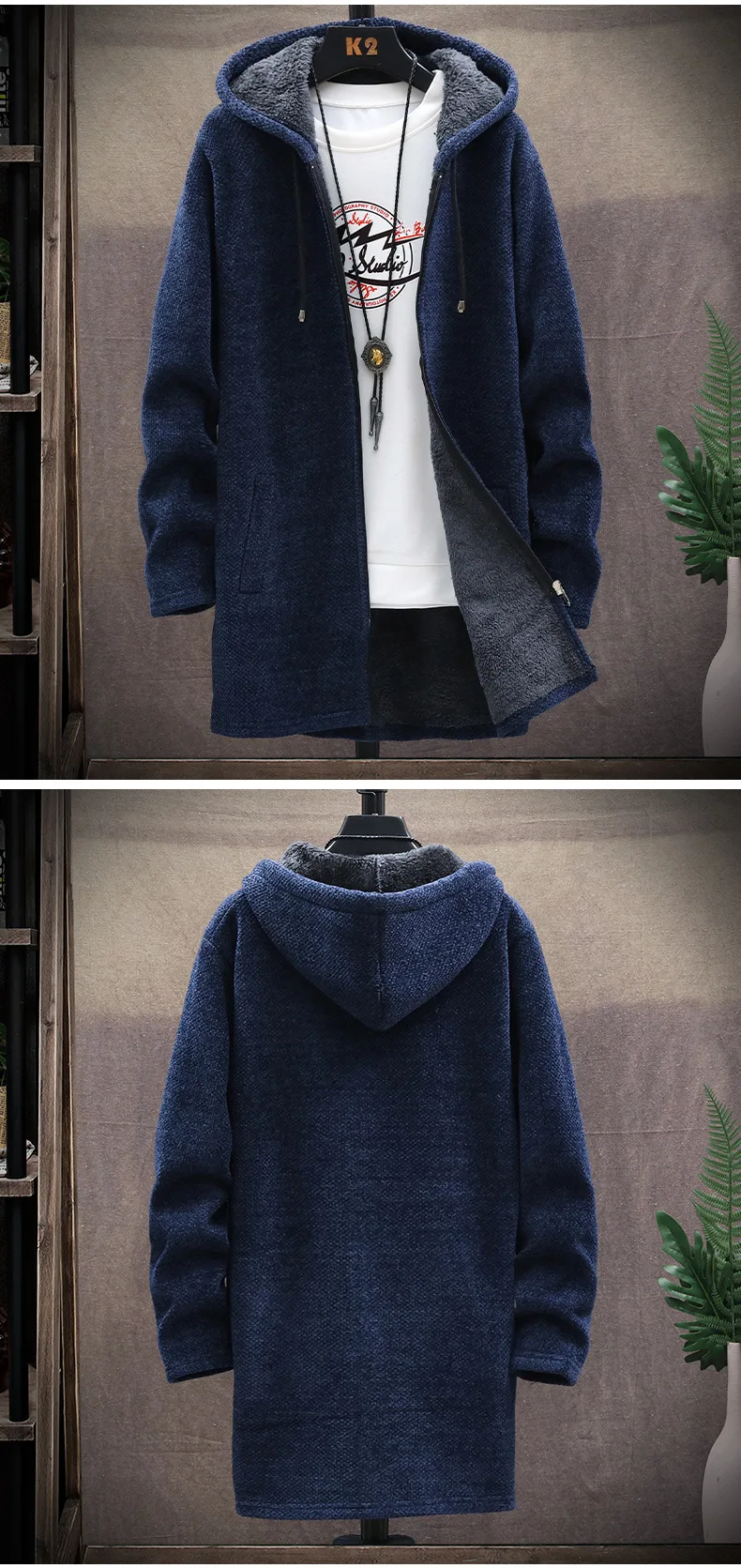 Long Hooded Fleece Cardigan Men Winter Thick Warm Velvet Sweaters Knitted Sweatercoat Solid Jacket Male Zipper Outwear Coats