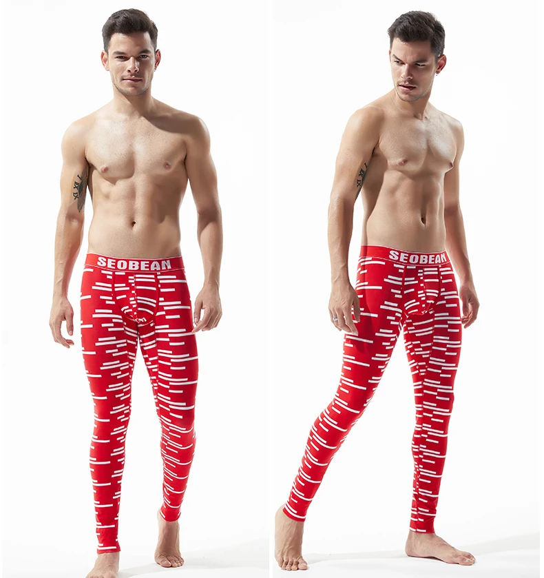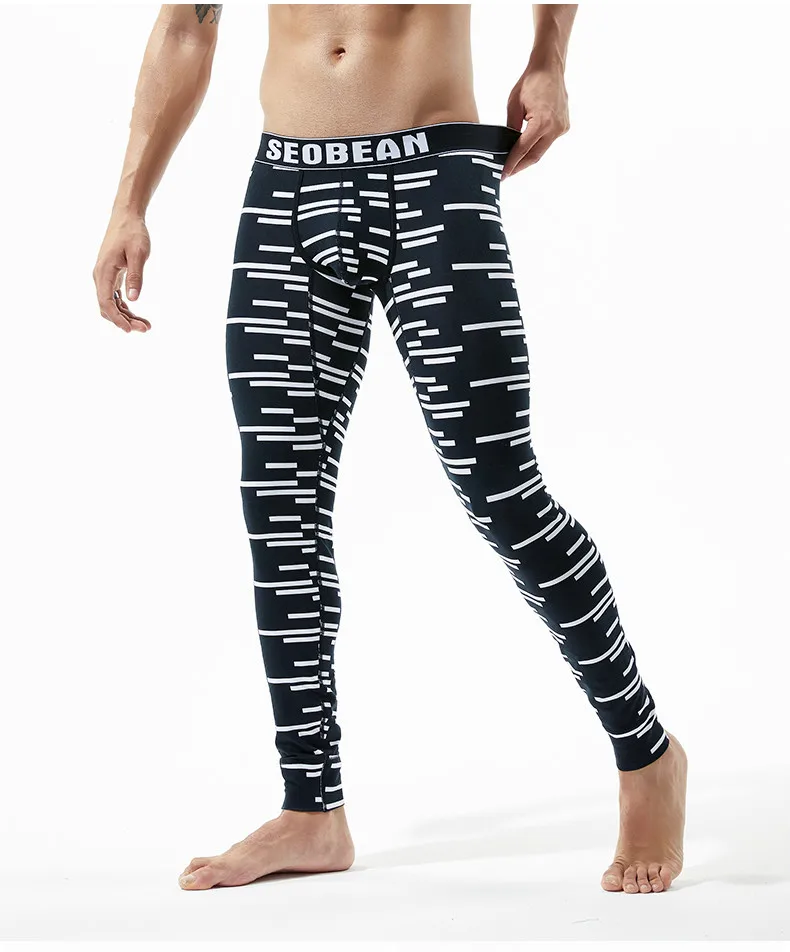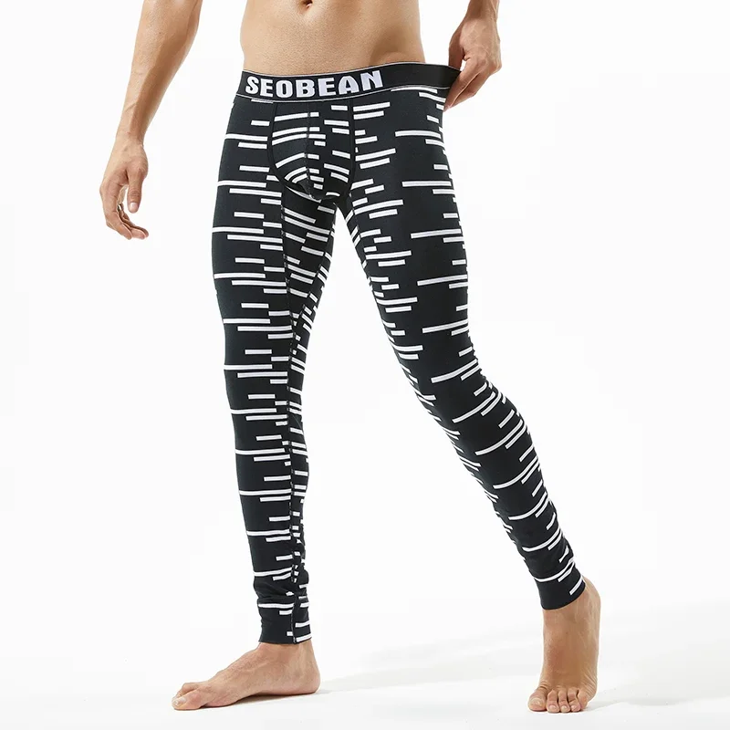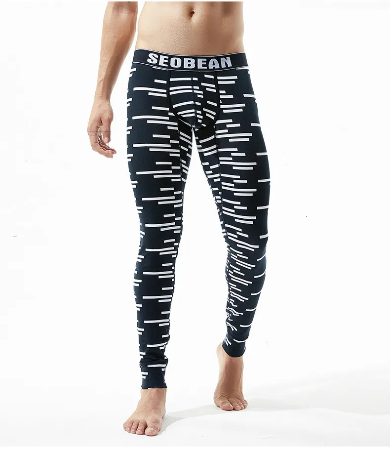 Long Johns Warm Pants Men Striped Printed Thermal Underwear Leggings Hombre Slim Fit Cotton Winter Youth Male Oupa Termica