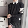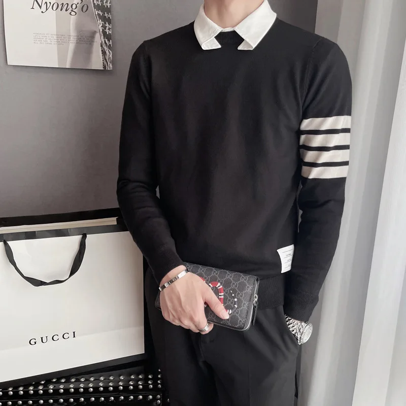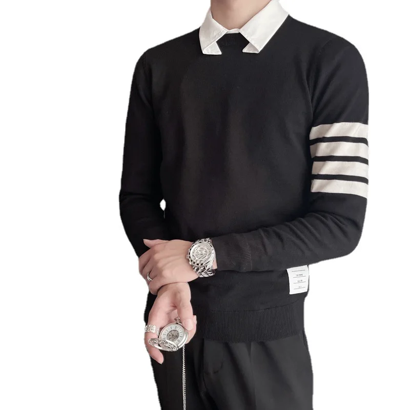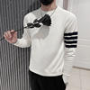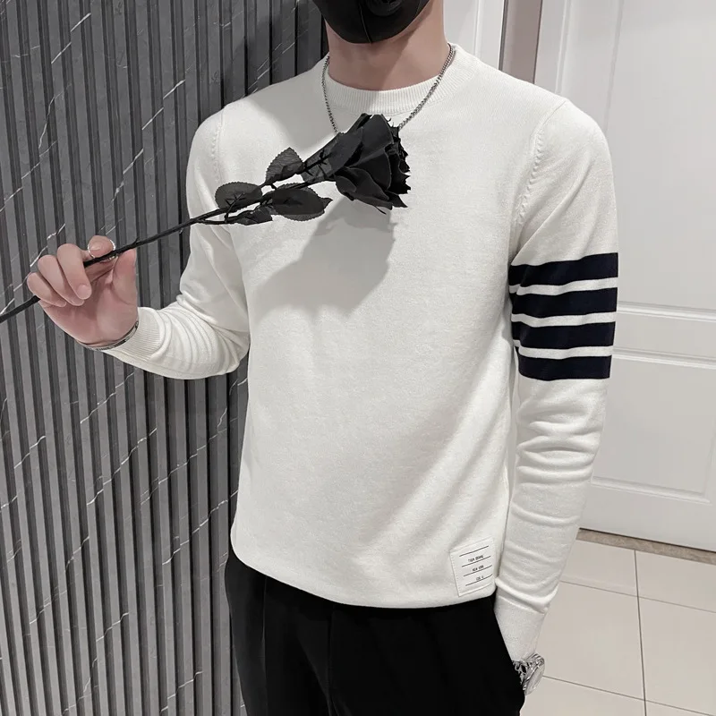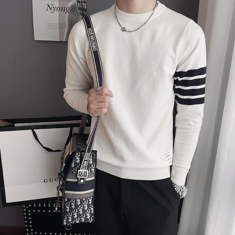 Long Sleeve Knitting Bottoming Shirt 2022 O-neck Casual Striped Printed Korean 90s Streetwear Pullover Sweater Mens Clothing