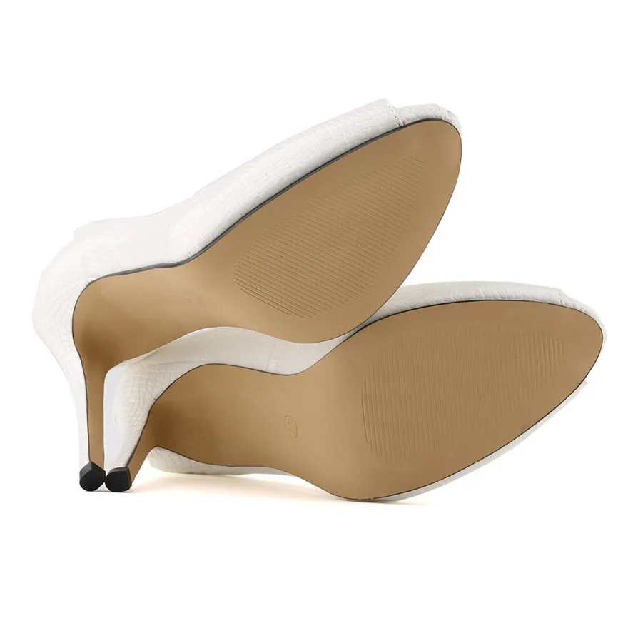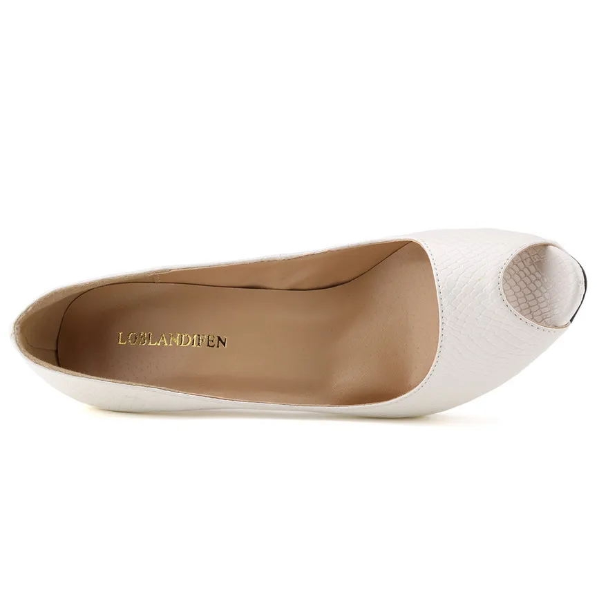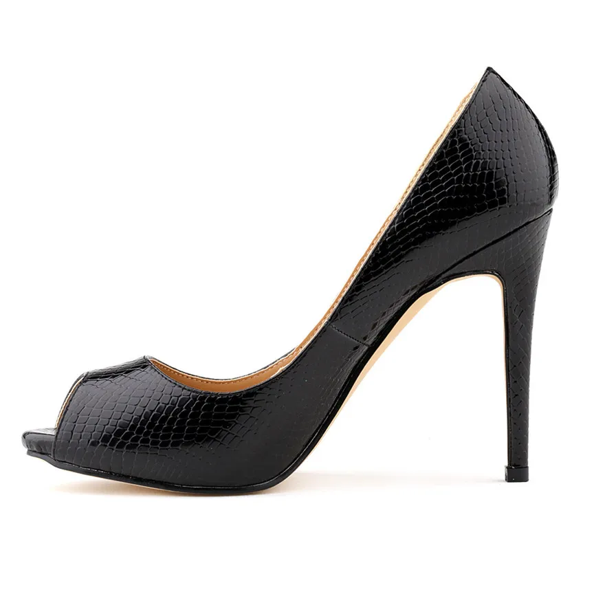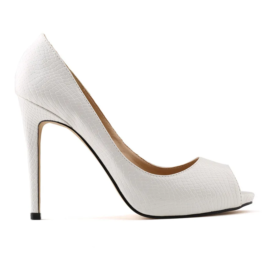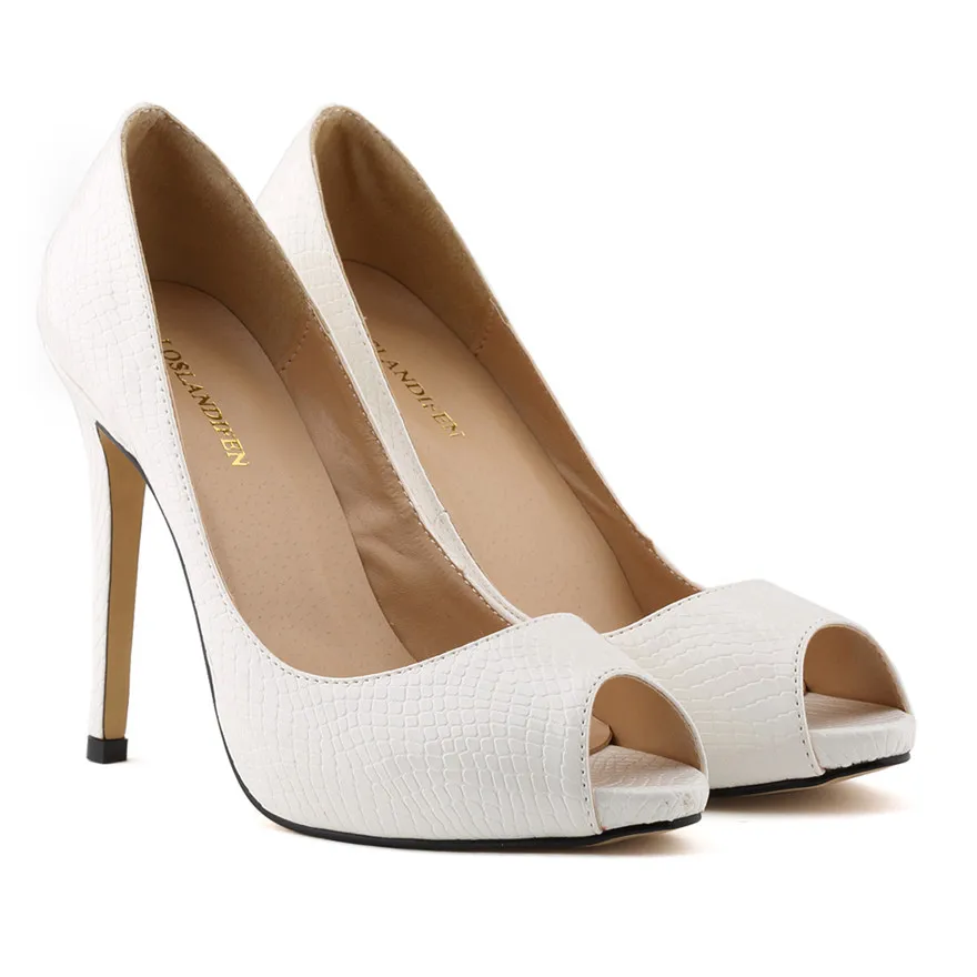 LOSLANDIFEN Women Sexy Crocodile Fashion Pumps High Heels Party Shoes Shallow Ladies Black White Stiletto Peep Toe Sandals Woman