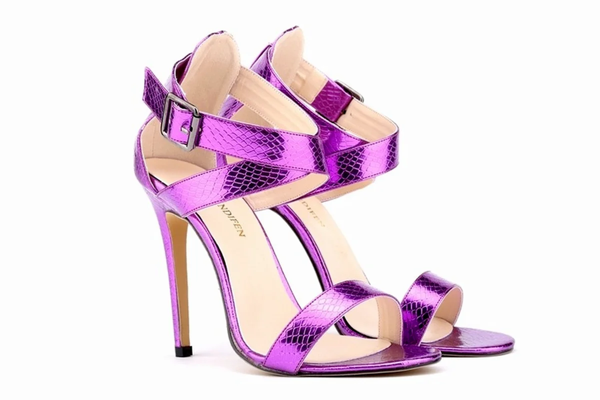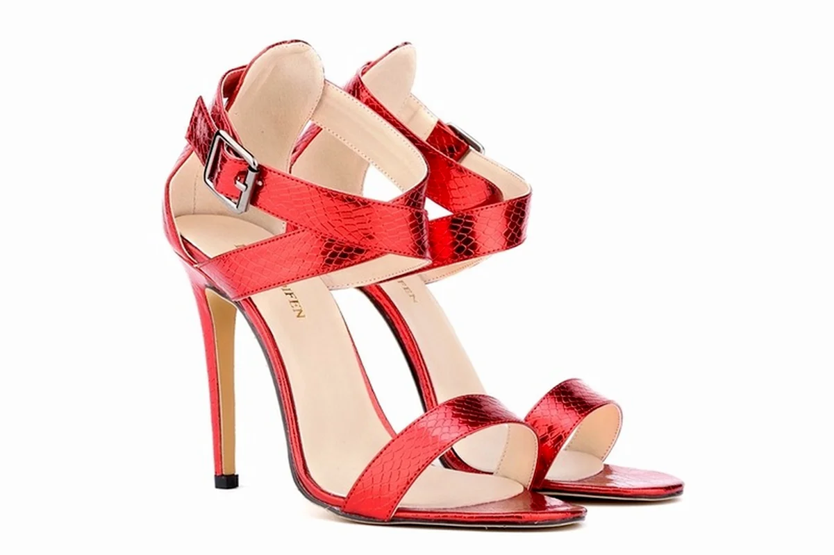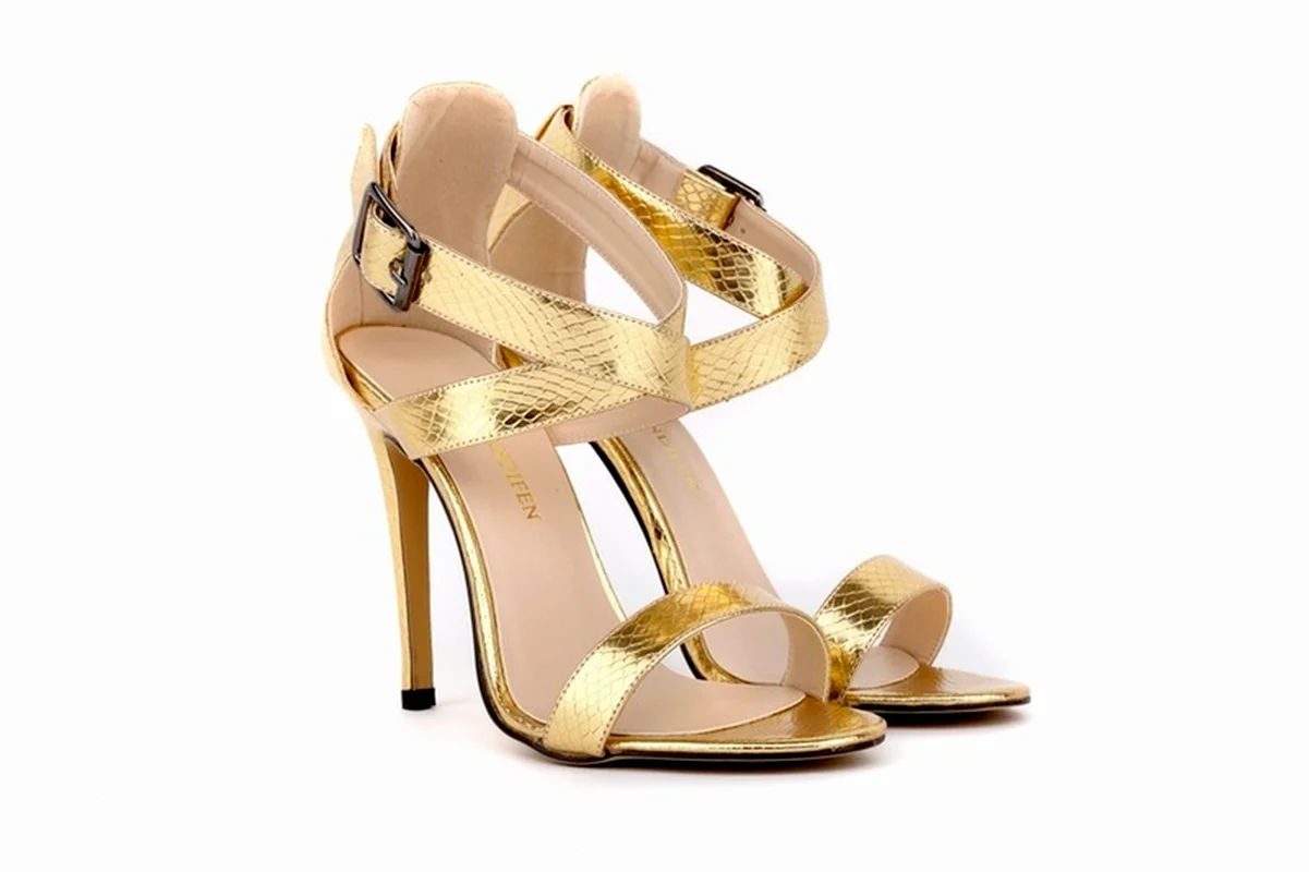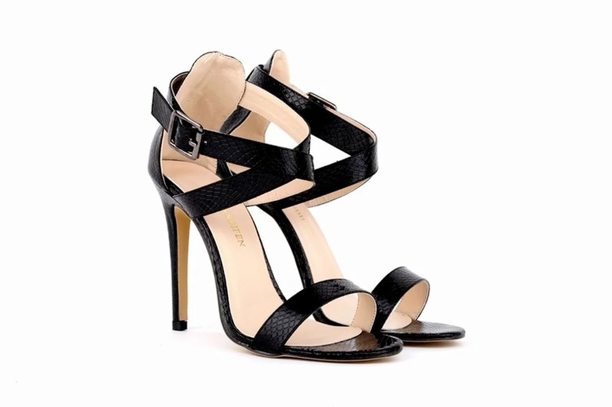 LOSLANDIFEN Womens Pumps 11cm Open Toe Ankle Straps High Heels Summer Faux Crocodile Wedding Shoes