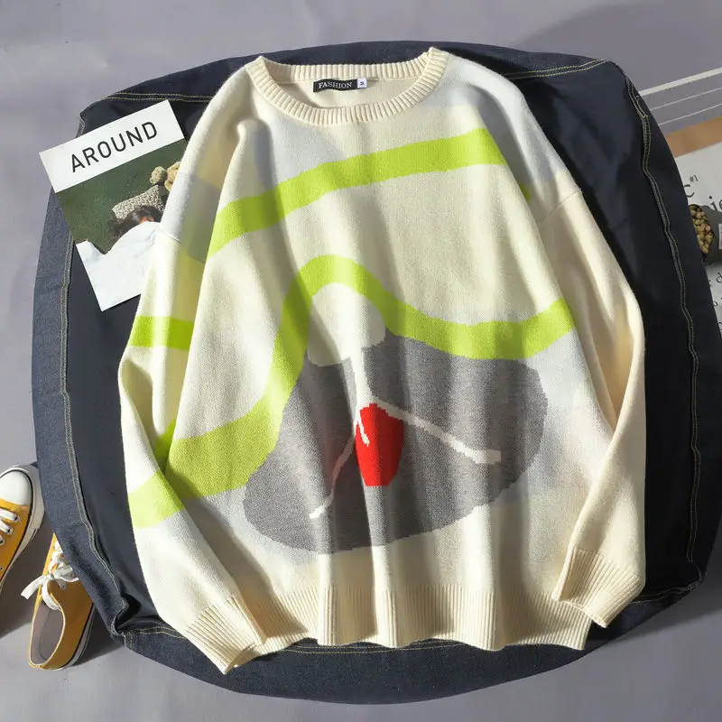Lovers’ Knitted Sweater Cute Puppy Design Autumn Winter Fashion Kawaii Casual O-Neck Pullovers Men’s All-match Knitwear T-shirt Tops