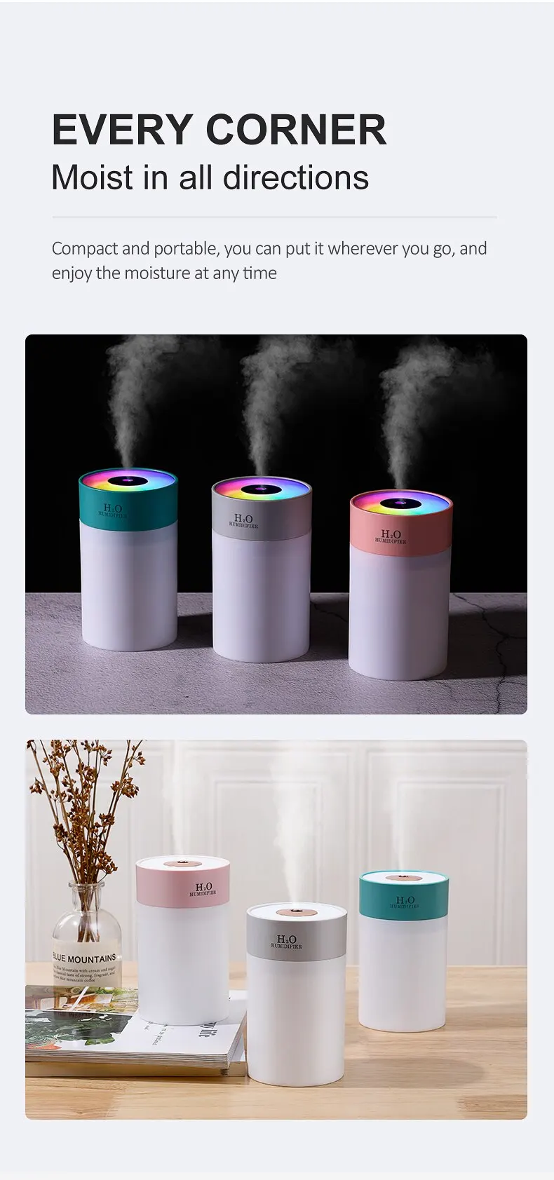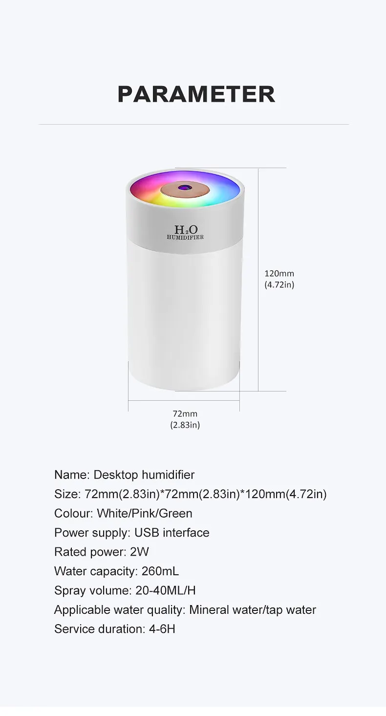 • 260ml Large Capacity :With a large capacity of 260ml, this humidifier can provide long-lasting moisture to your surroundings, reducing the need for frequent refills.