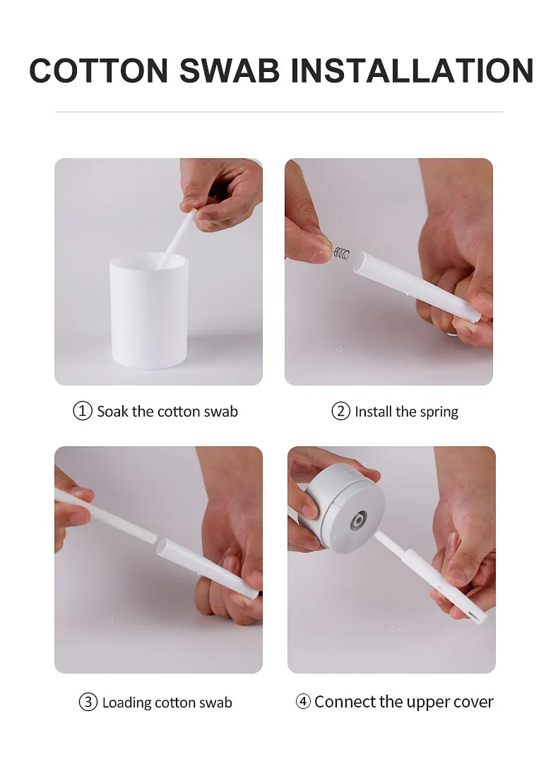 1. Before use, it is recommended to take out the cotton swab to soak it, because the upper end does not absorb water so quickly, and spray will not occur if the upper end does not absorb water