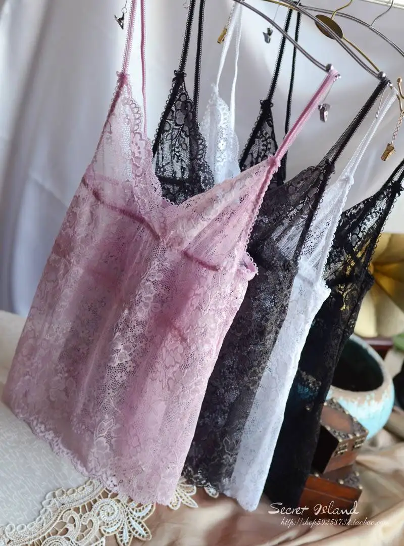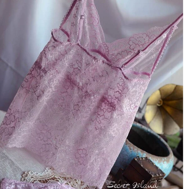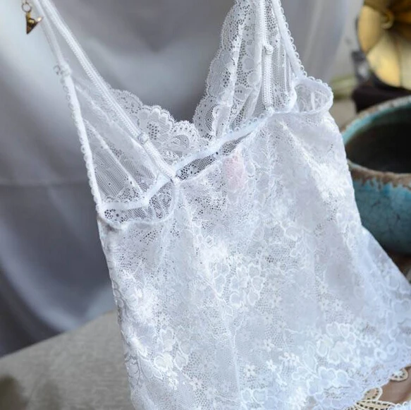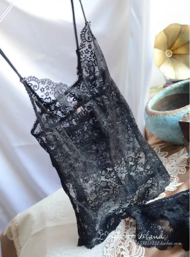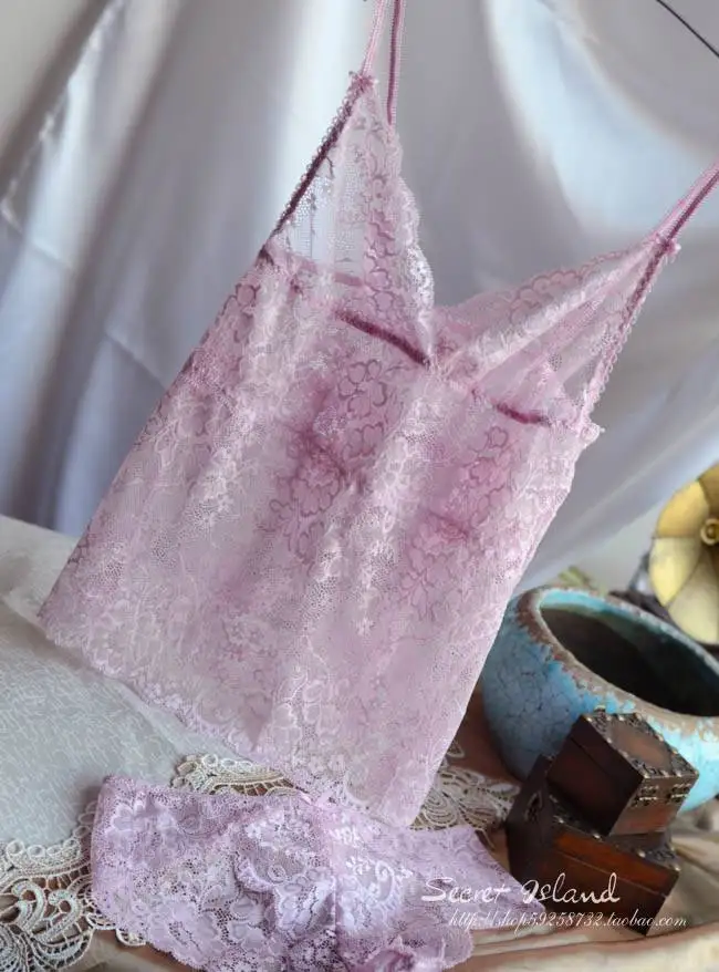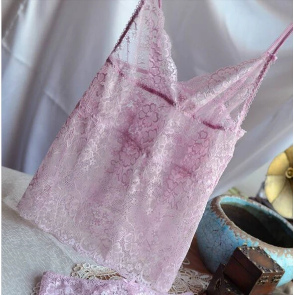 Luxury Chromophous ultimate Lace spaghetti strap vest Set Sexy Summer Nightgown Set with Panties Brief Deep V Lingerie Set