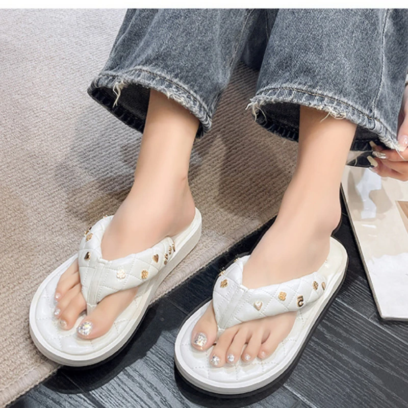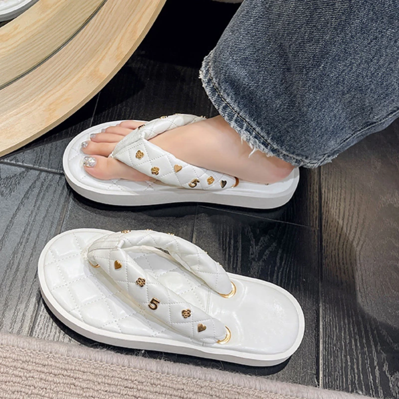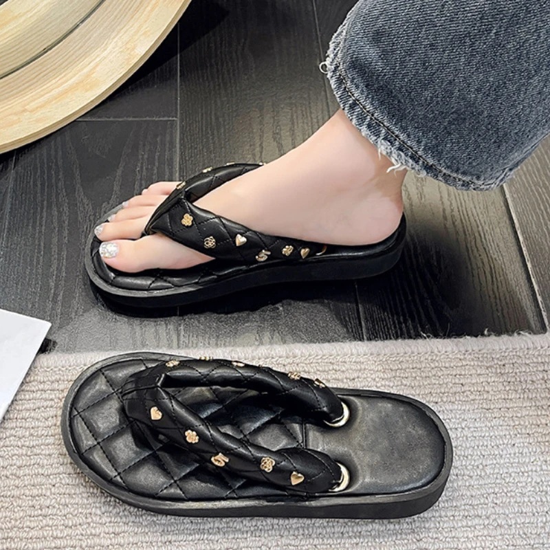 Luxury Designer Women Sandals Summer Beach Flip Flops Outdoor FashionSlippers Simple Round Toe Flats Metal Decoration Chanclas