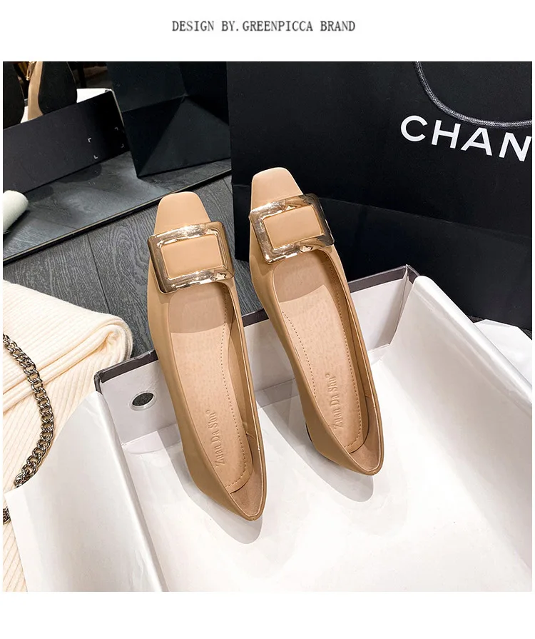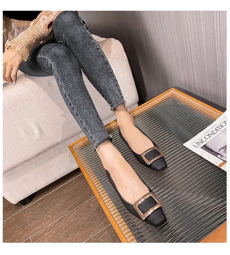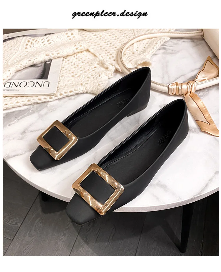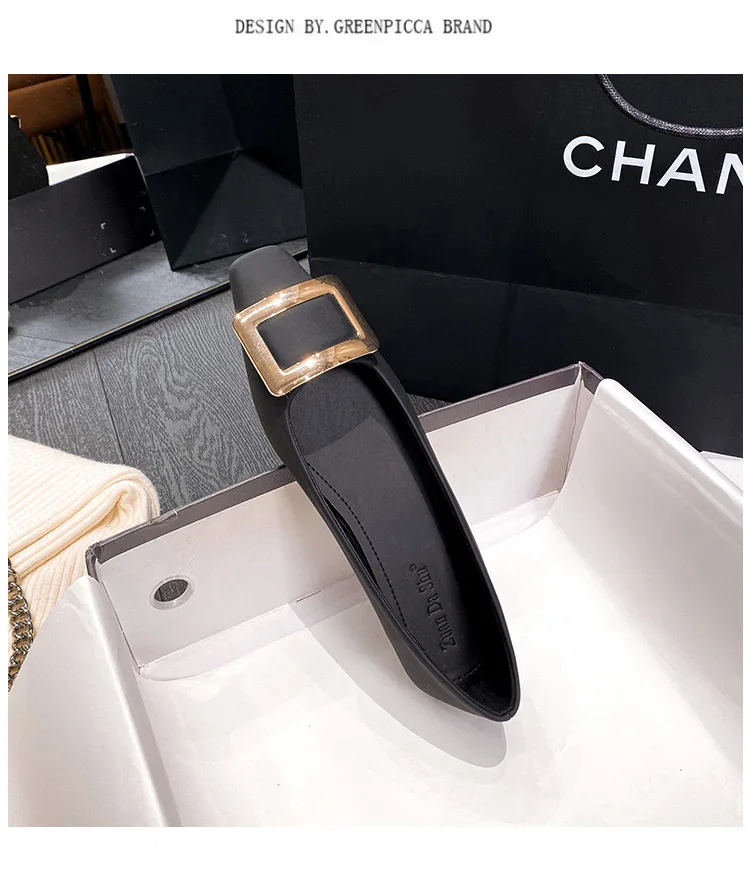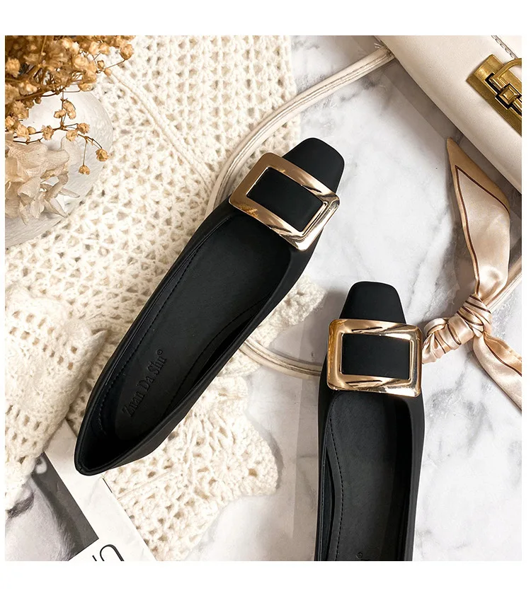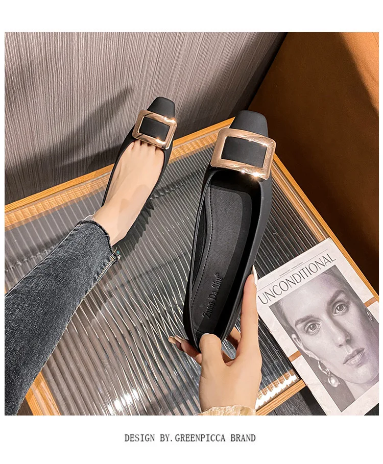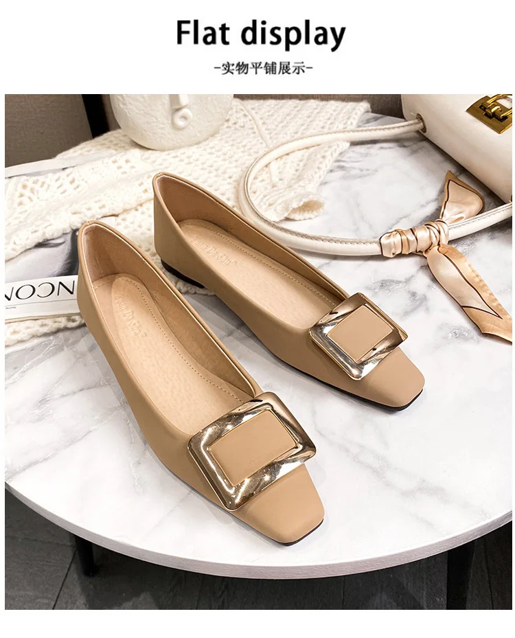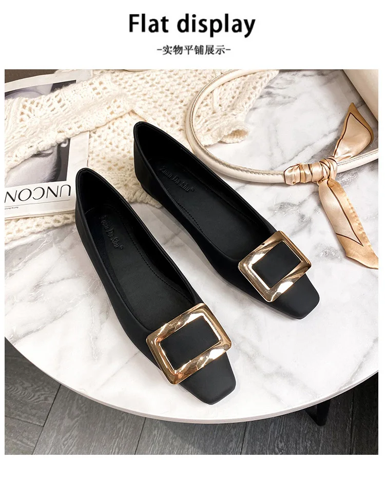 Brand Metal Buckle Shoes Woman Comfy Flats OL Office Dress Shoes