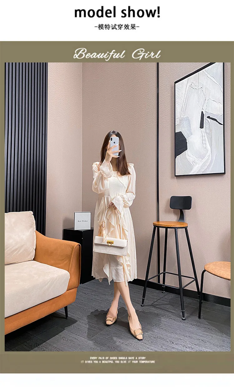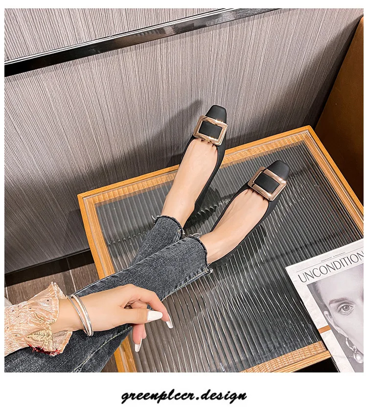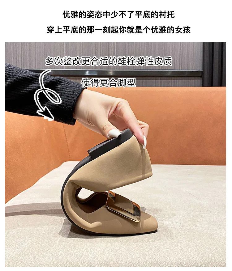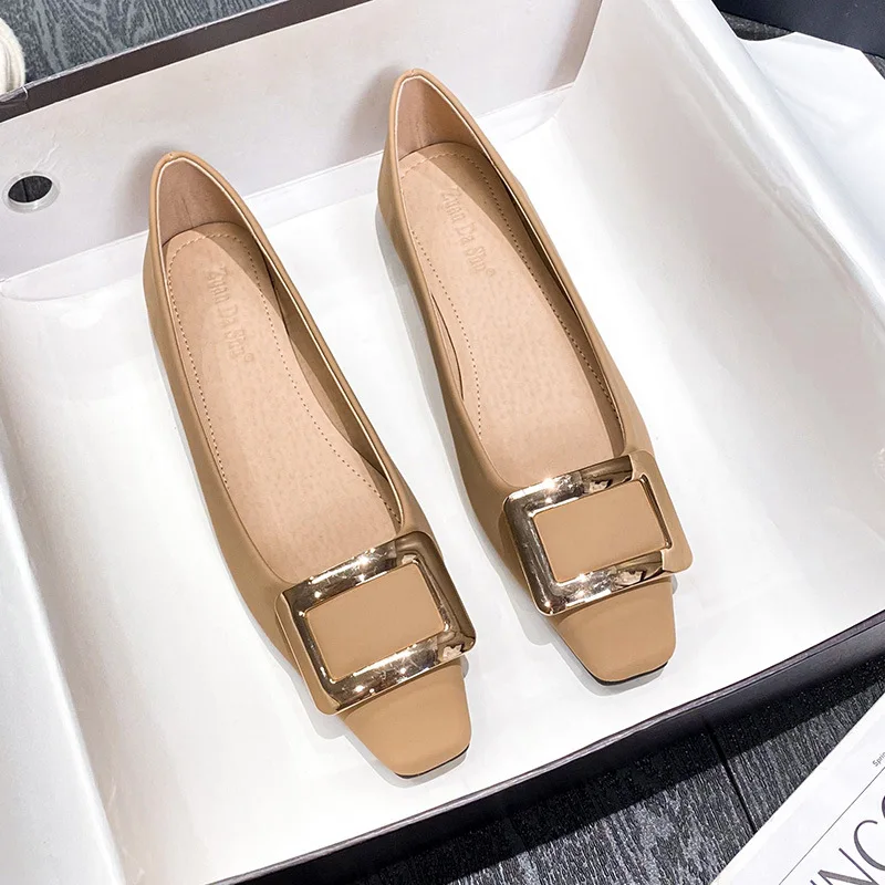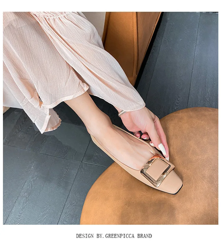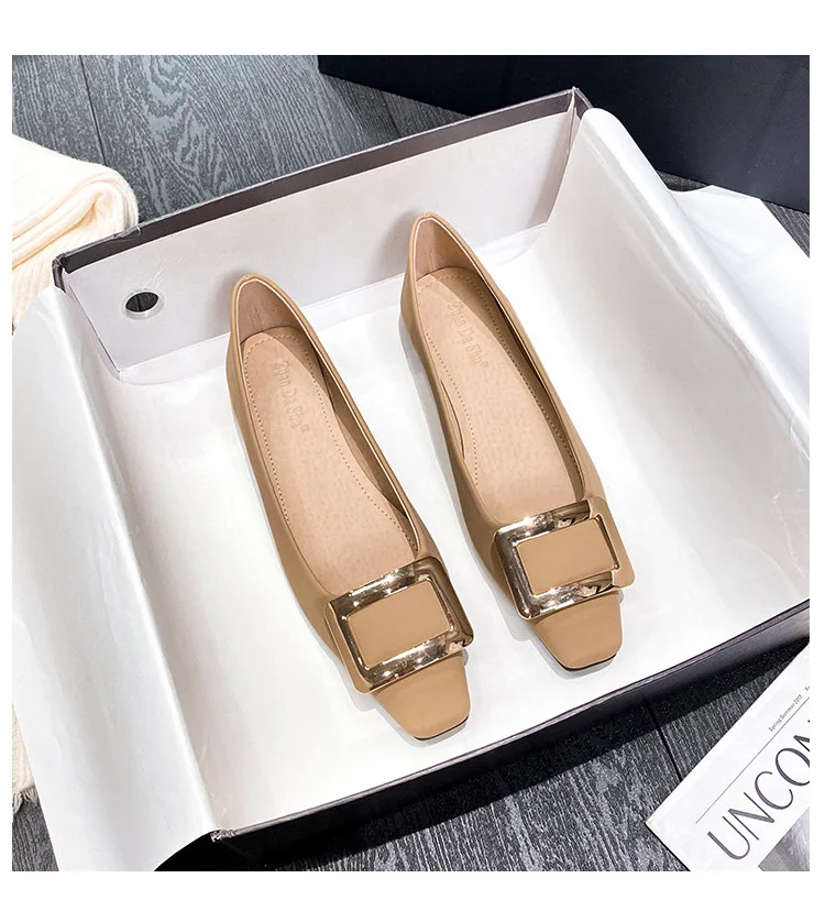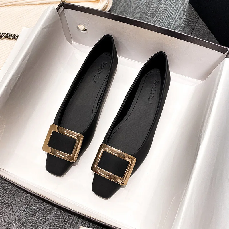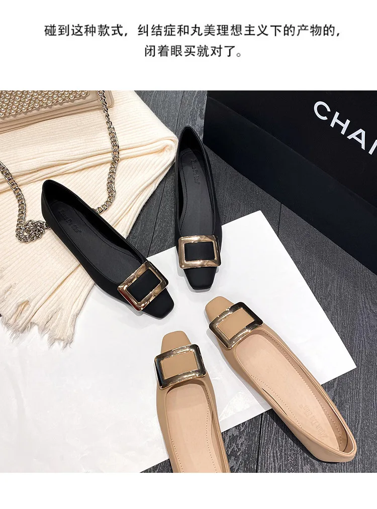 Brand Metal Buckle Shoes Woman Comfy Flats OL Office Dress Shoes