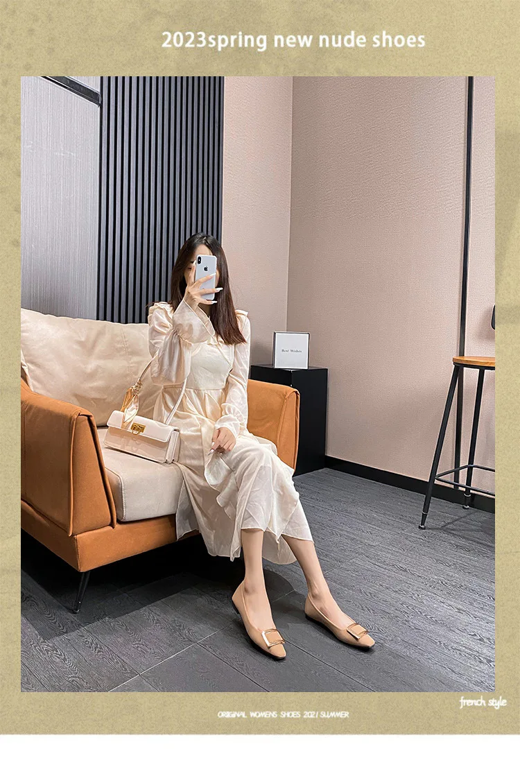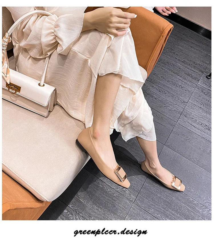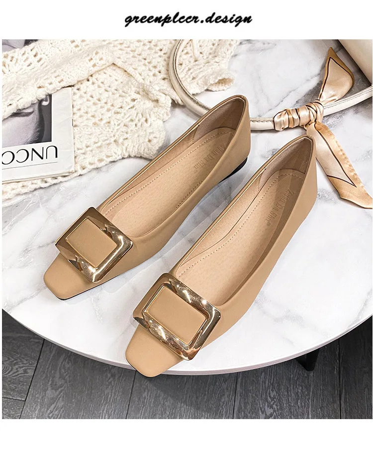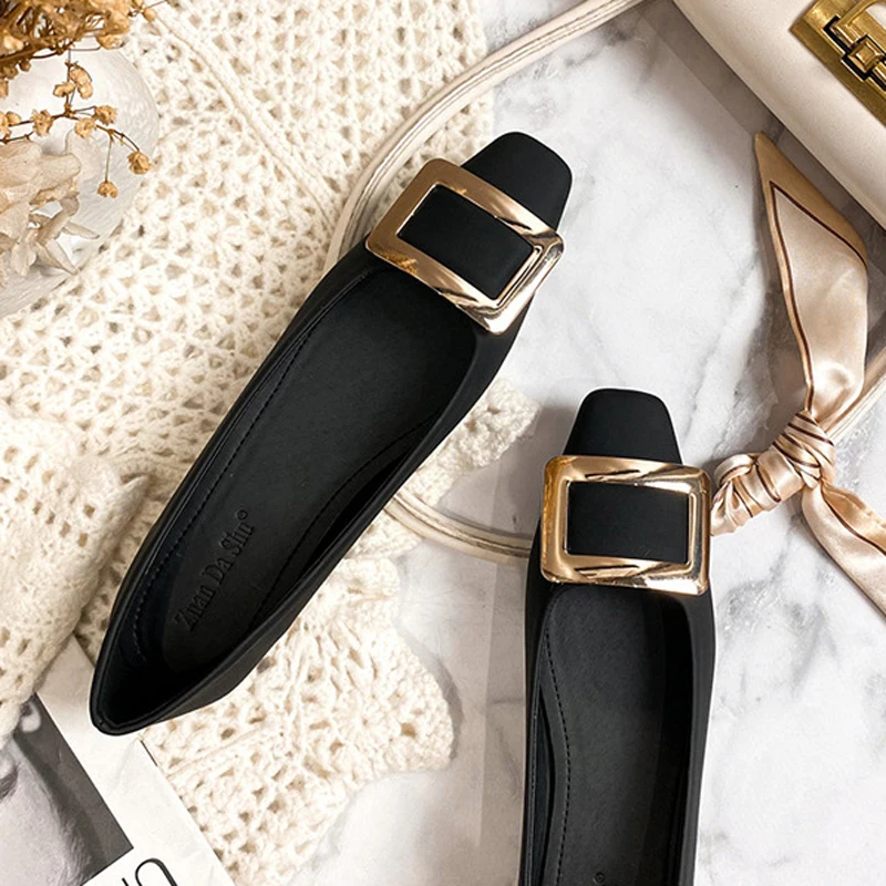 Luxury Elegant Ladies Flats Single Shoes Spring Metal Buckle Ballerina Woman Soft Comfy Loafers OL Dress Slip On Mocasines Mujer