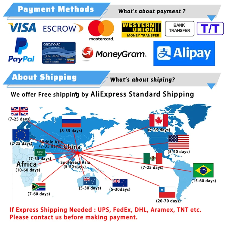 Packages from our warehouse in China will be shipped by ePacket or EMS depending on the weight and size of the product. Packages shipped from our US warehouse are shipped through USPS.