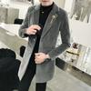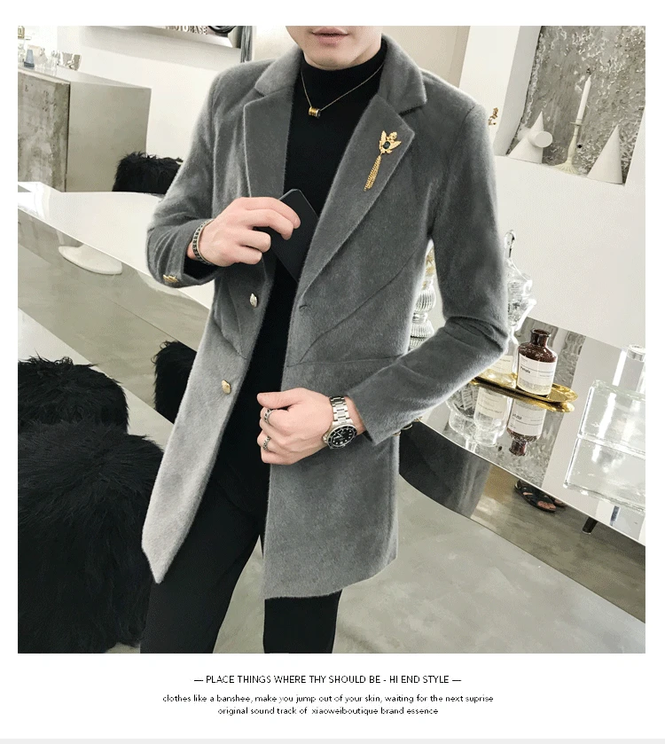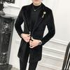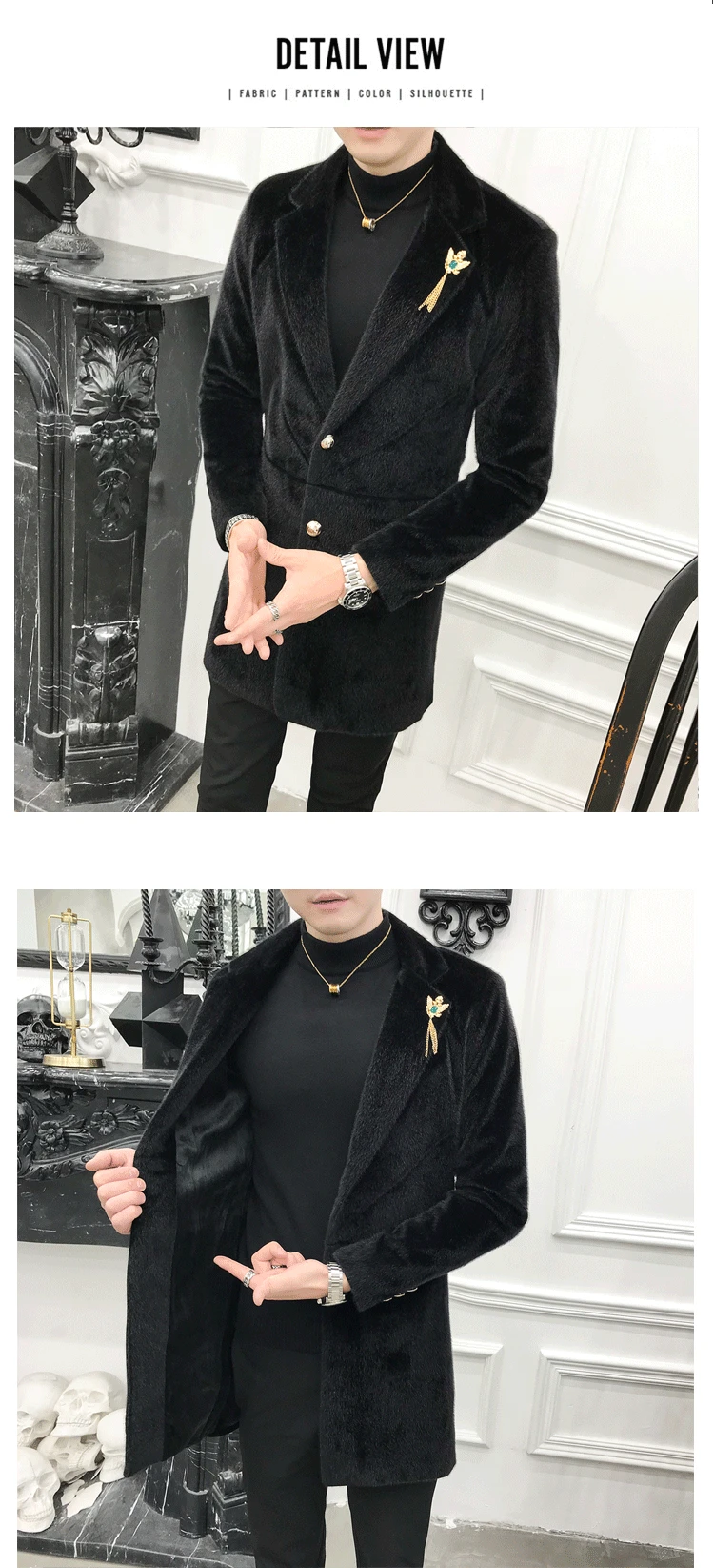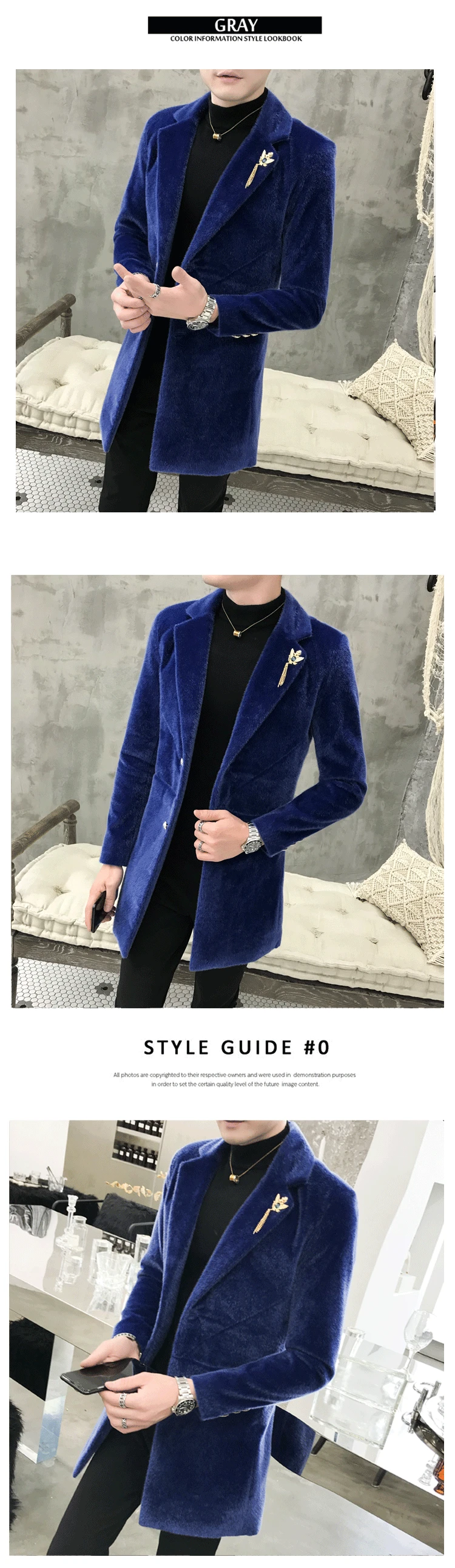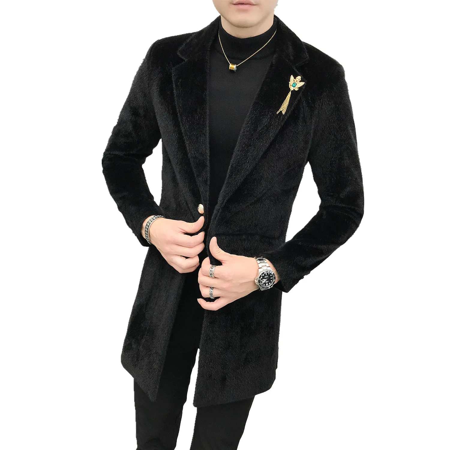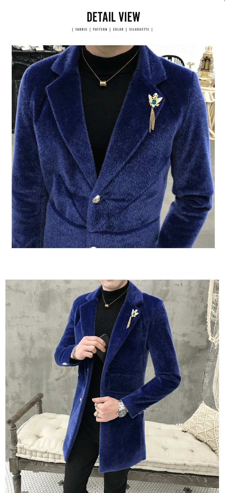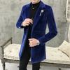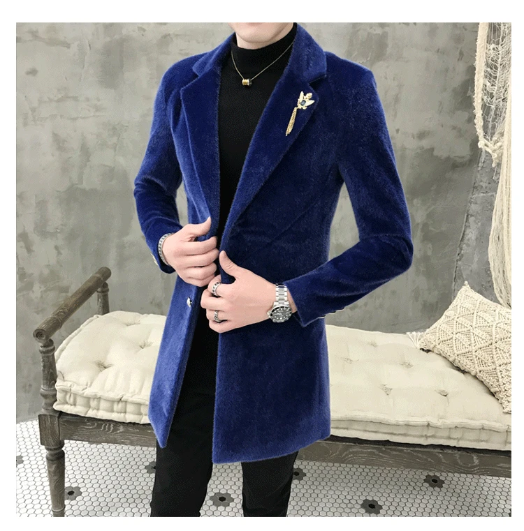 Luxury Mens Long Coats Black Velvet Long Trench Coat Mens Wool Coats Gentleman Long Jackets Slim Fit Elegant Abrigos Hombre Blue