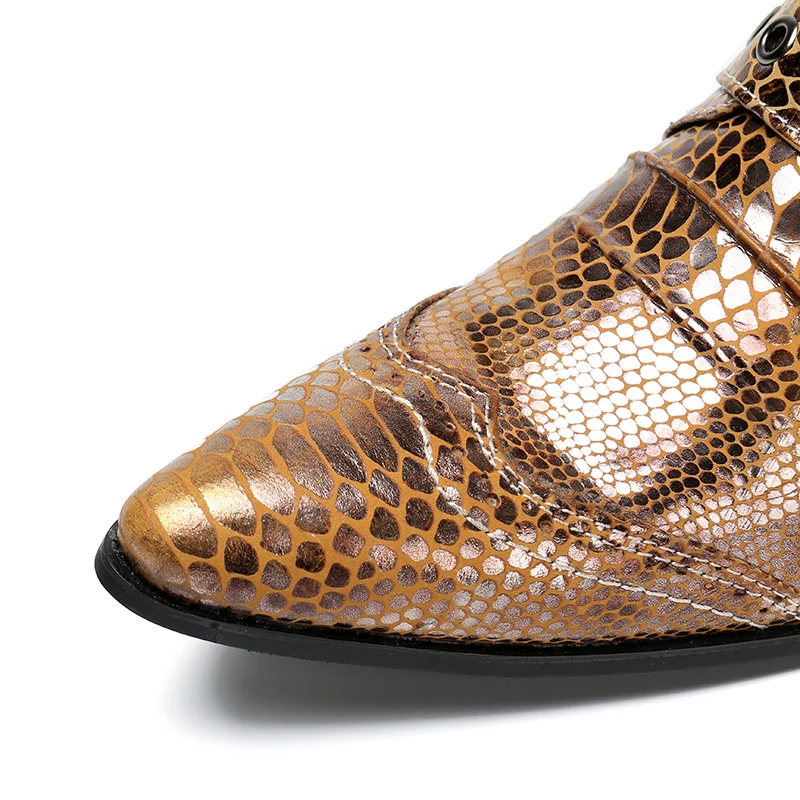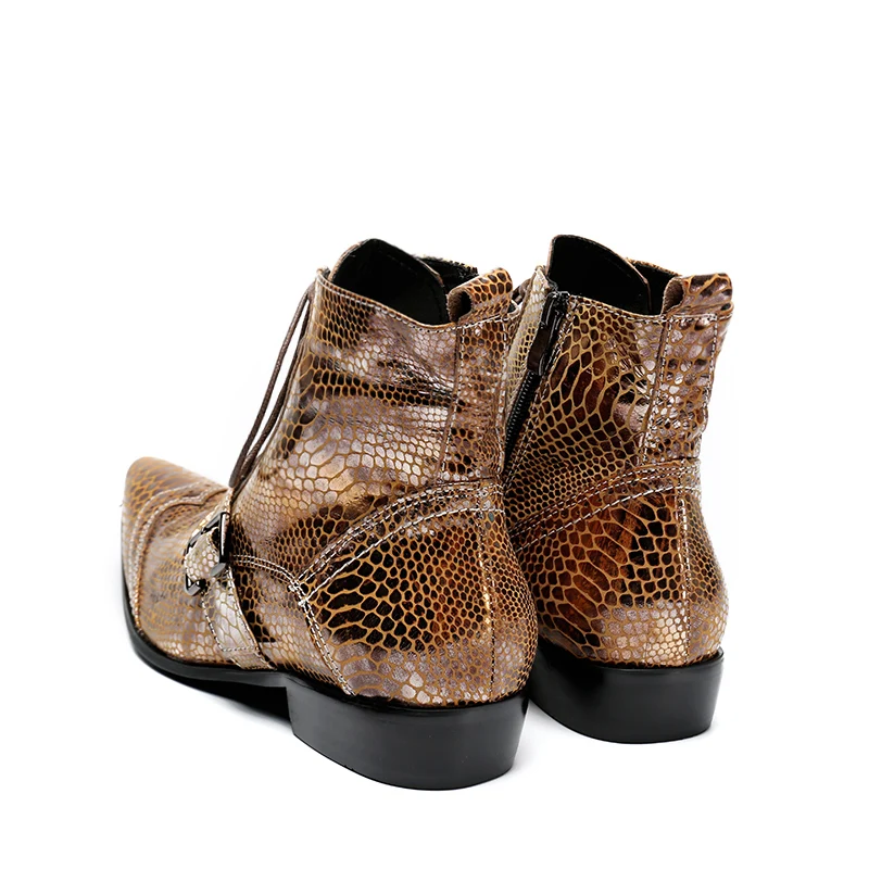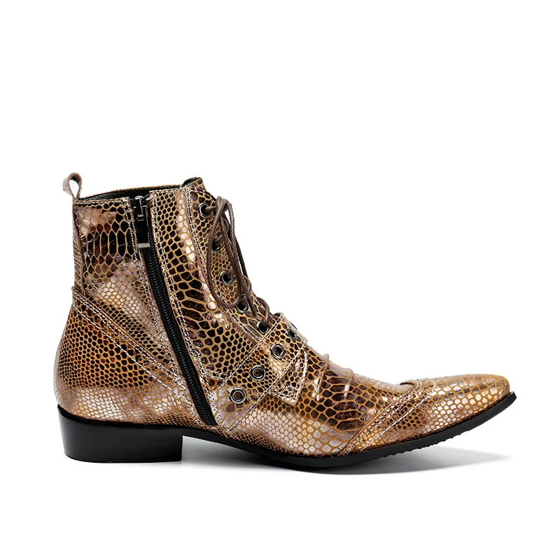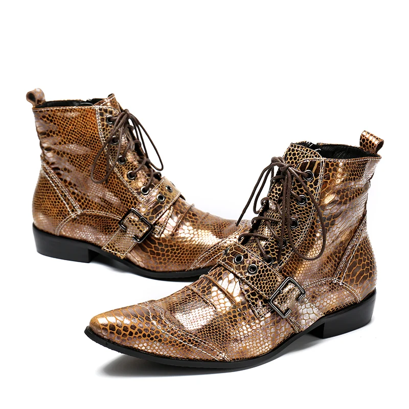 Luxury Punk Bling Genuine Leather Men Ankle Boots Pointed Toe Lace Up Mens Military Cowboy Boots High Top Strap Cool Men Shoes
