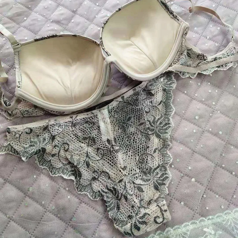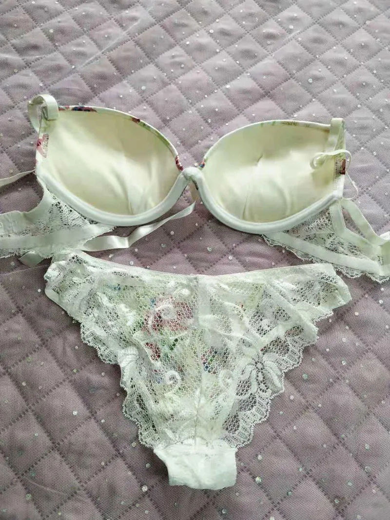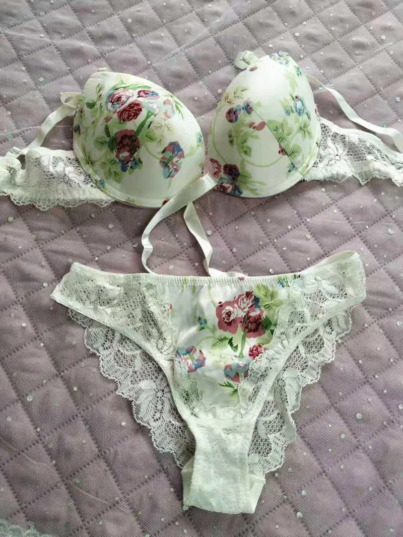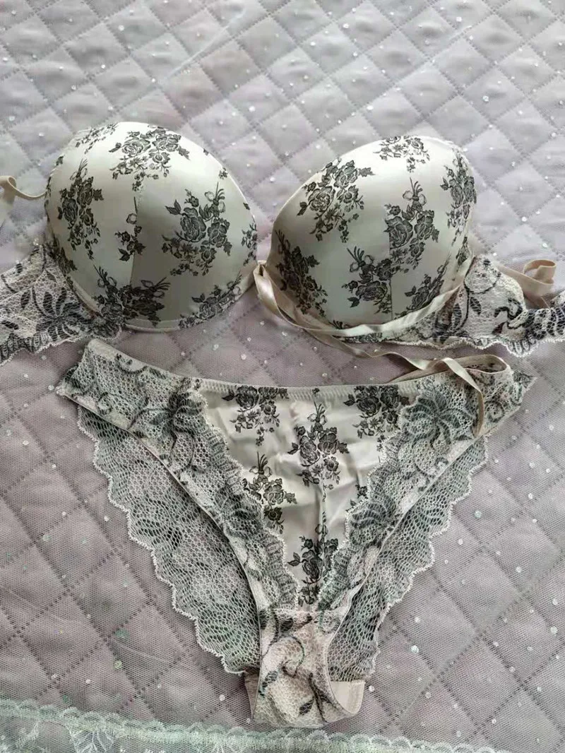 Luxury Satin Bra Set Floral Print Lace Underwear Women’s Ladies Lingerie with See Through Bikini Panties Sexy Lace Plus Size