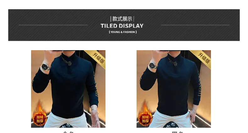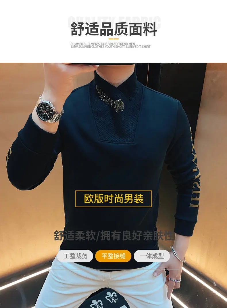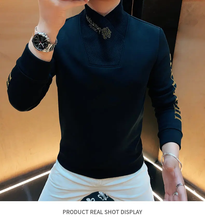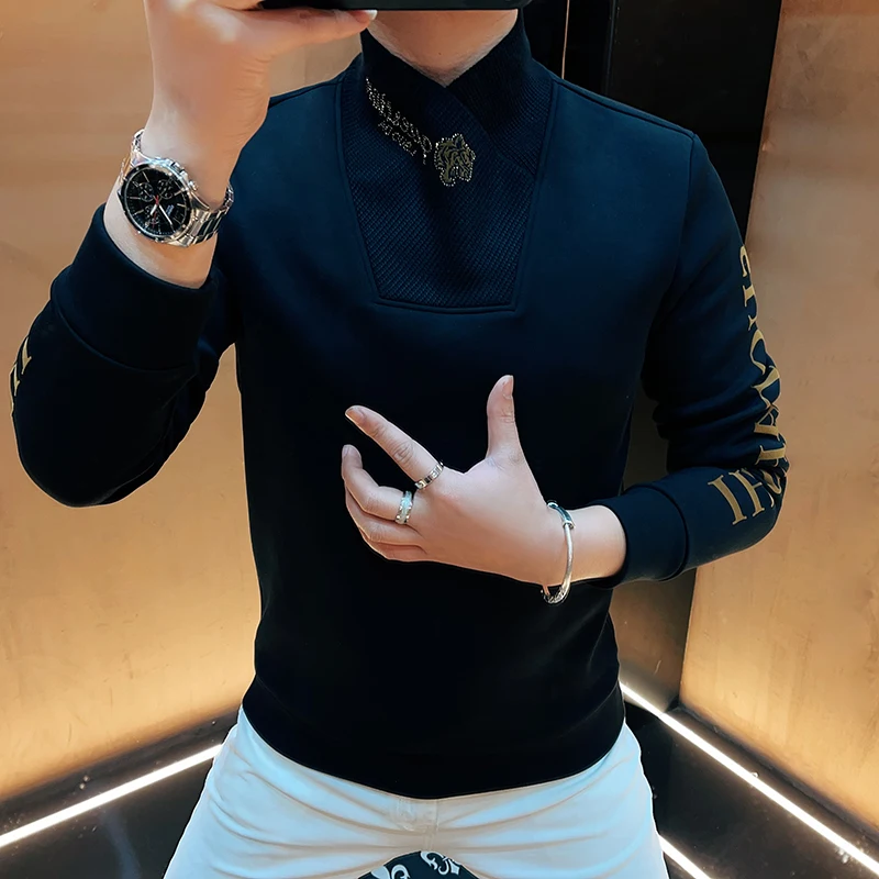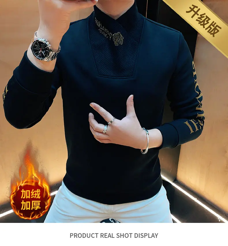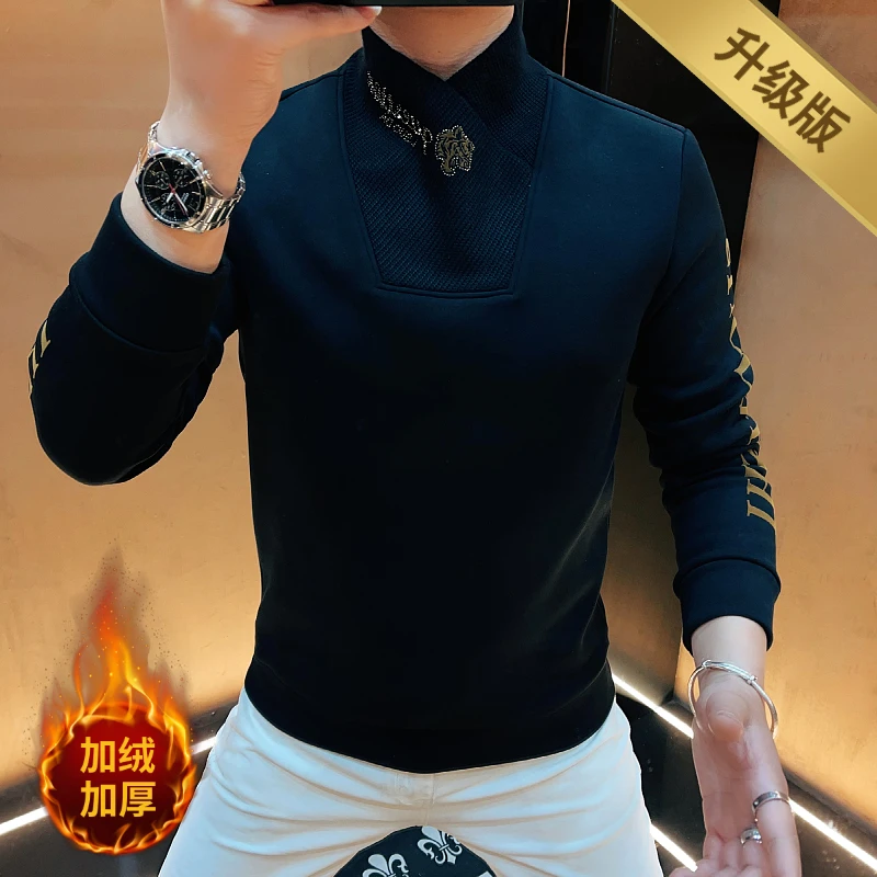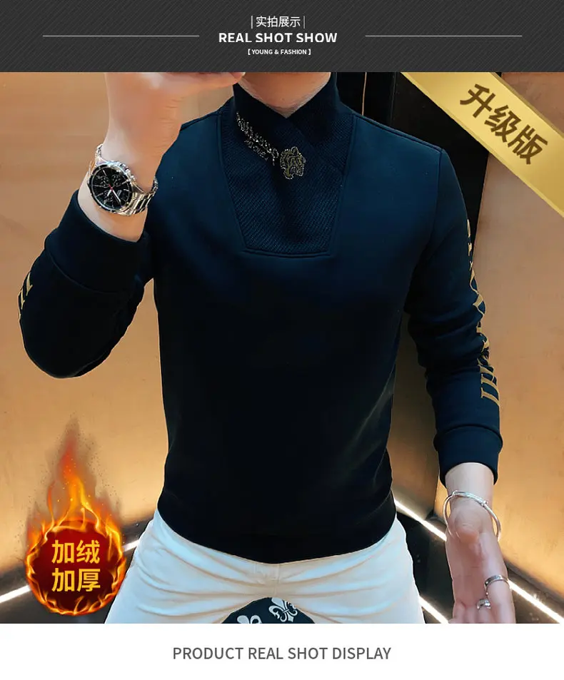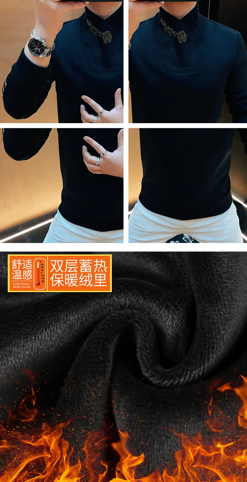 Luxury Turtleneck Winter Mens Clothing Warm Thick Man Jumper Velvet Plush Blouse Elastic Stand Collar Pullover Stretch Clothes