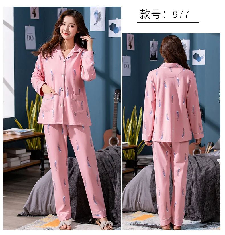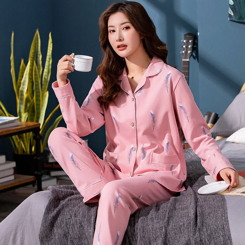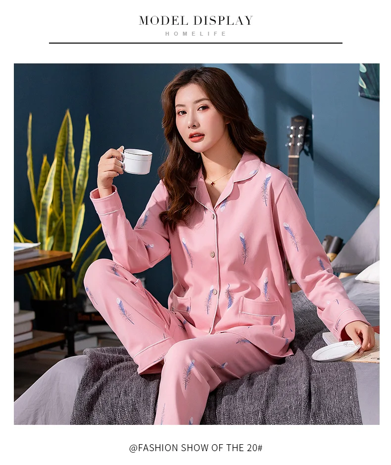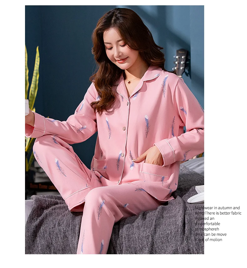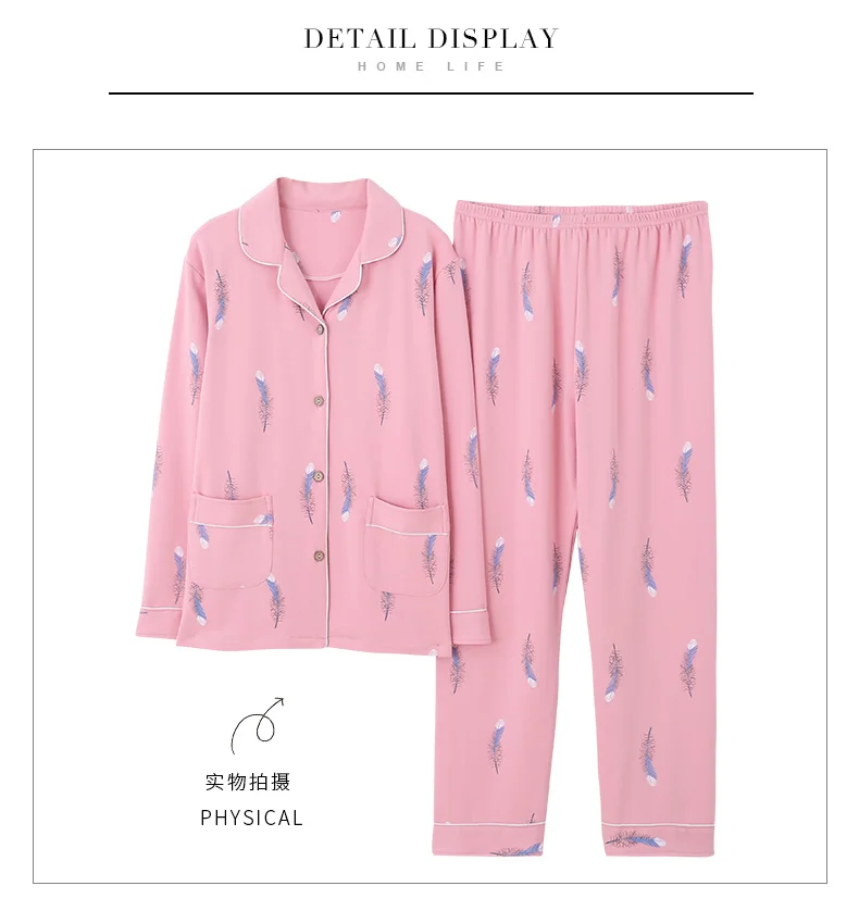 M L XL XXL 3XL 4XL Full Pure Cotton Sleep Wear Women Pajamas Set Loose Home Clothing Print Cardigan Sleepwear Autumn Pyjamas