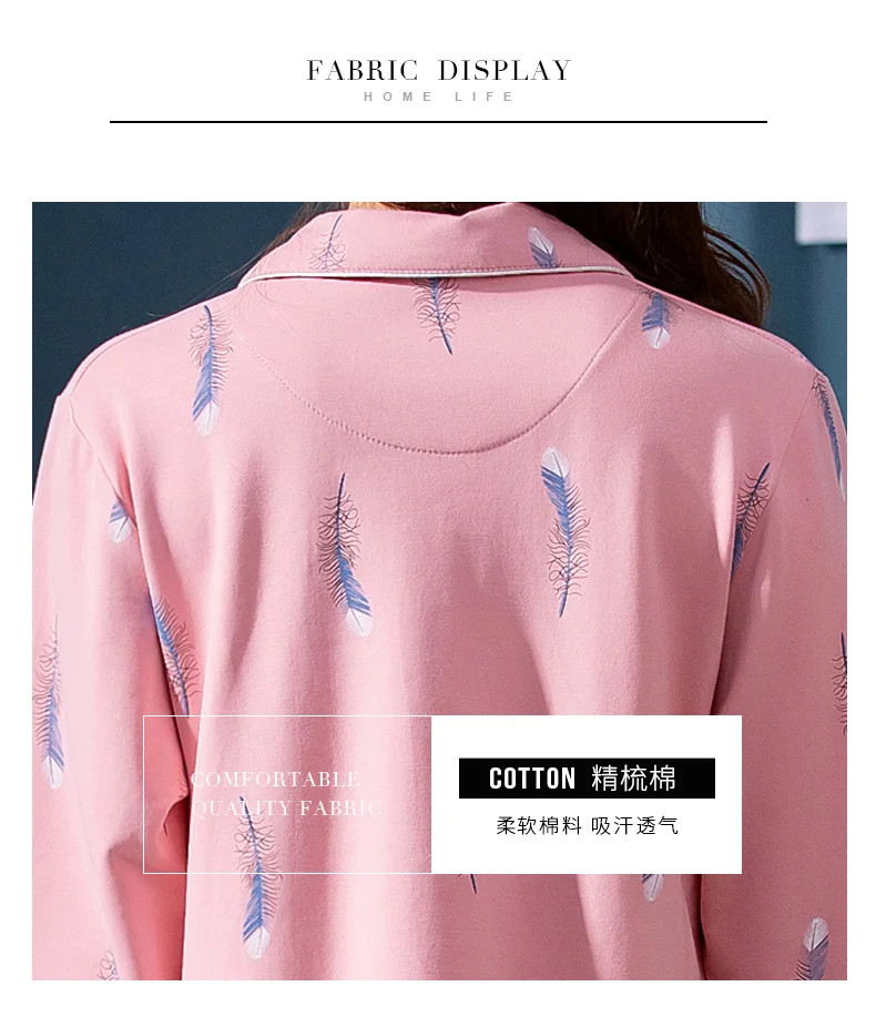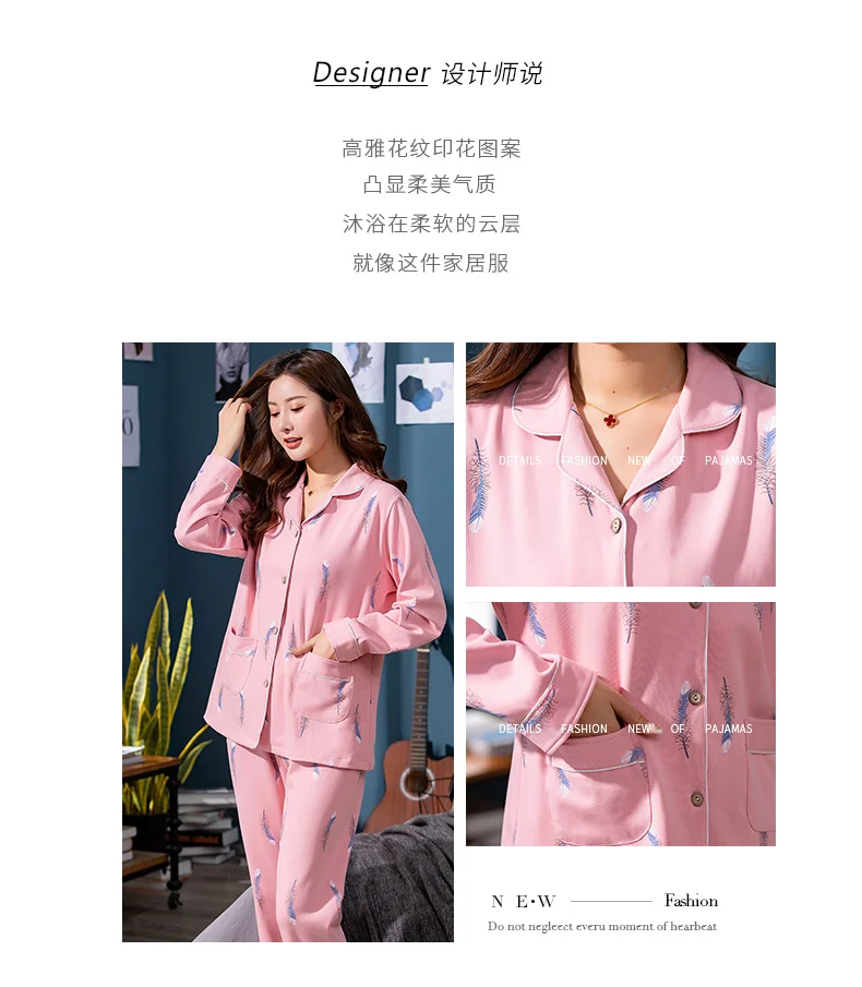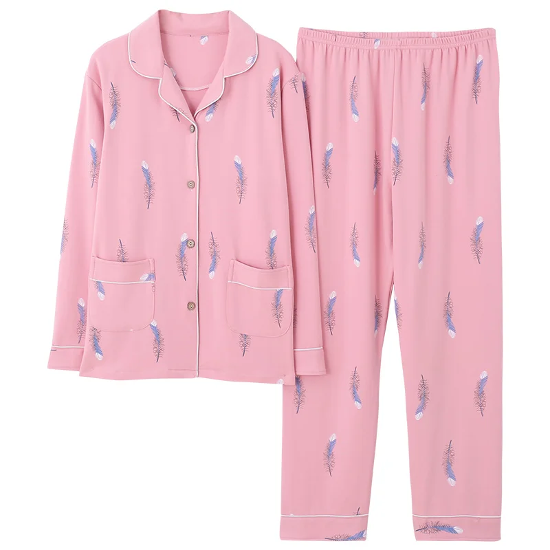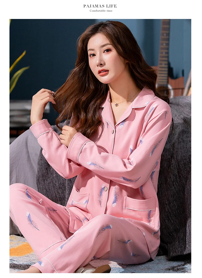 M L XL XXL 3XL 4XL Full Pure Cotton Sleep Wear Women Pajamas Set Loose Home Clothing Print Cardigan Sleepwear Autumn Pyjamas