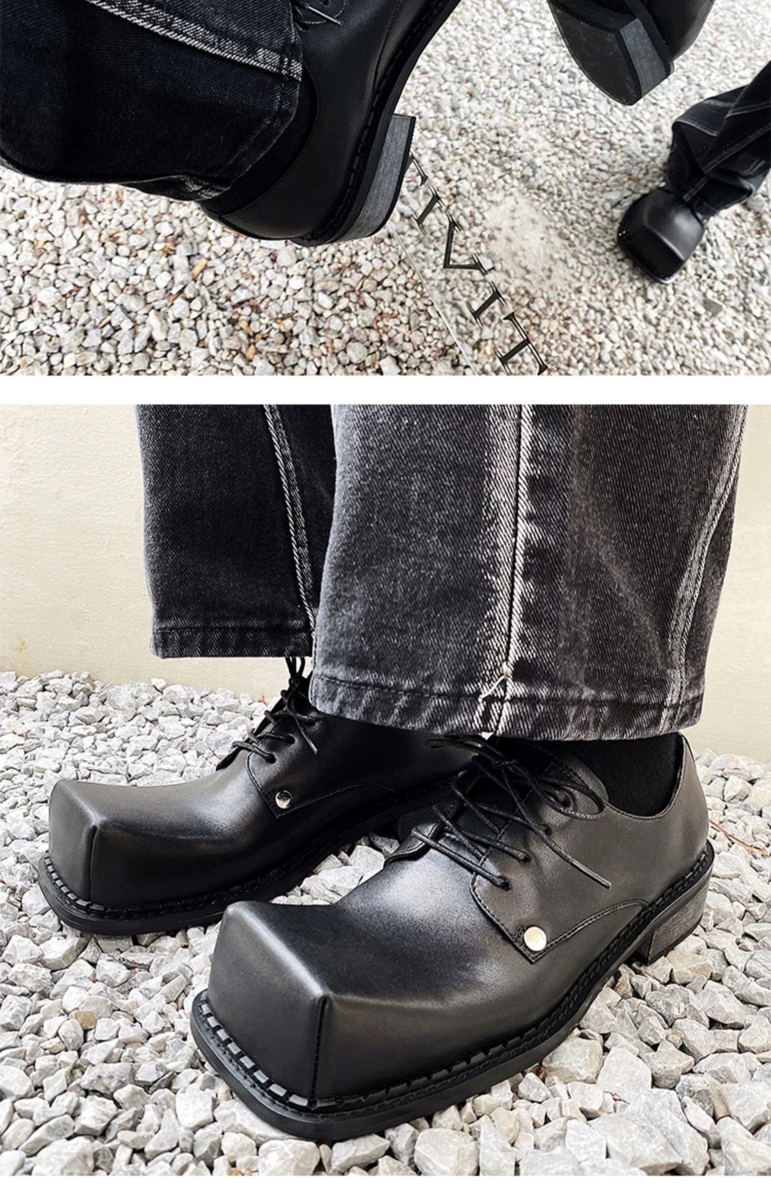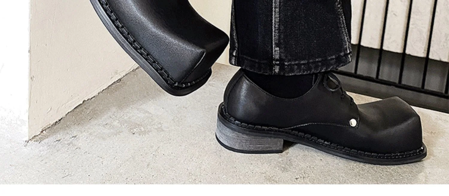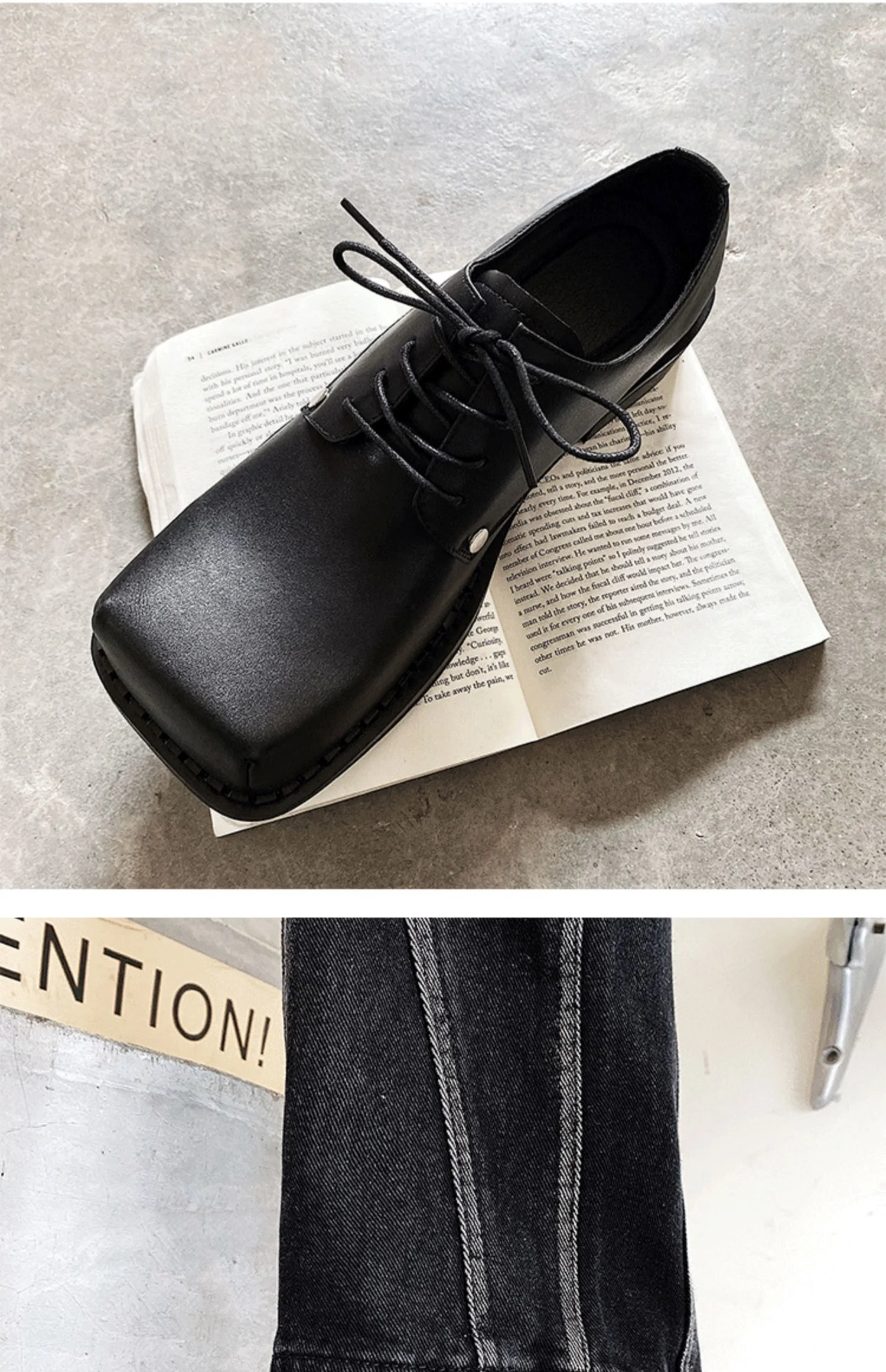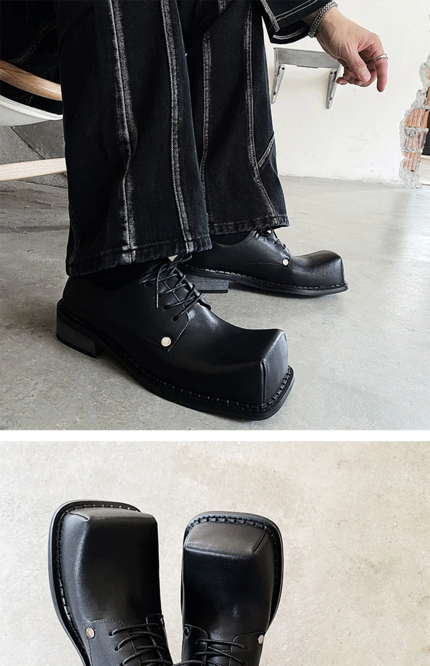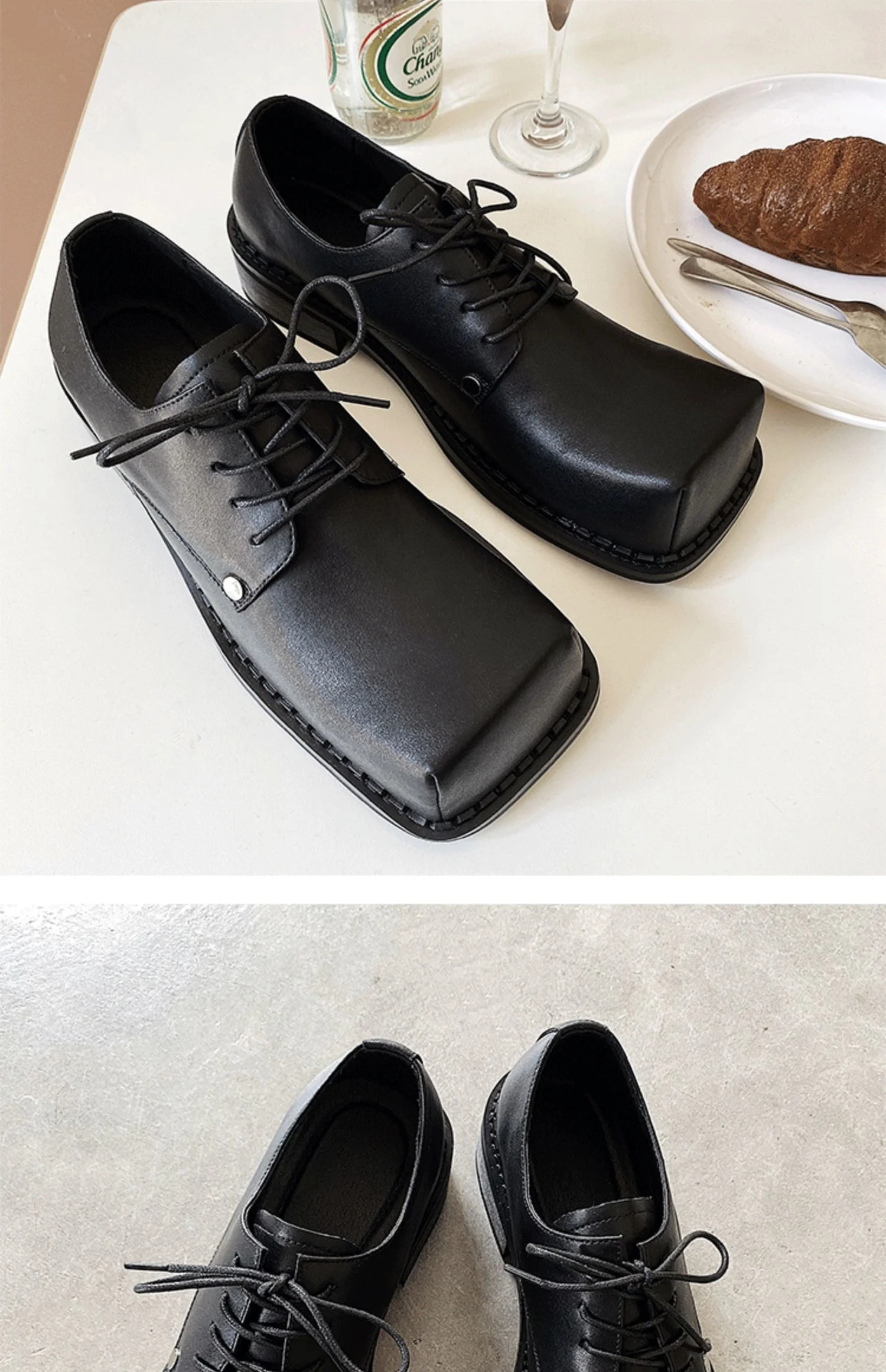 Male Leather Shoes Men 2022 New Square head Chunky Platform Retro Work Shoes Spring Autumn Derby Shoes Low Top Man Casual Flats