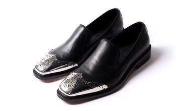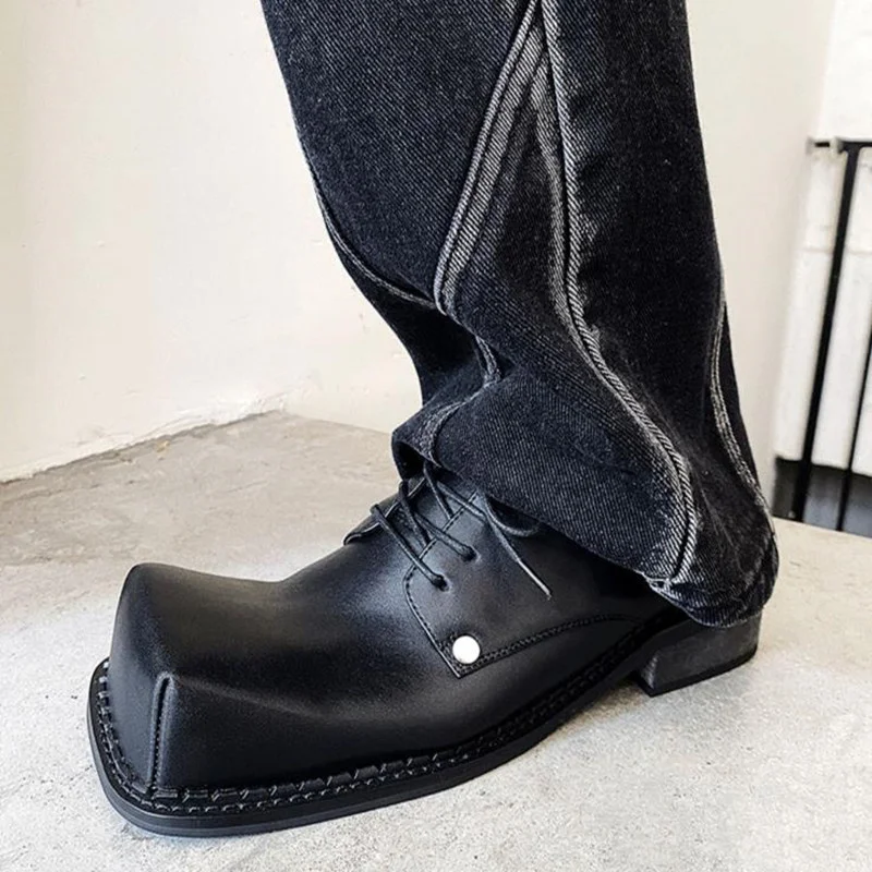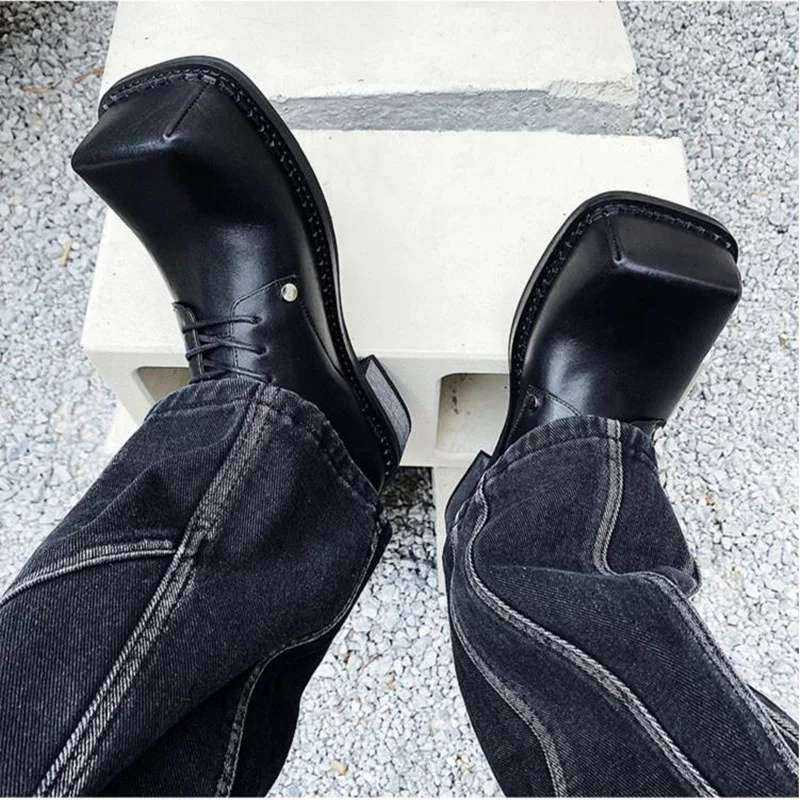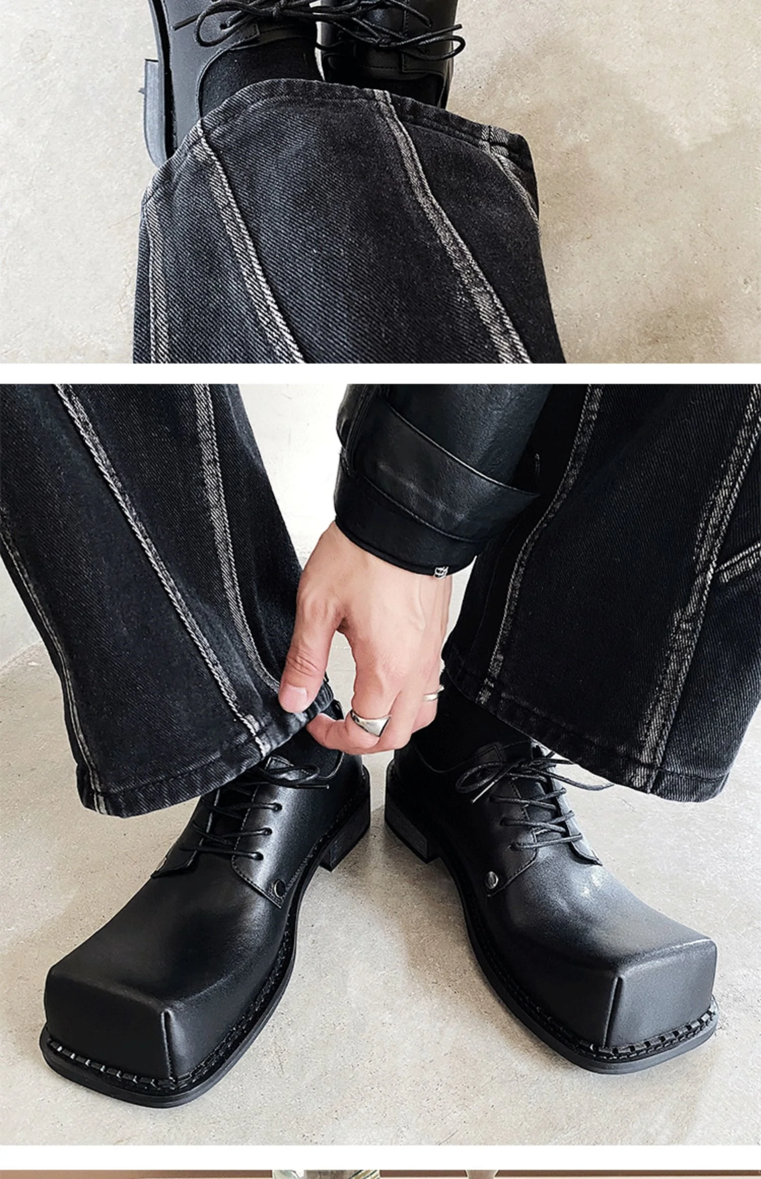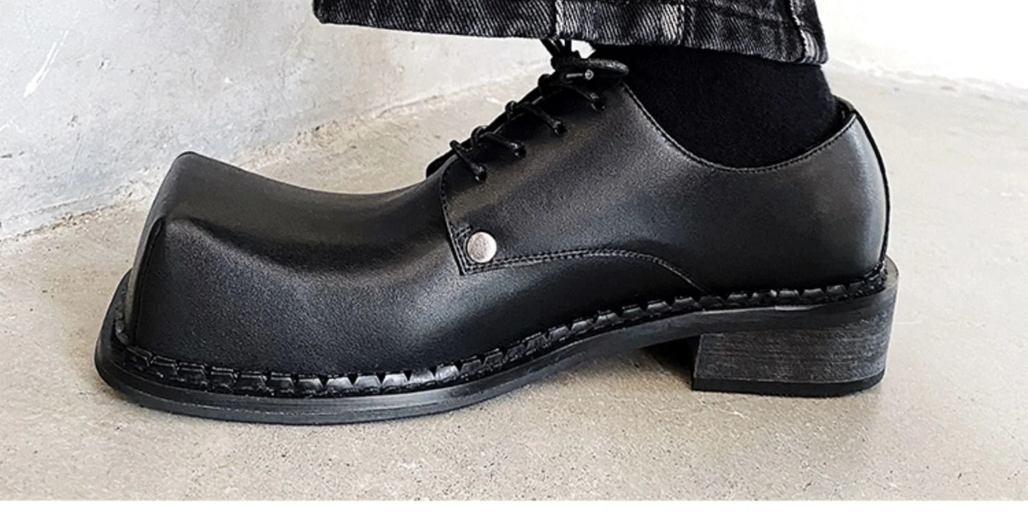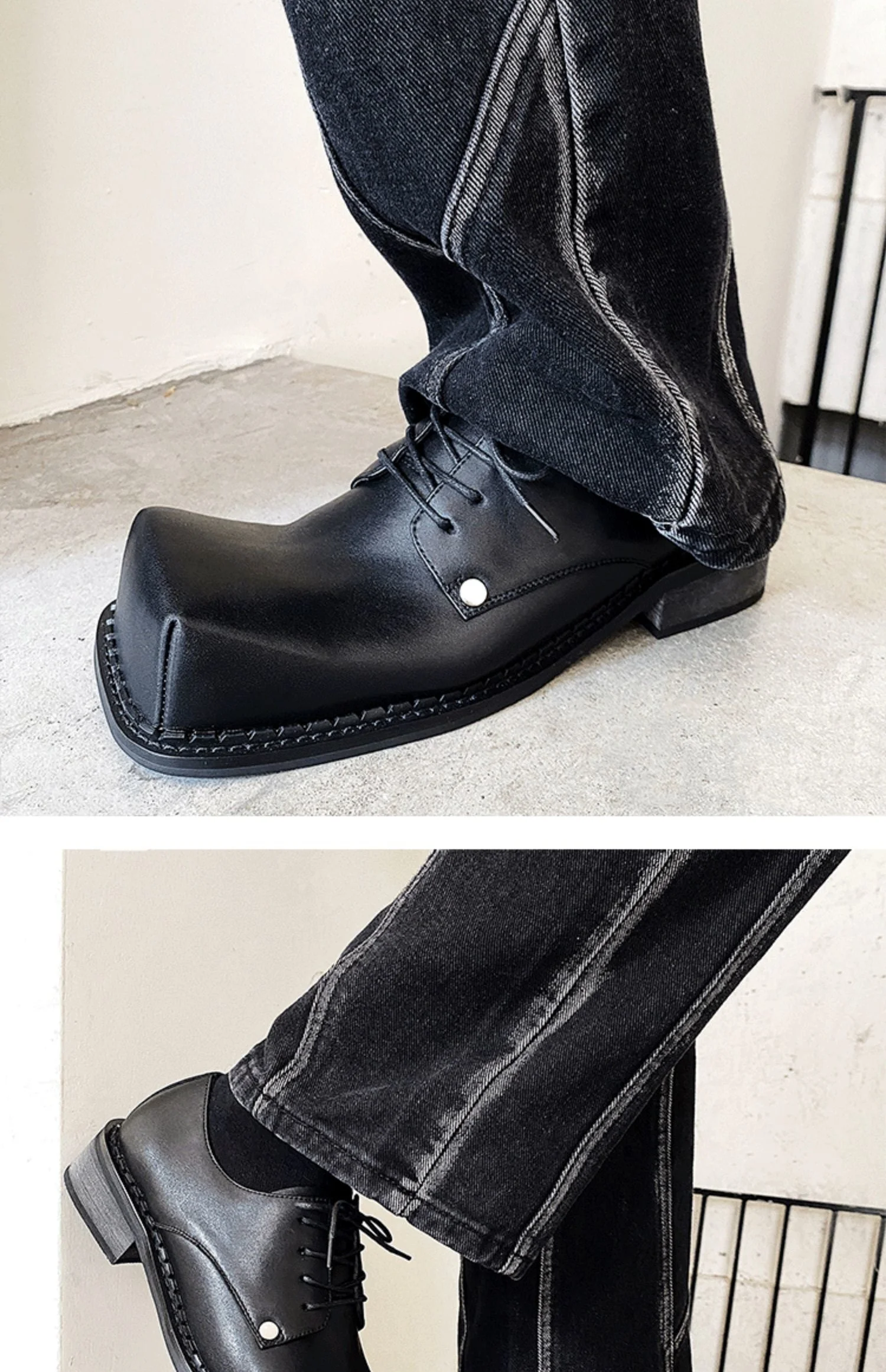 Male Leather Shoes Men 2022 New Square head Chunky Platform Retro Work Shoes Spring Autumn Derby Shoes Low Top Man Casual Flats