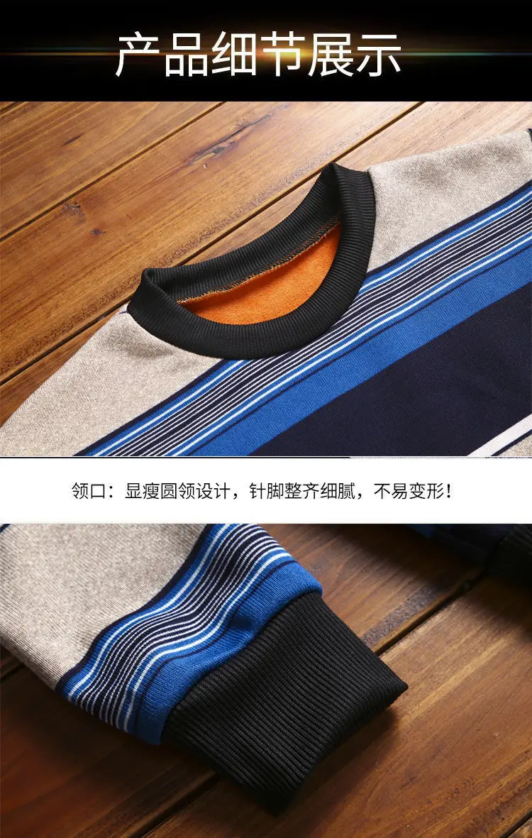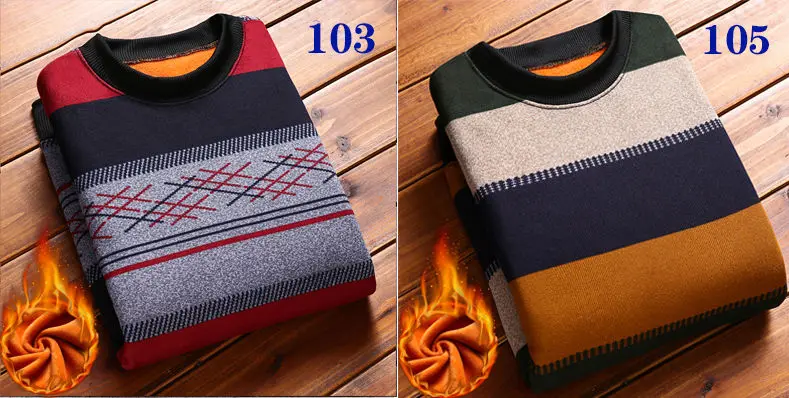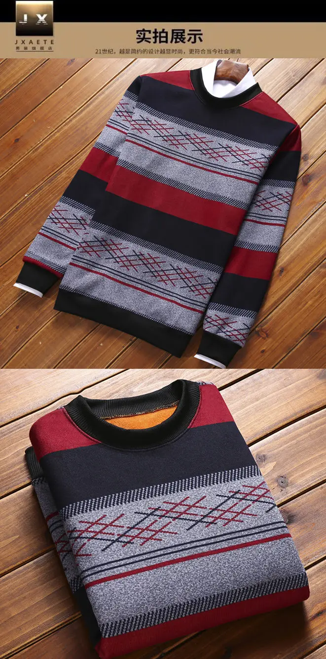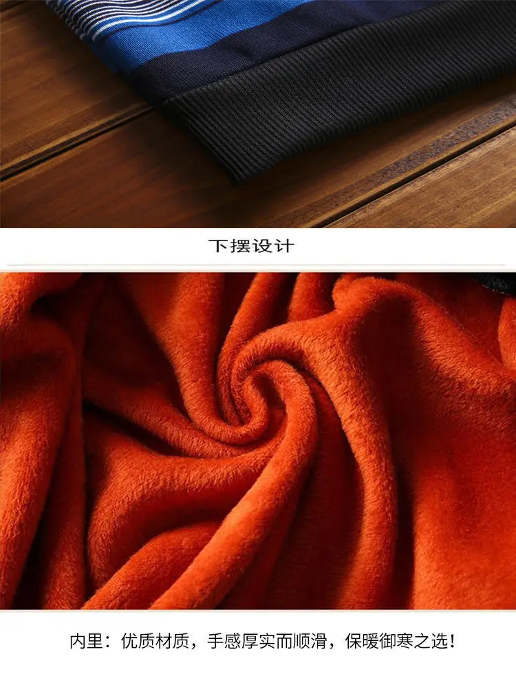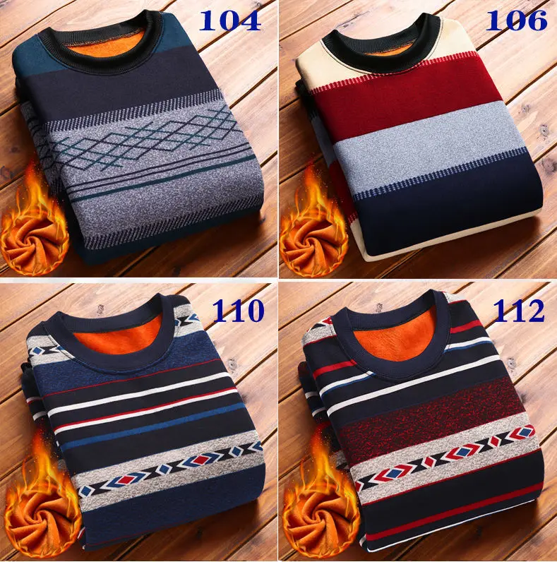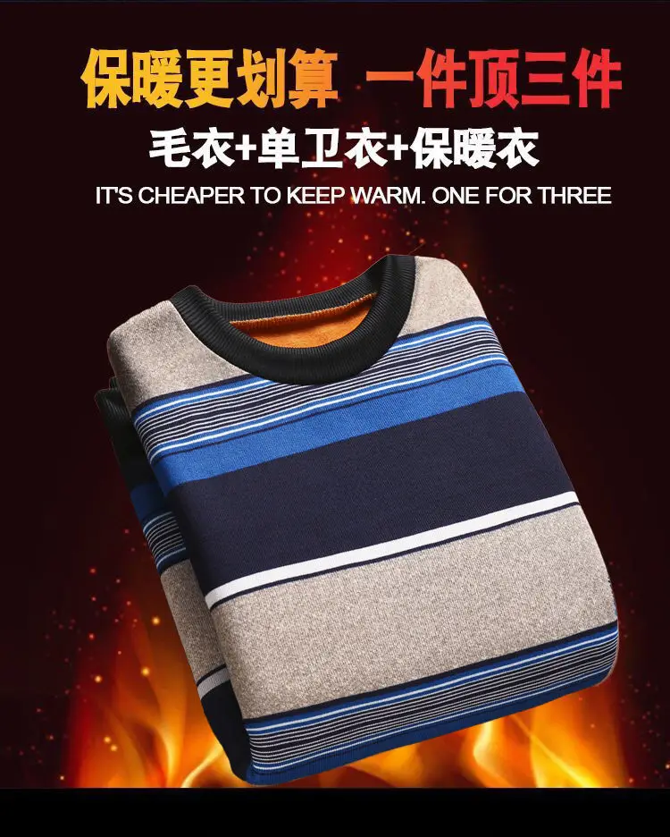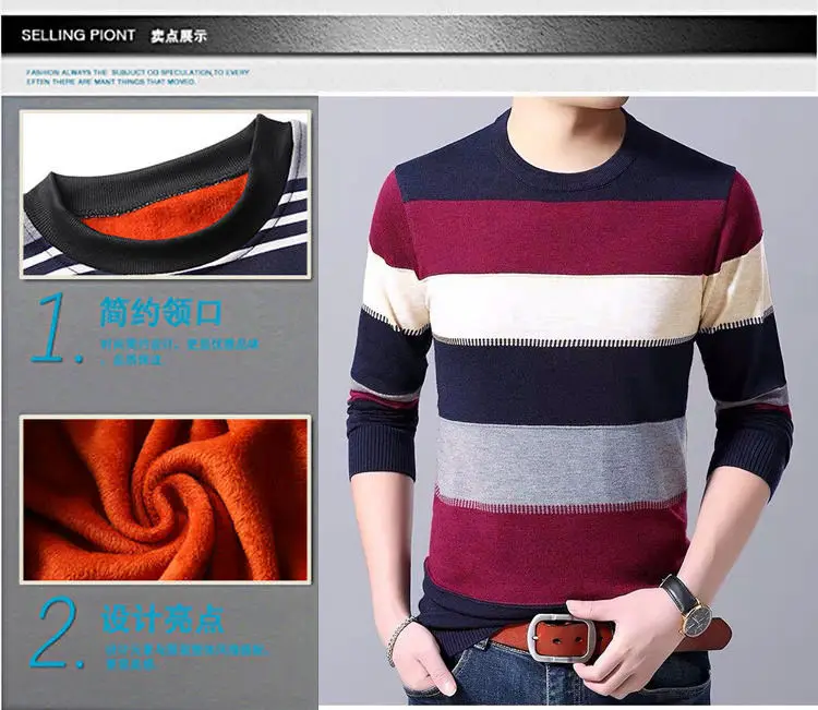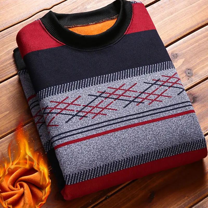 Man Fleece Sweater 2023 New Autumn Winter Fashion Stripe Warm Sweater Male Gold Velvet Thicken Sweater Winter O-Neck Knitwear
