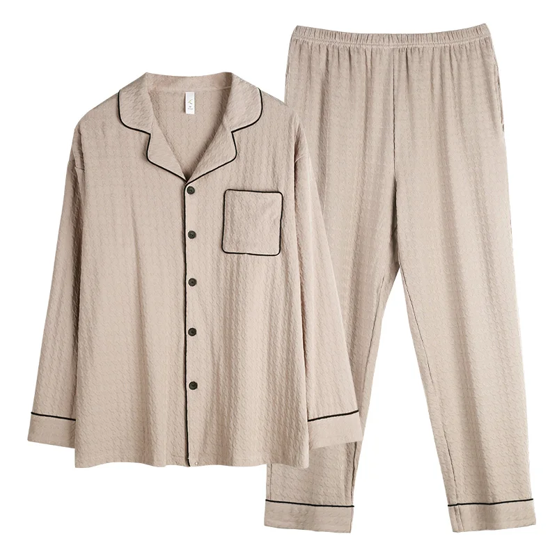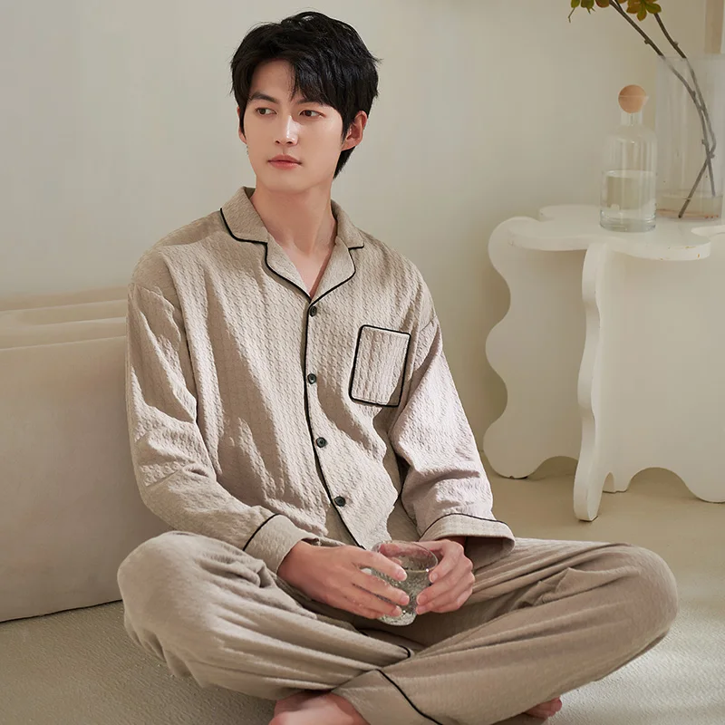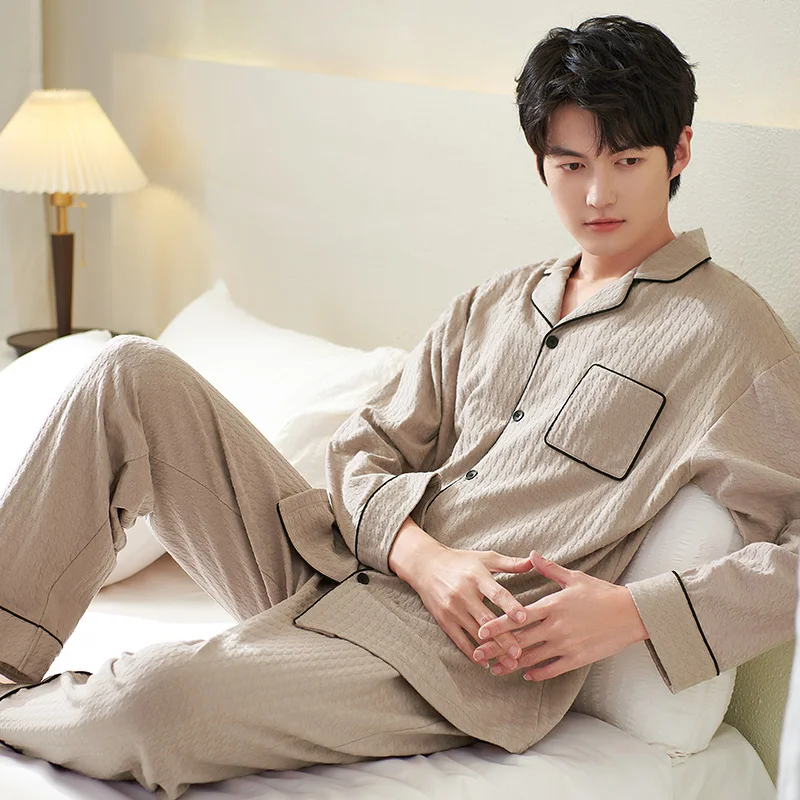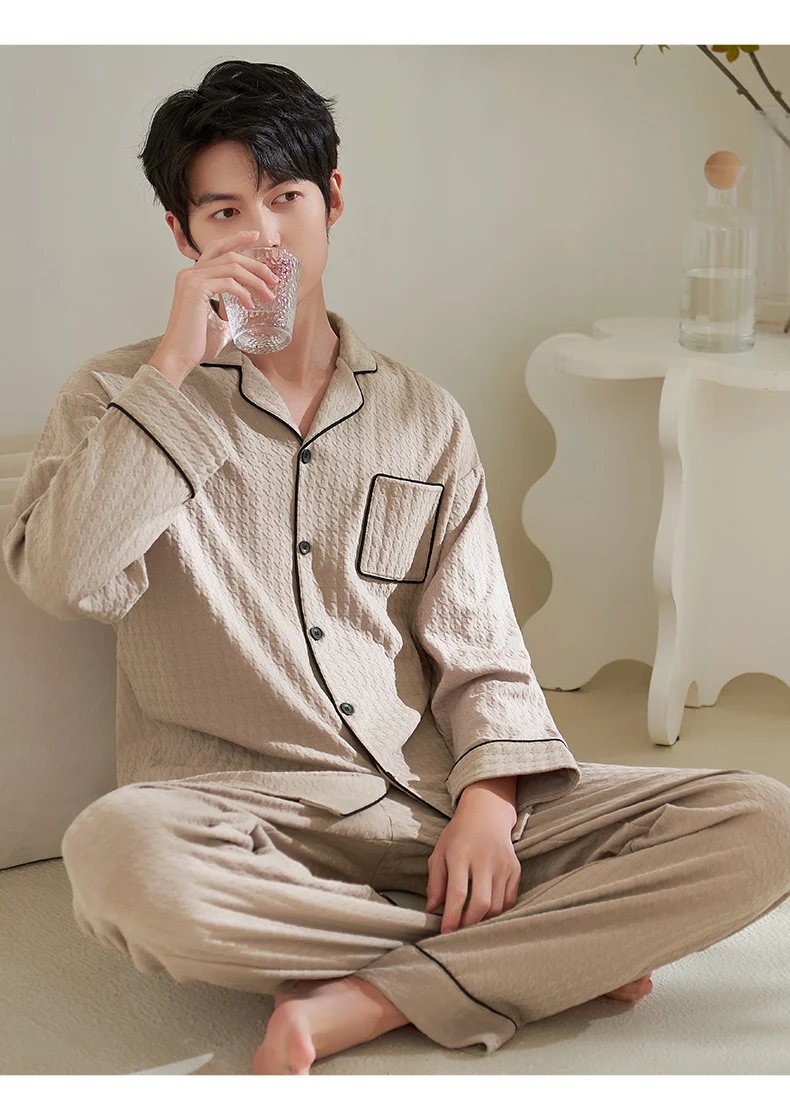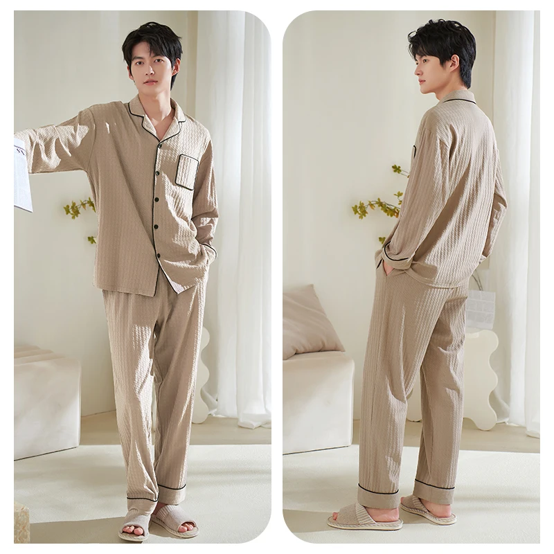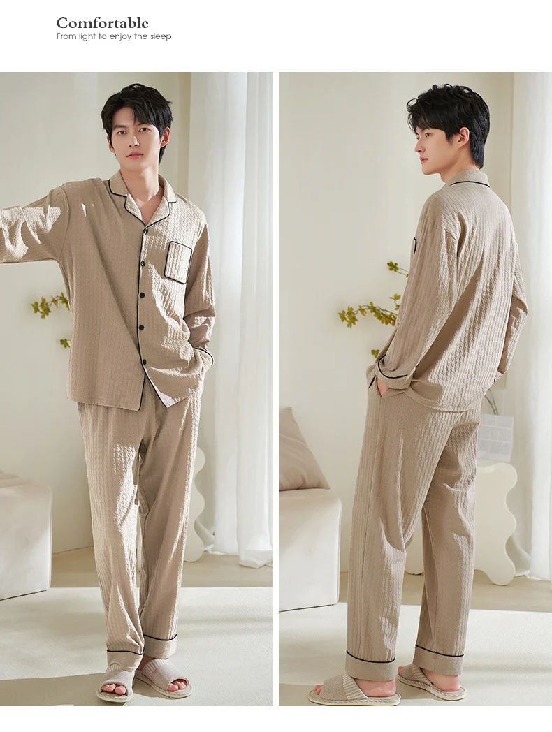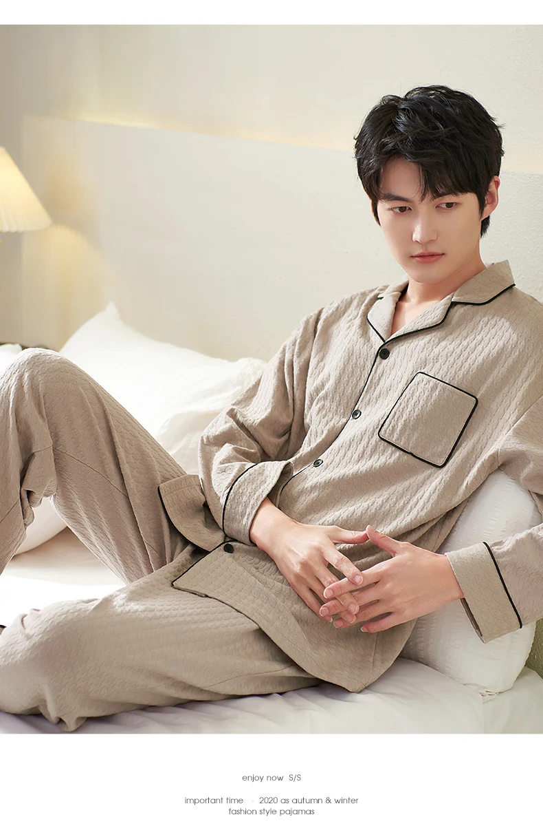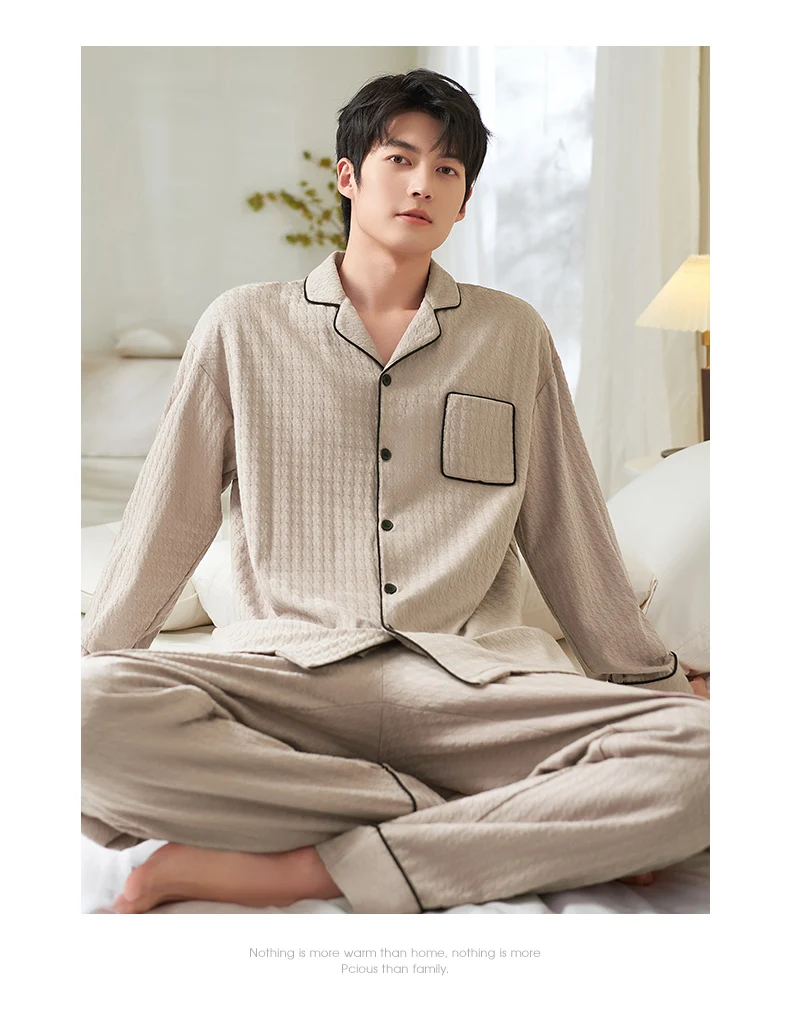 Man Pajamas Sets Spring Autumn Long Sleeve Soft Cotton Pyjamas Cardigan Home Clothing Male Jacquard Weave Loose Casual Sleepwear