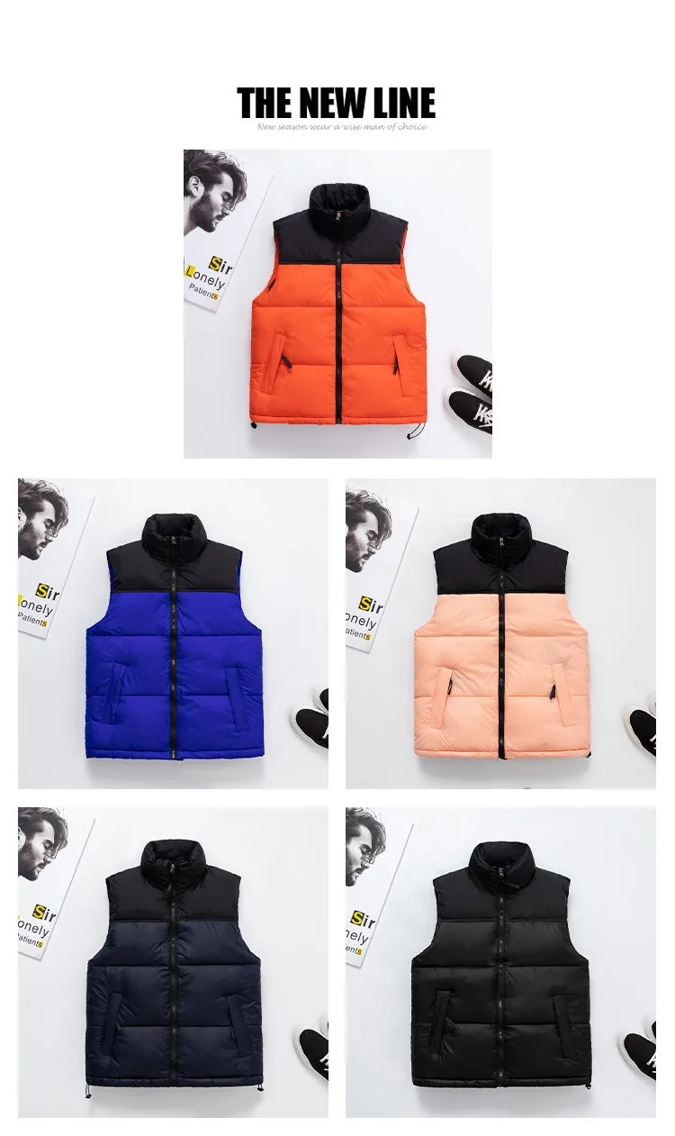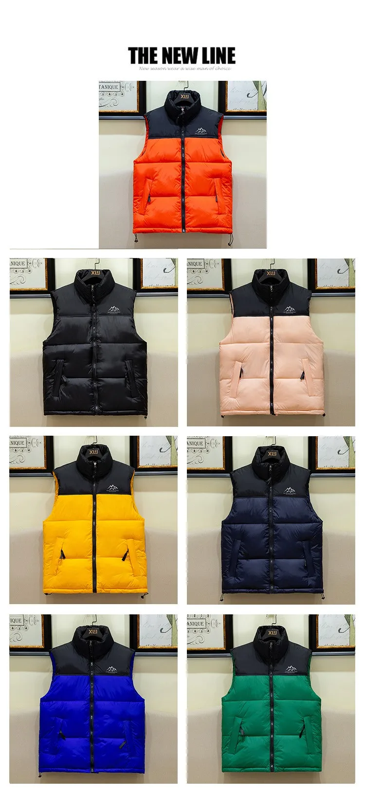 Men Autumn And Winter Jacket Vest For Down Cotton Patchwork Sleeveless Jacket Waistcoat Man Big Size Warm Couples Coat S-6xl