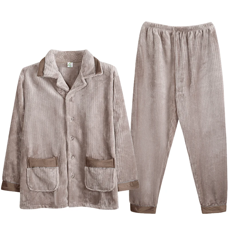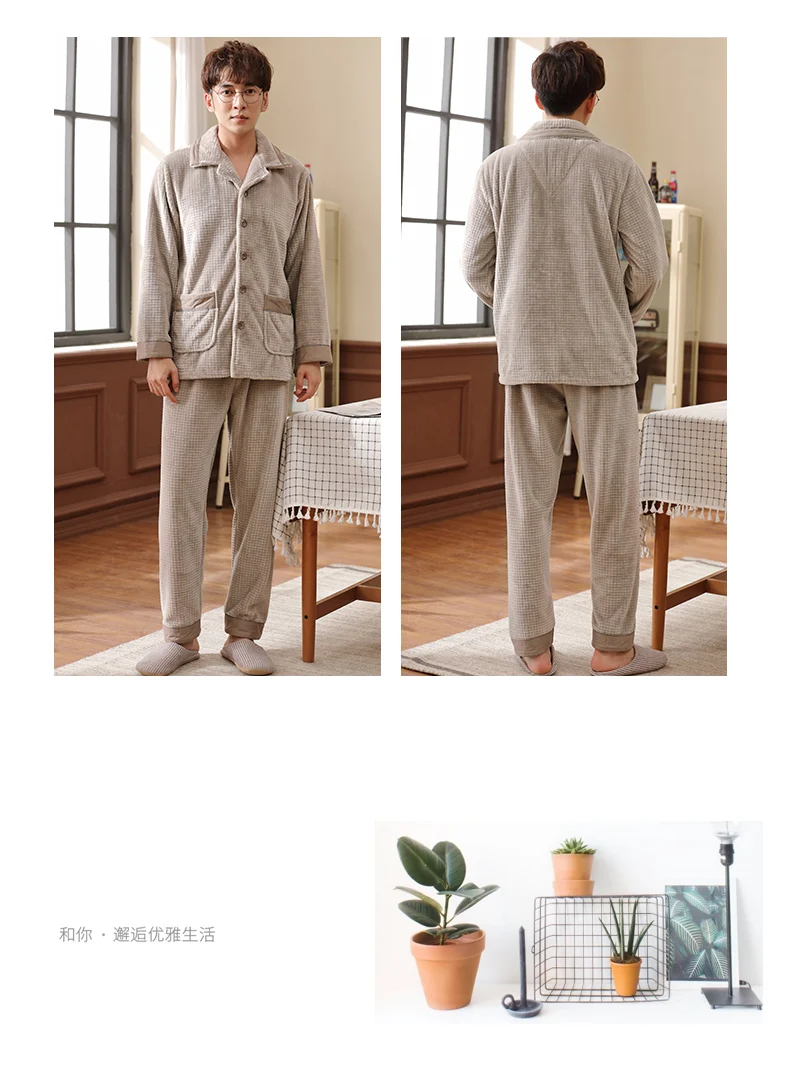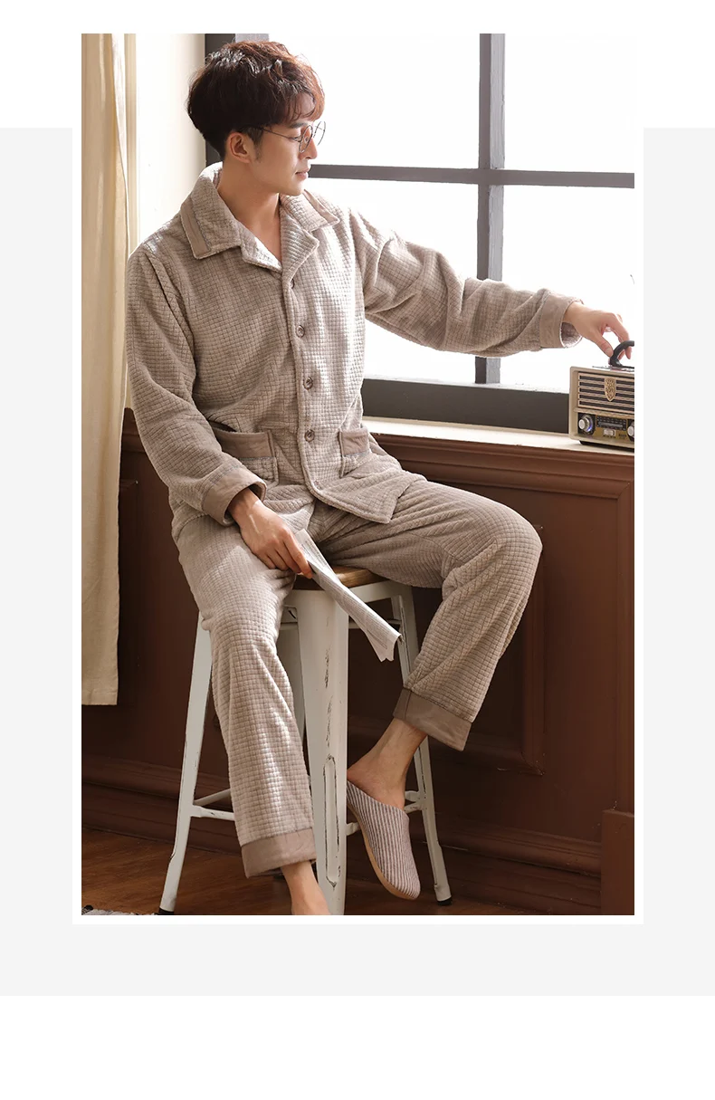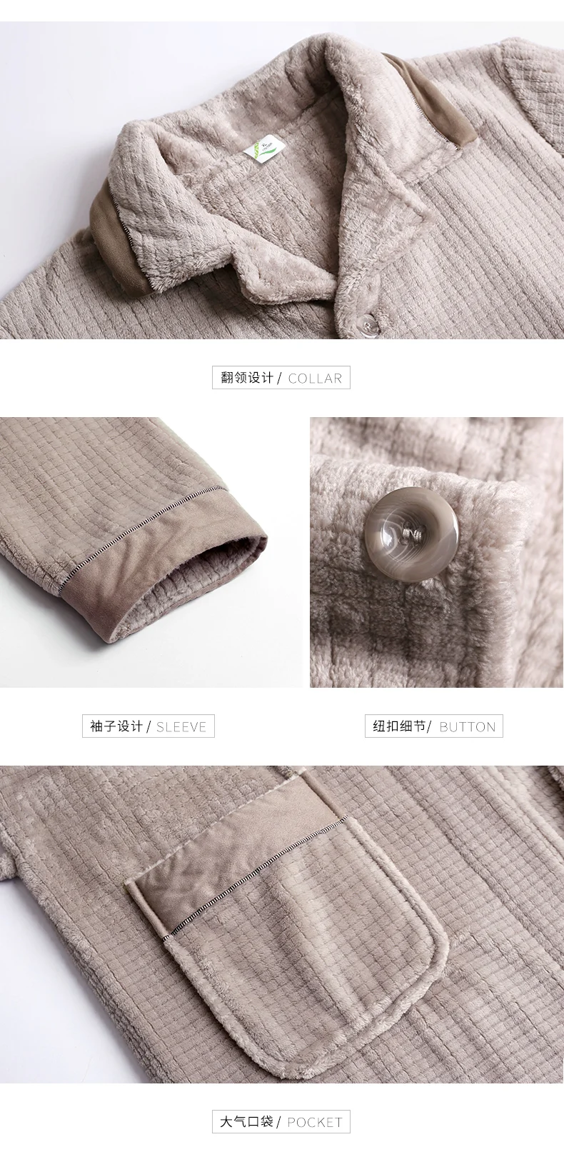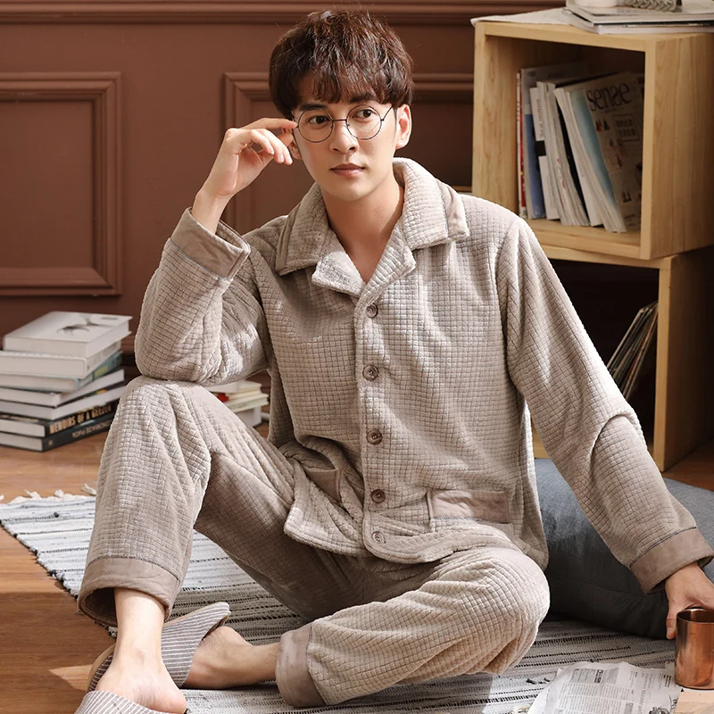 Men Cardigan Pajamas Set Warm Flannel Male Long-sleeved Autumn Winter Pyjama Loose Men Home Set Coral Fleece Sleepwear Top+ Pant
