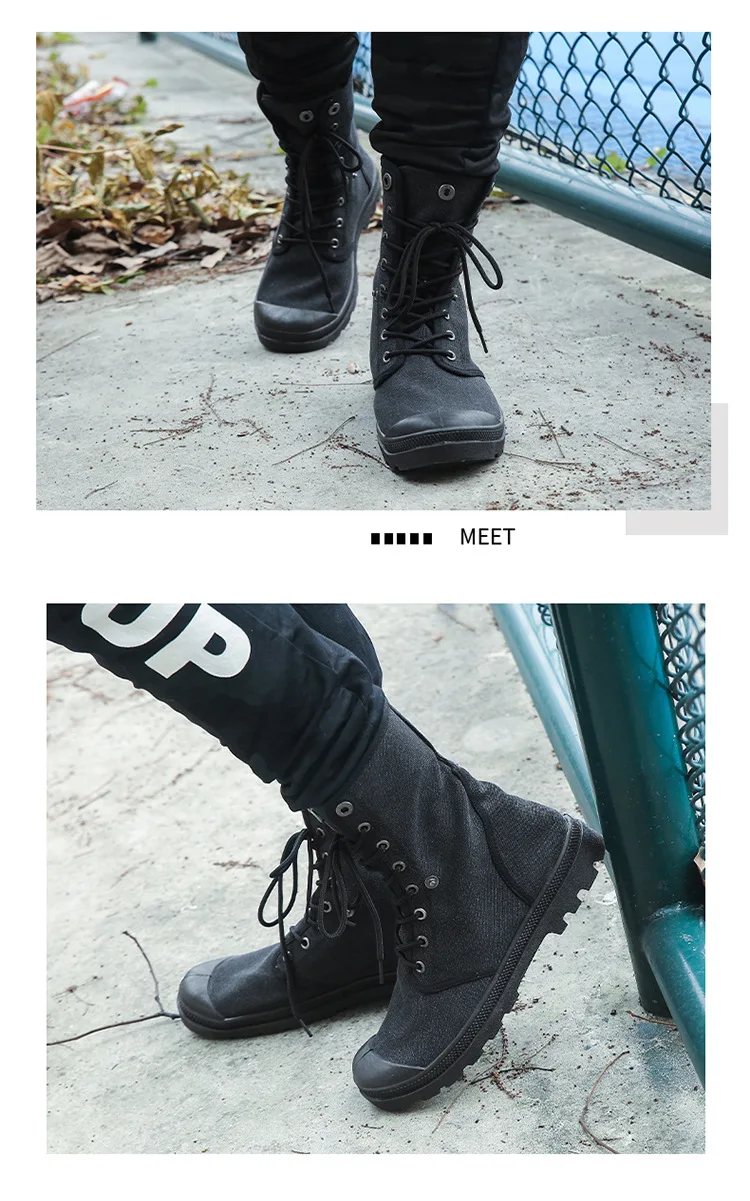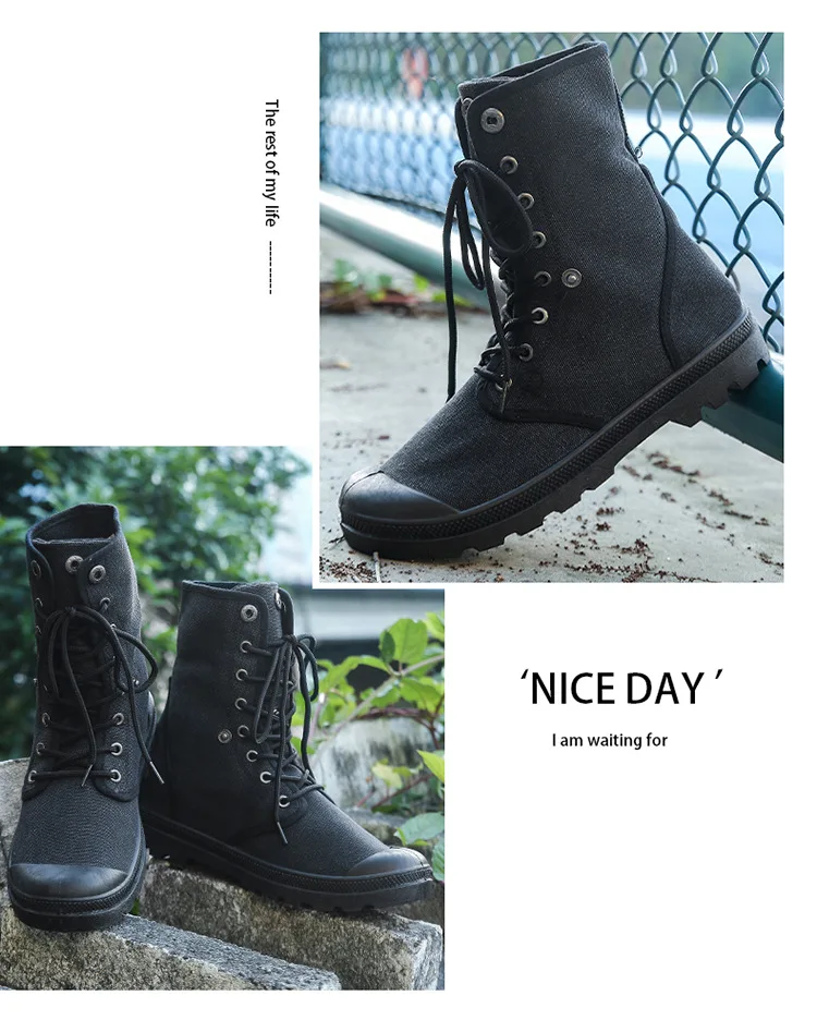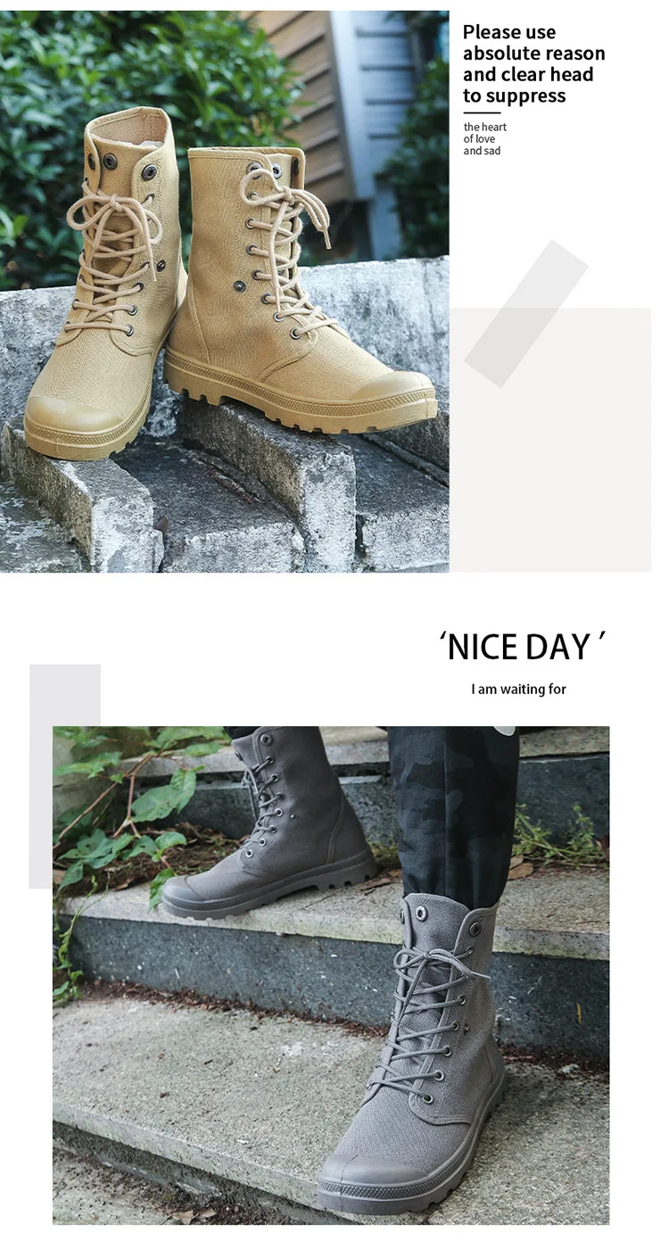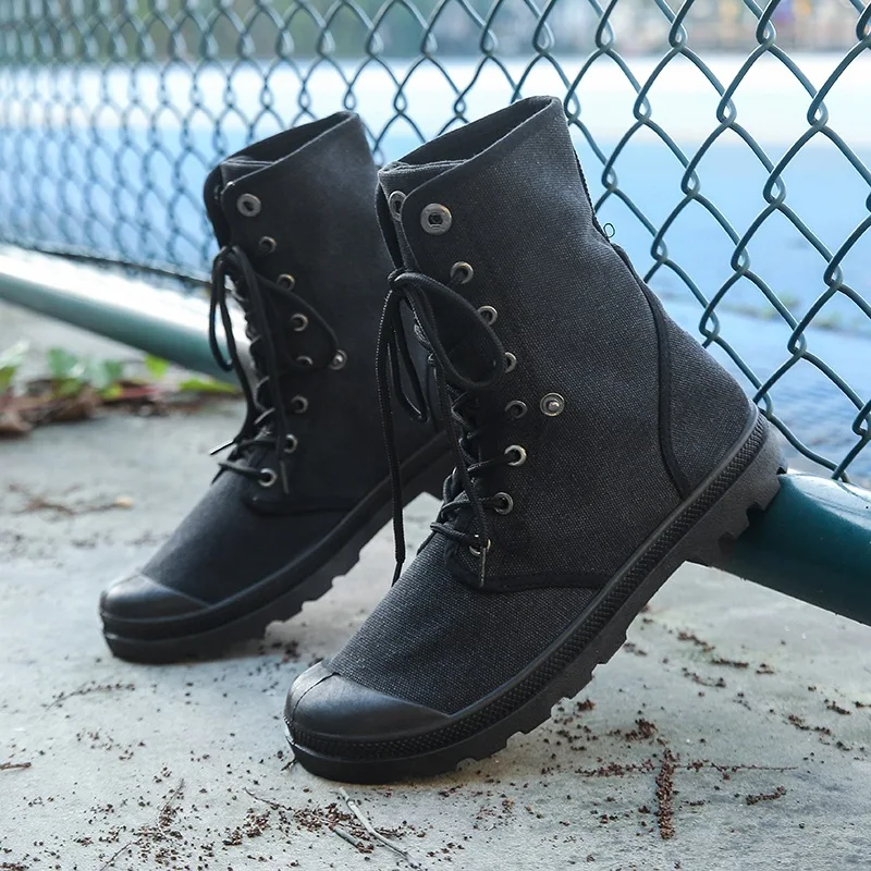 Men Casual Shoes With Thick Soles High Top Canvas Cuffs For Outdoor Work Fashion Sneakers