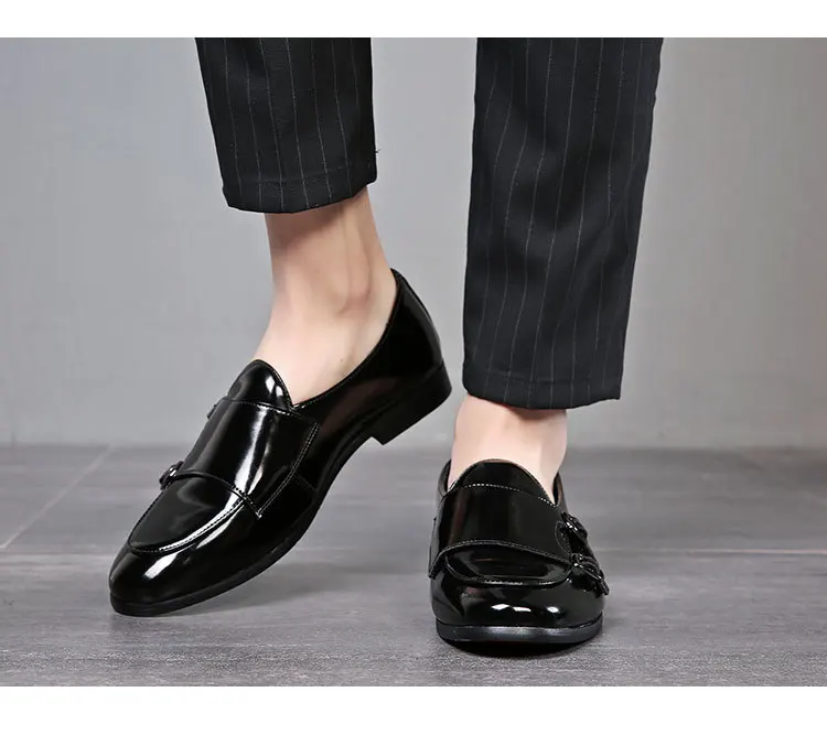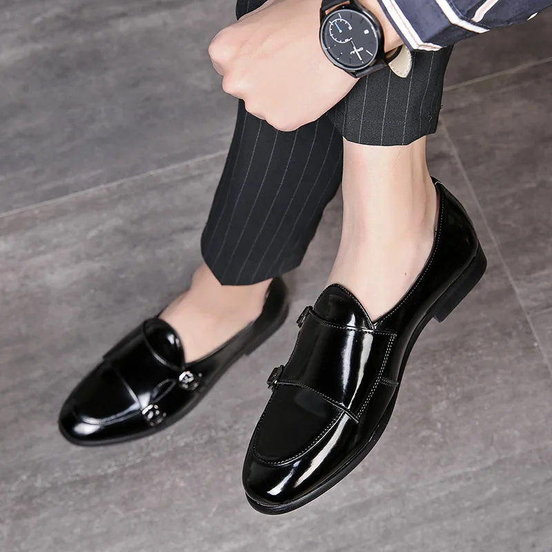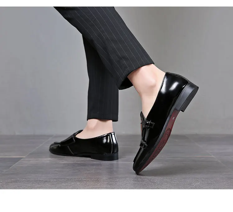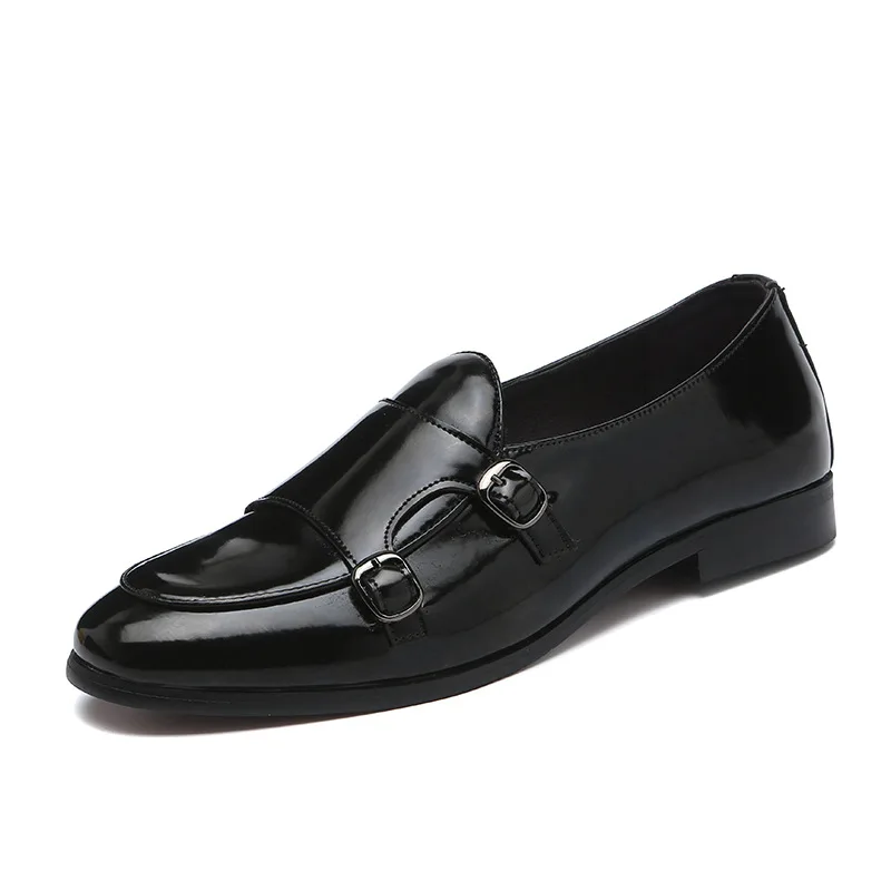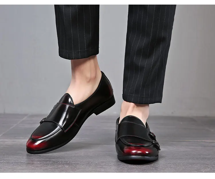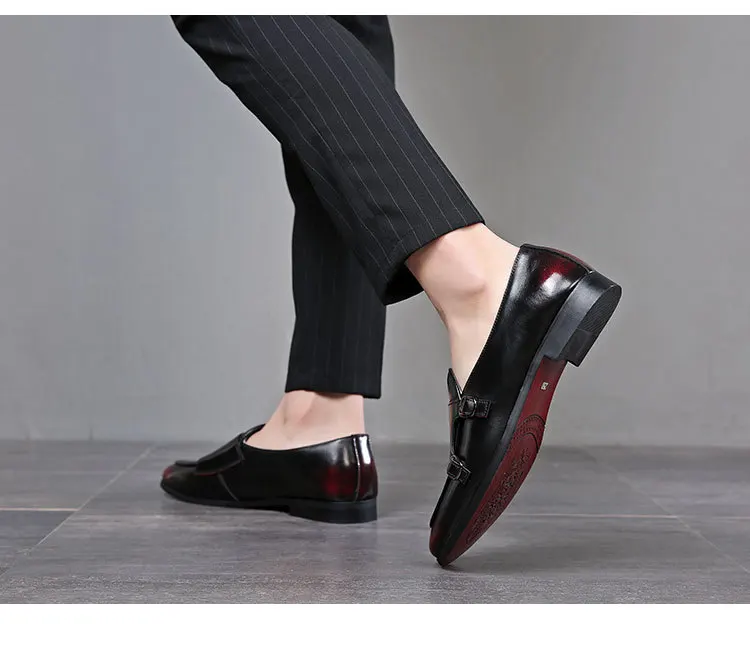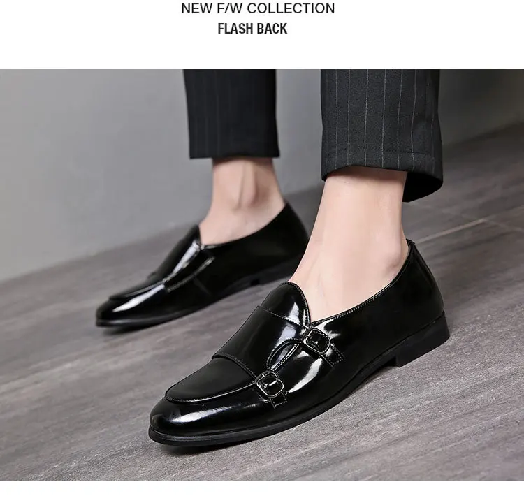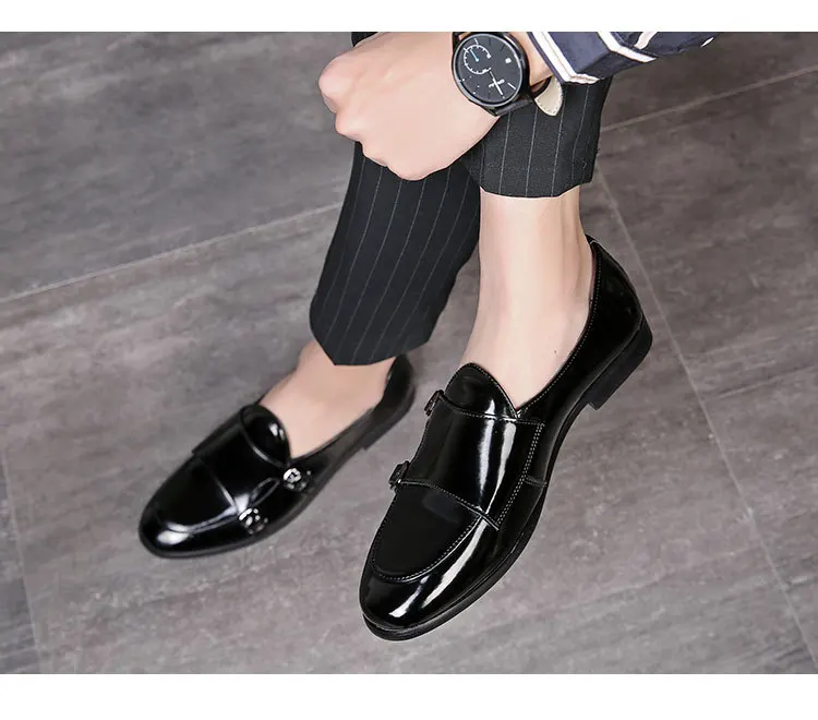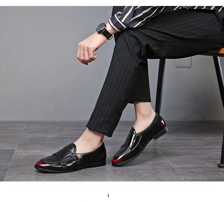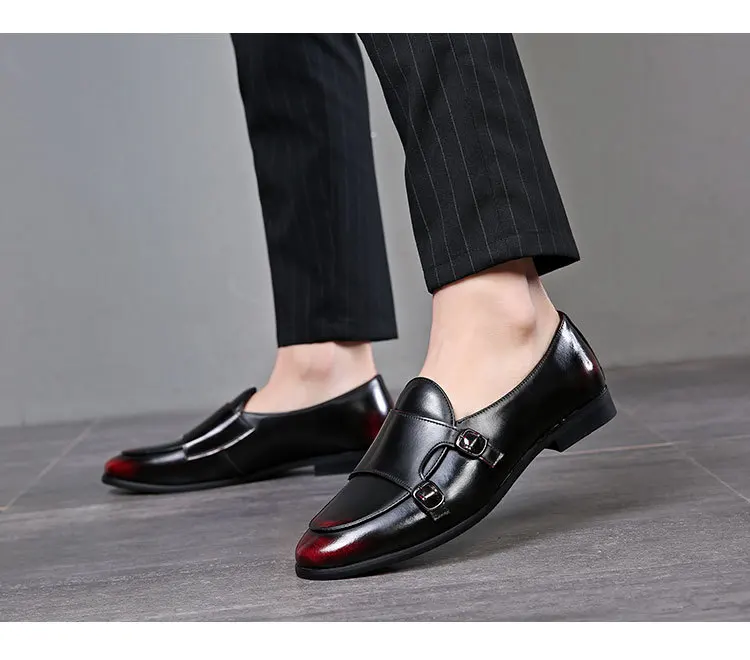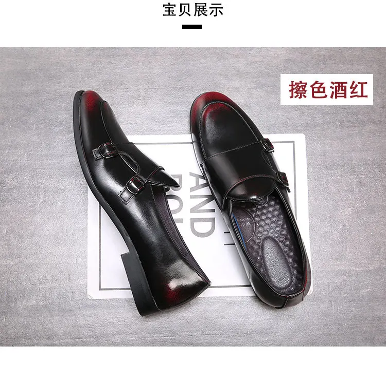 Men Dress Shoes Double Buckle Monk Loafers Classic Business Elegant Male Formal Suit Party Shoes Slip On Leather Masculino