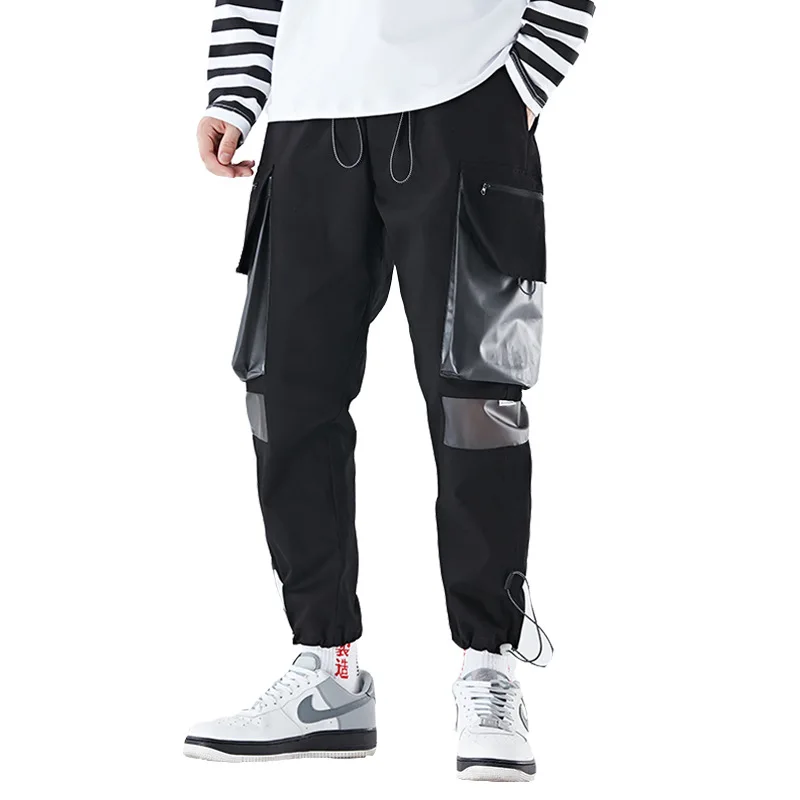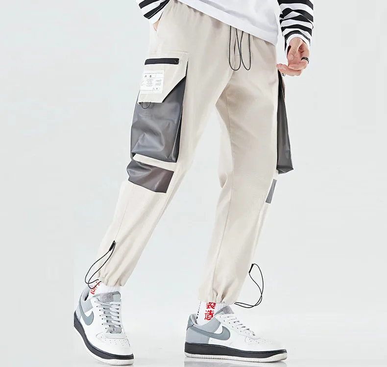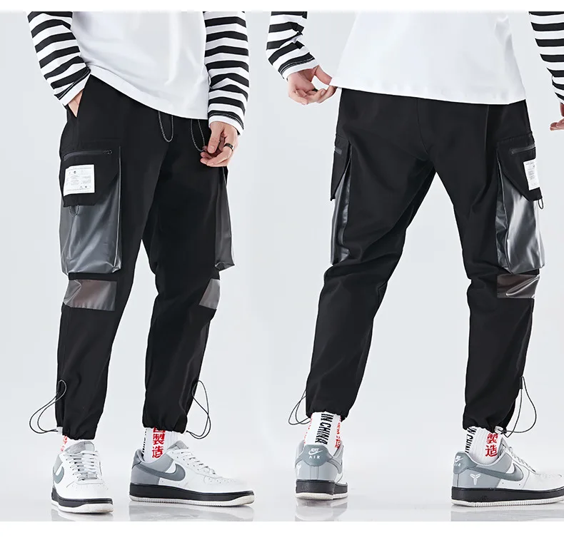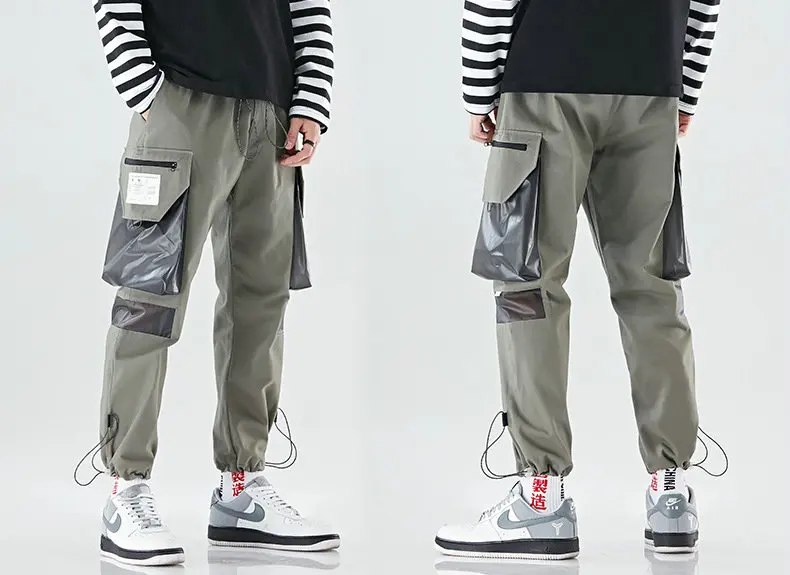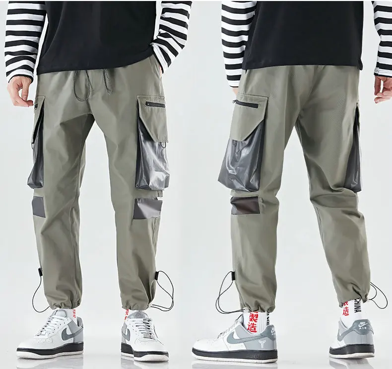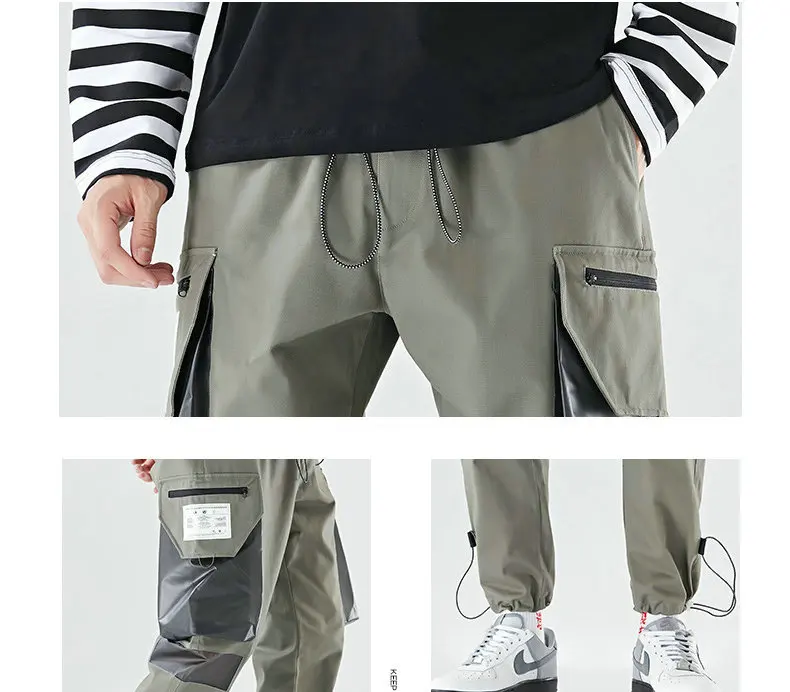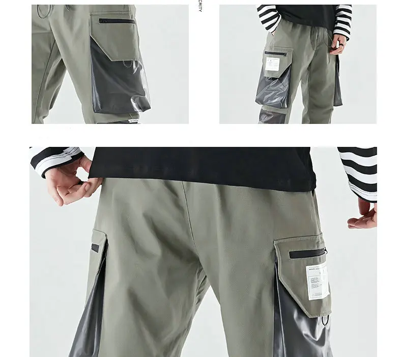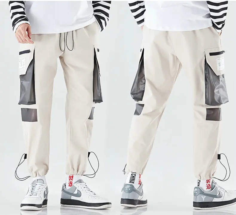 Men Elastic Waist Cargo Pants Streetwear Nice Pop Hip Hop Large Pockets Casual Pants Fashion Cargo Pants Men Joggers Trousers