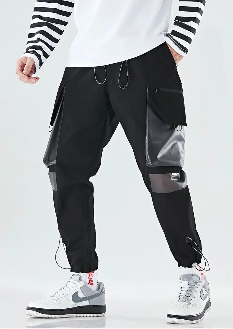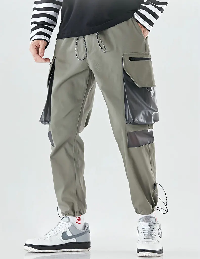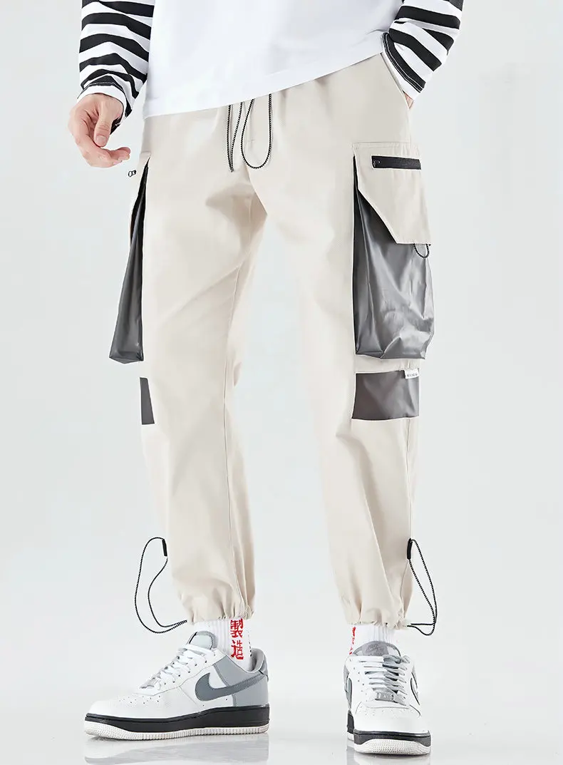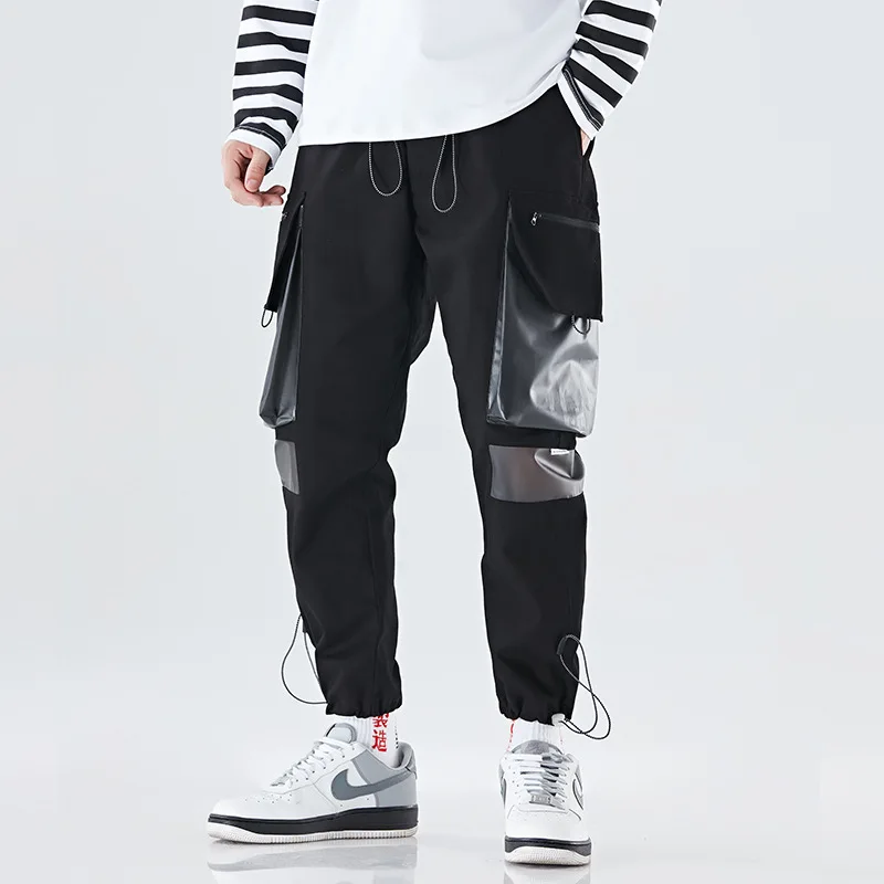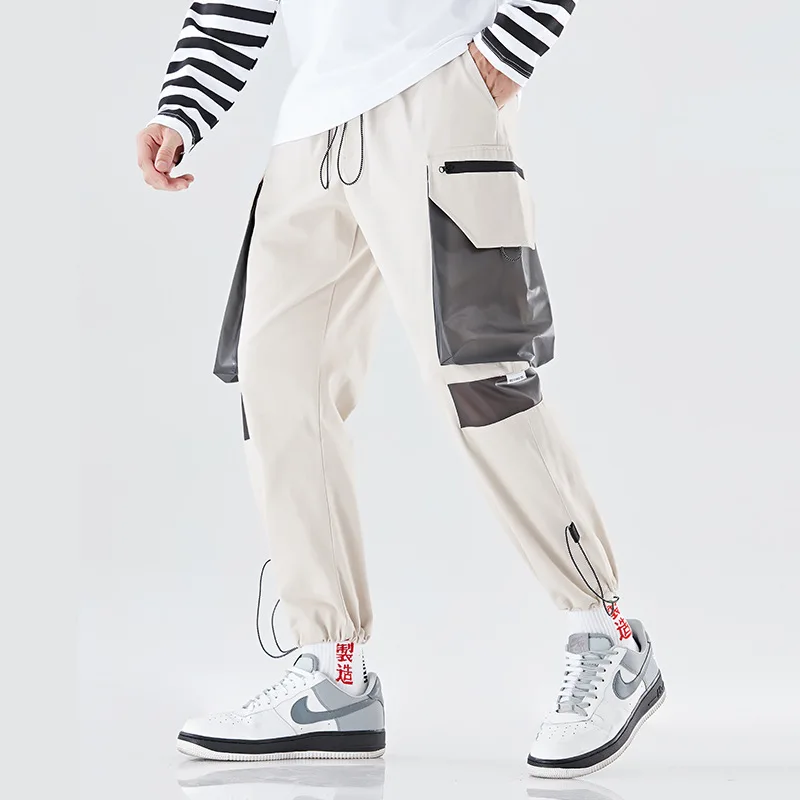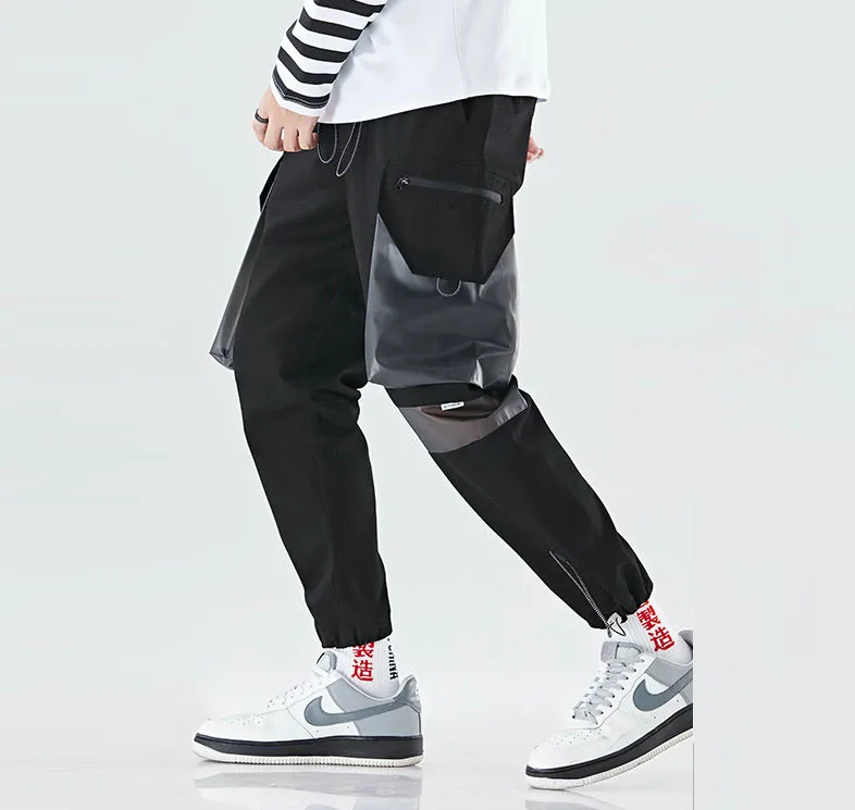 Men Elastic Waist Cargo Pants Streetwear Nice Pop Hip Hop Large Pockets Casual Pants Fashion Cargo Pants Men Joggers Trousers