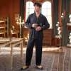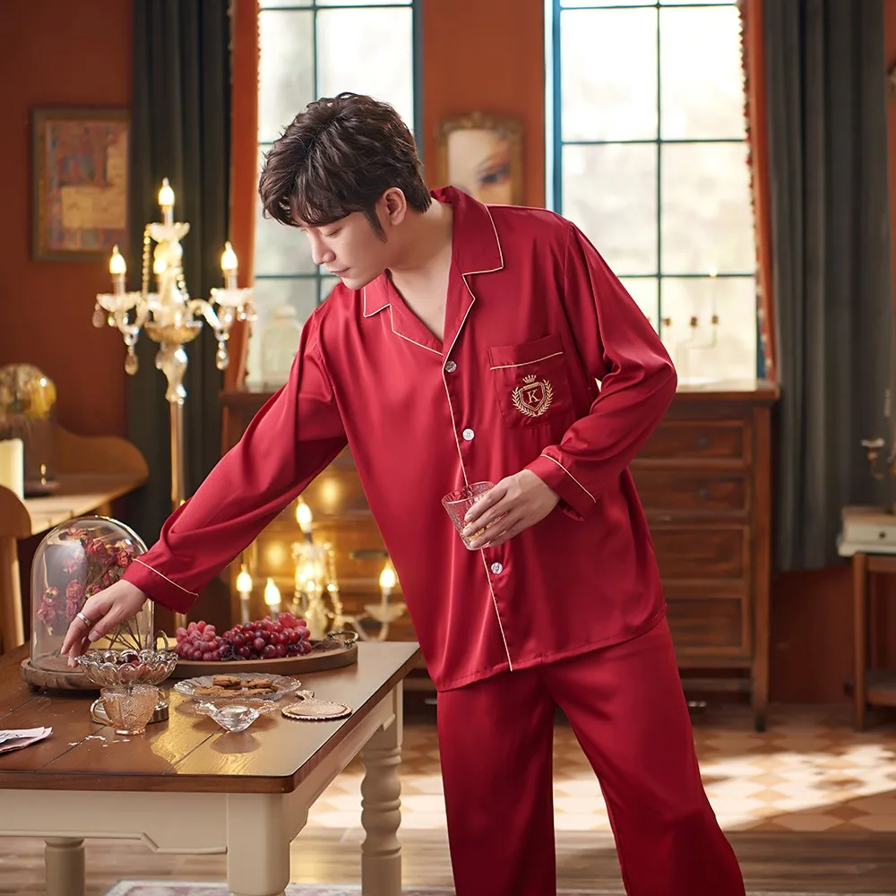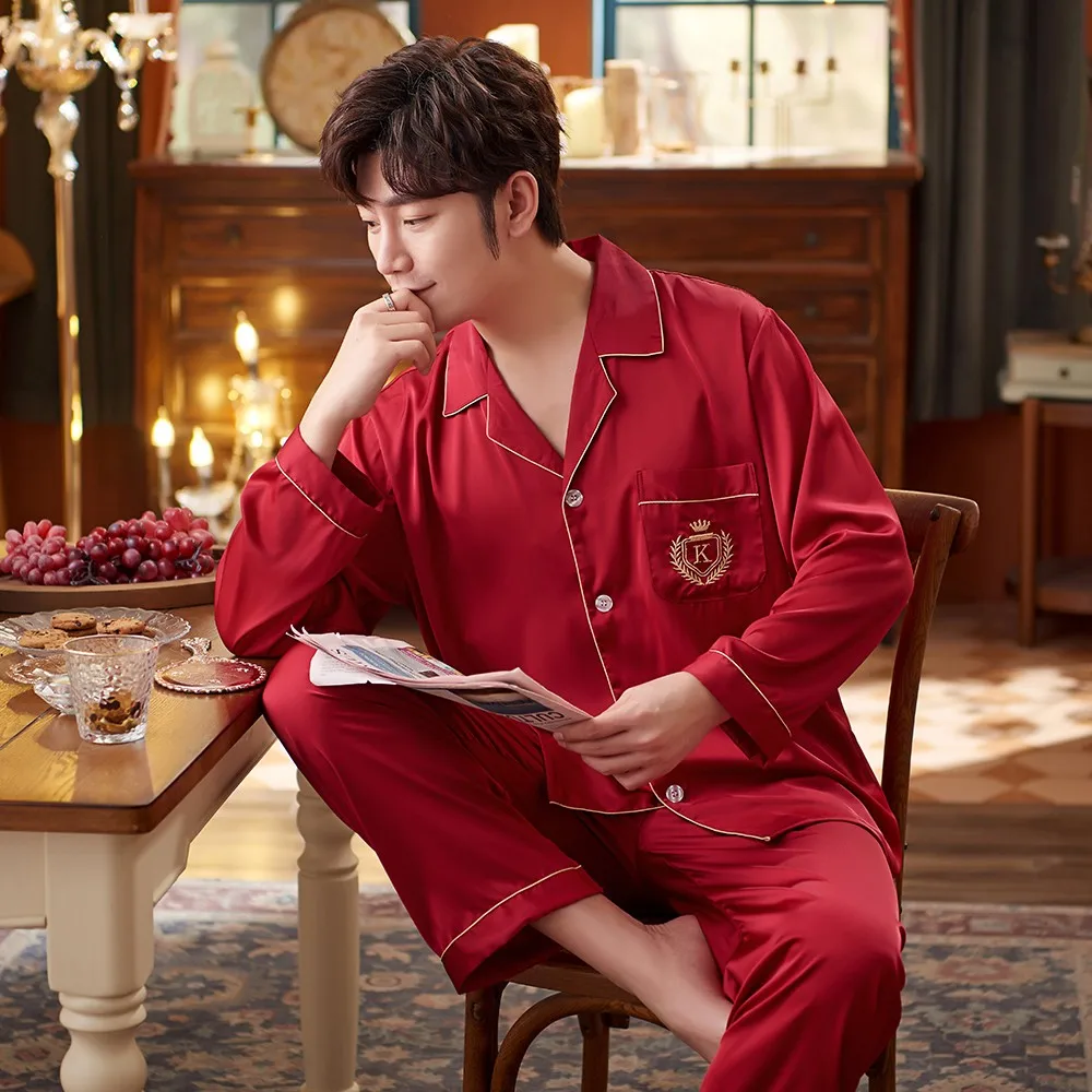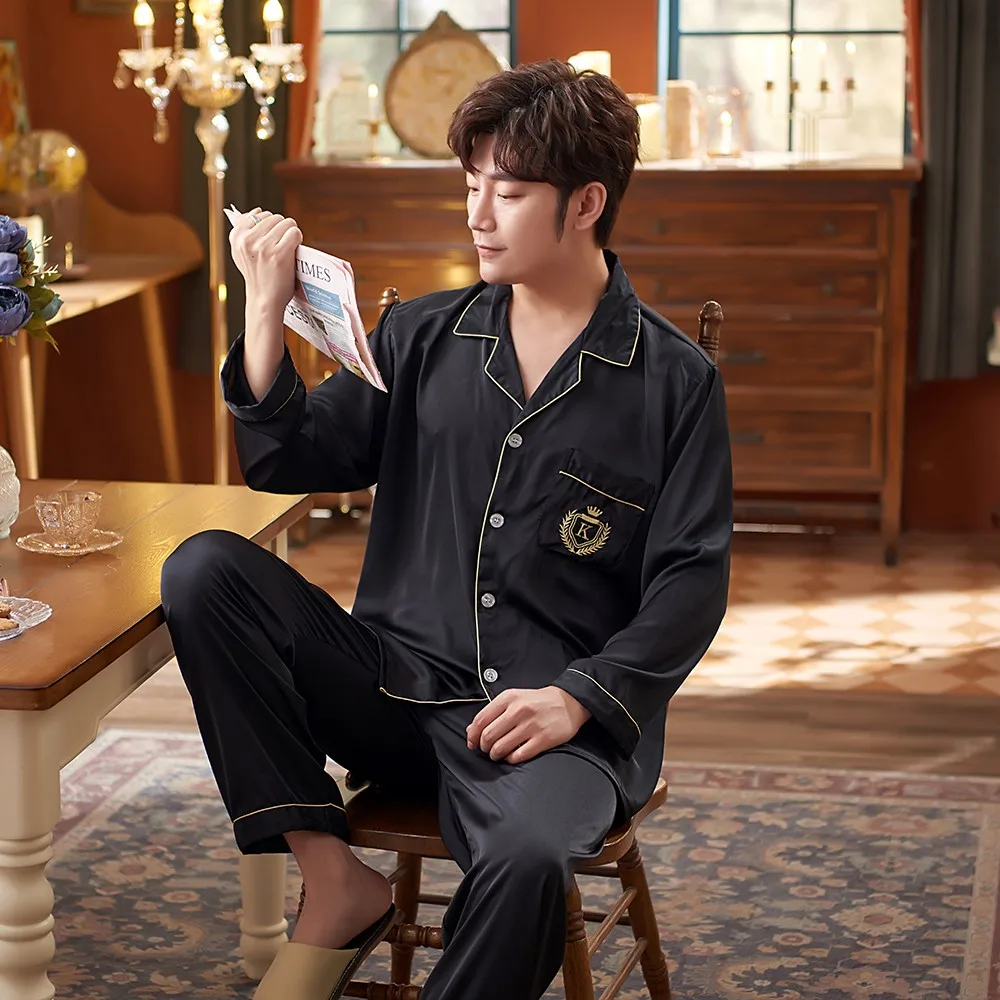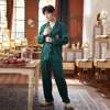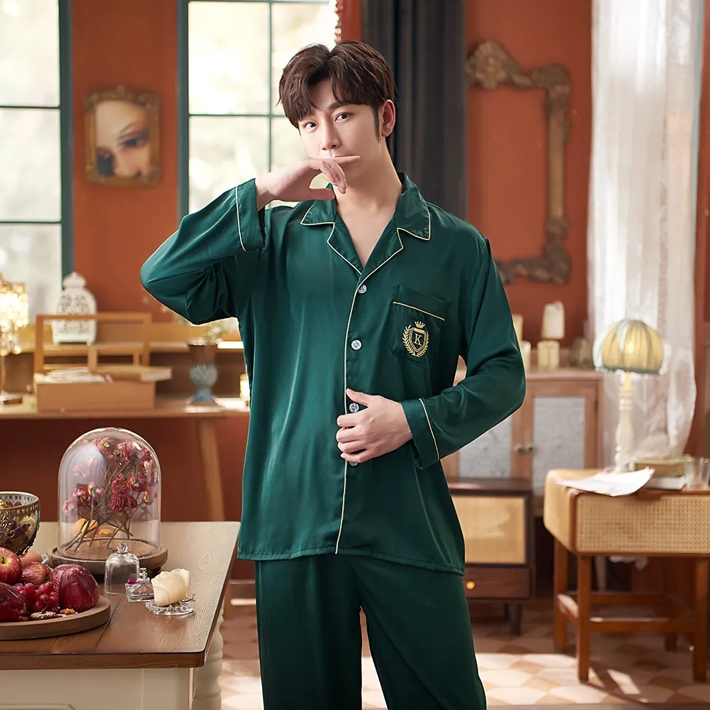 Men Green Pajamas Set Satin Silky 2PCS Sleepwear Long Sleeve Shirt&Pants Male Casual Sleep Set Spring New Pyjamas Suit Homewear