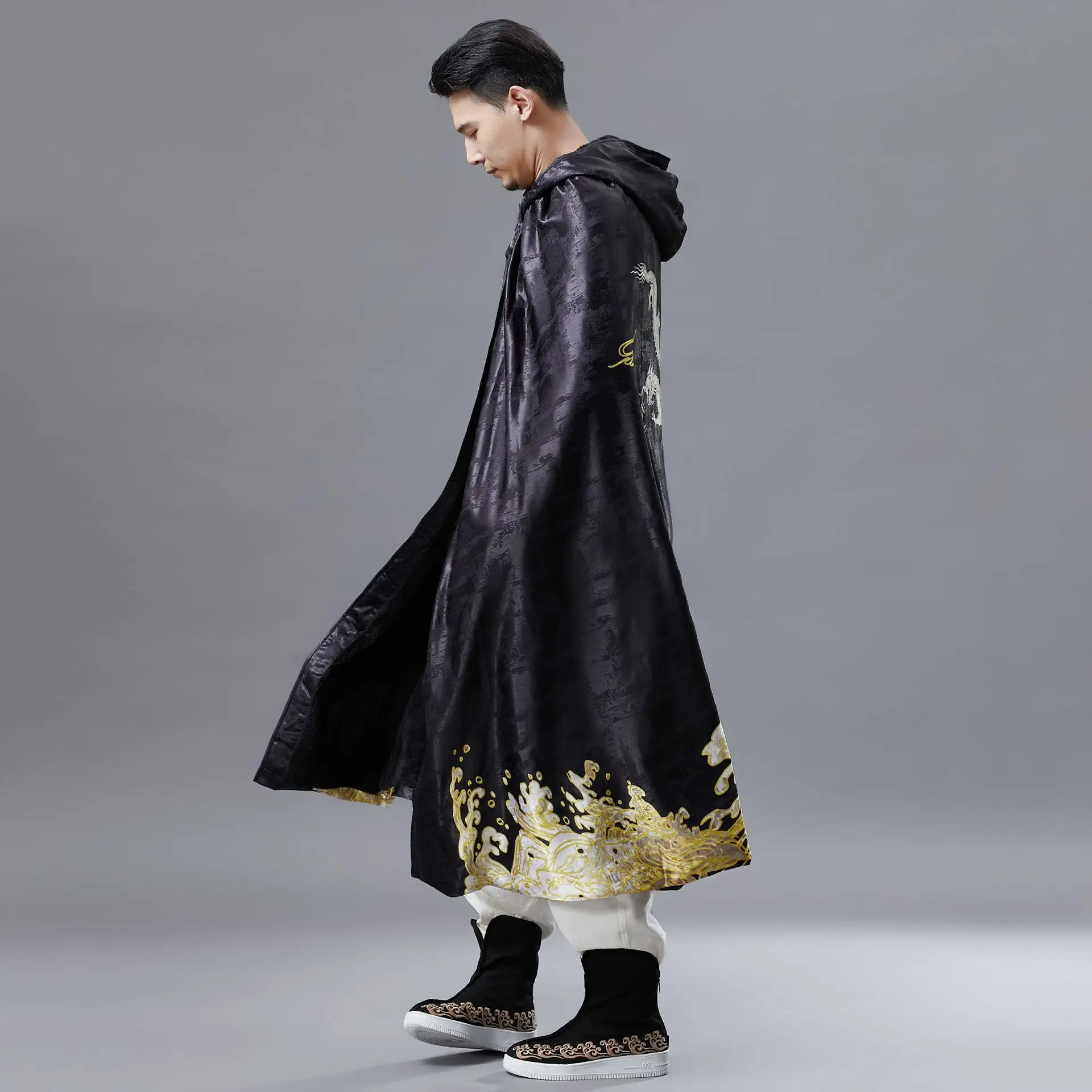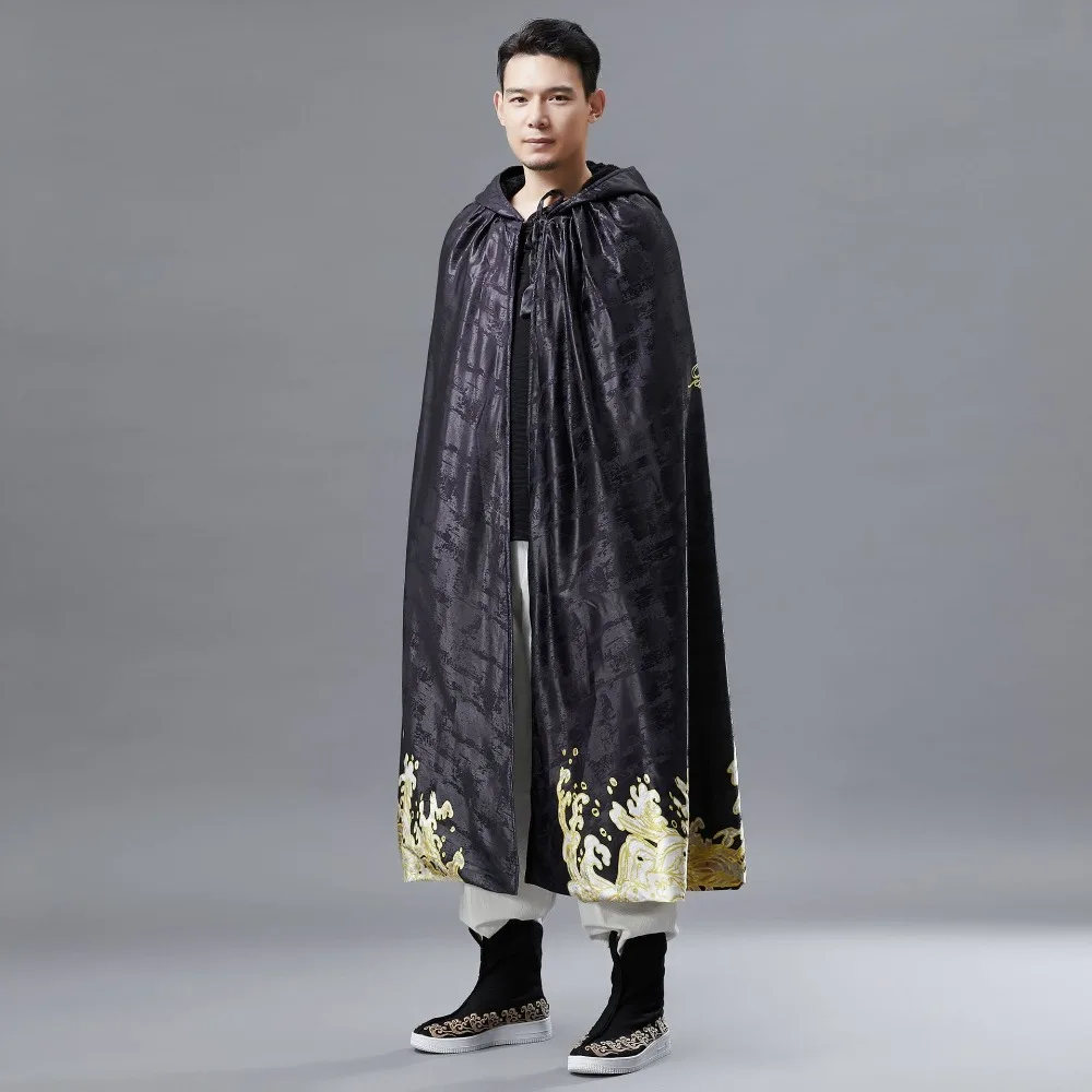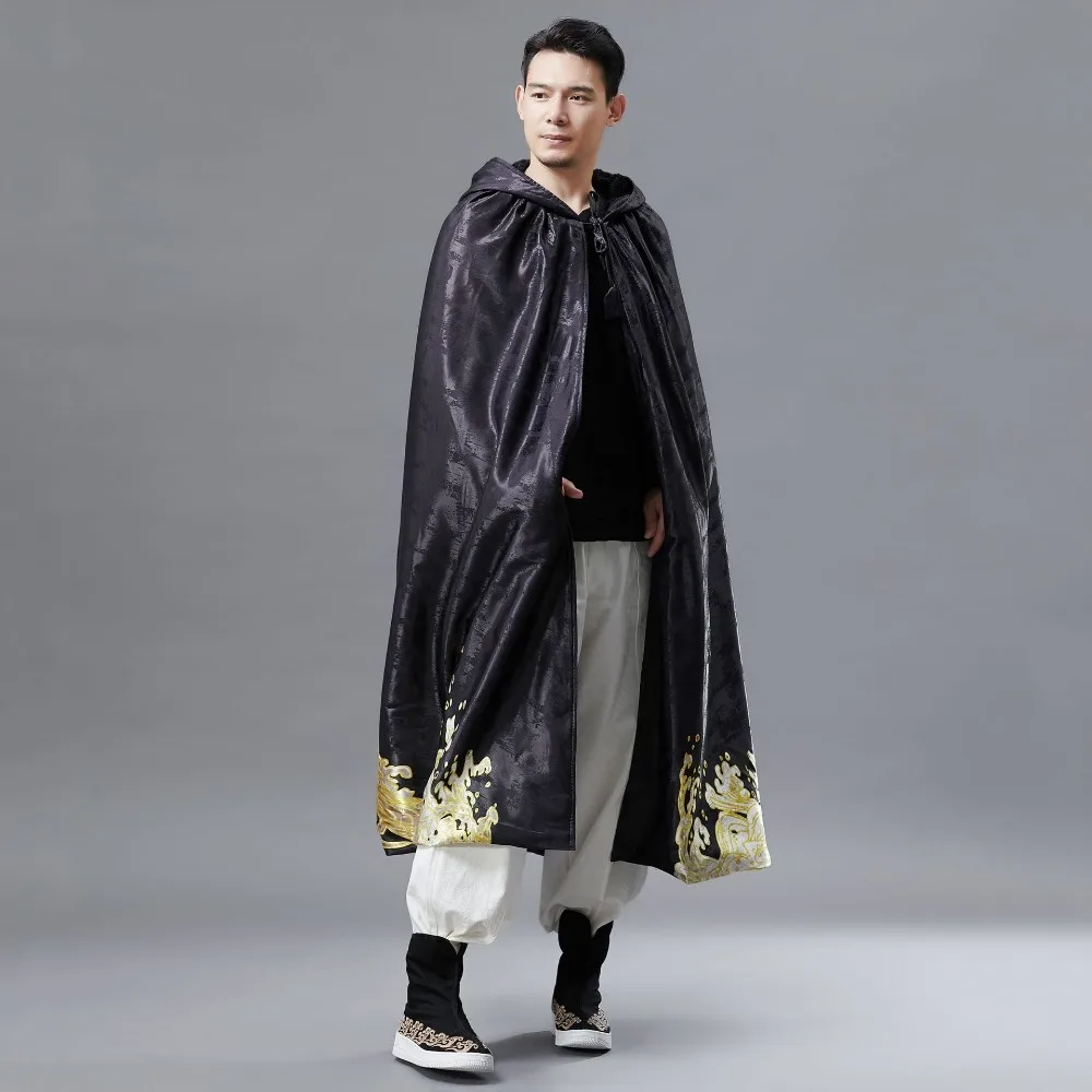 Men Hooded Cloak Vintage Golden Dragon Print Overcoat Mens Long Coat Spring Winter Fashion Men’s Windbreaker Capes Raincoat