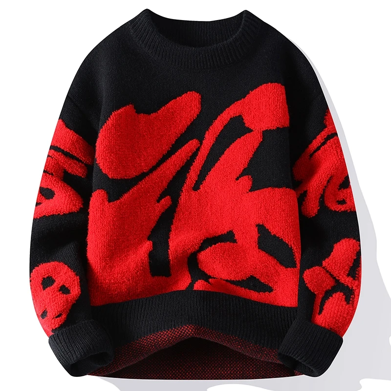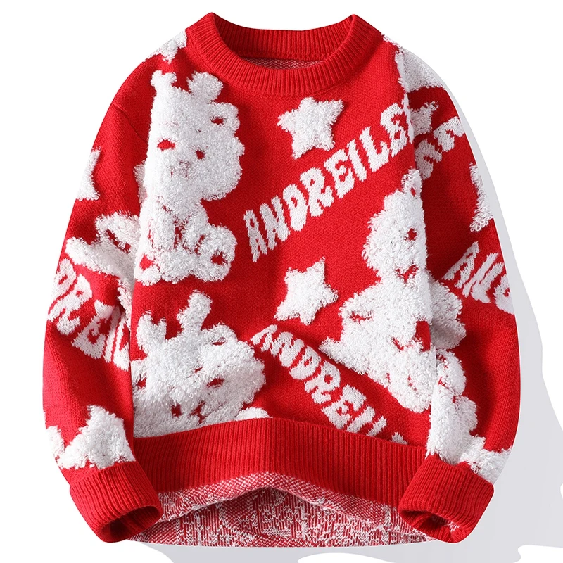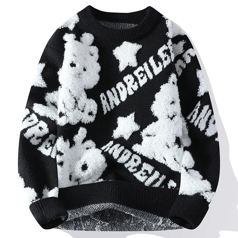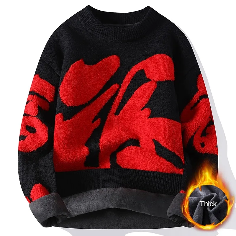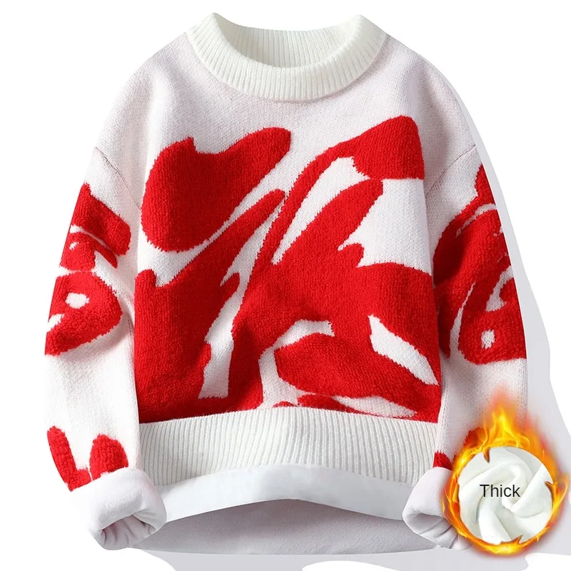 Men Knitted Cartoon Sweater Dragon Winter Letter Sweater Jacquard Women Loose Thick Warm Knitwear Fleece Couple Pullover Unisex