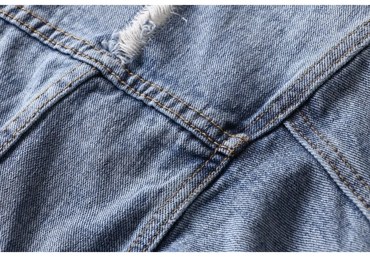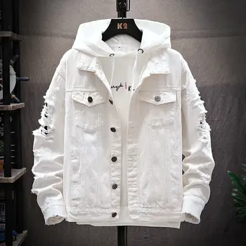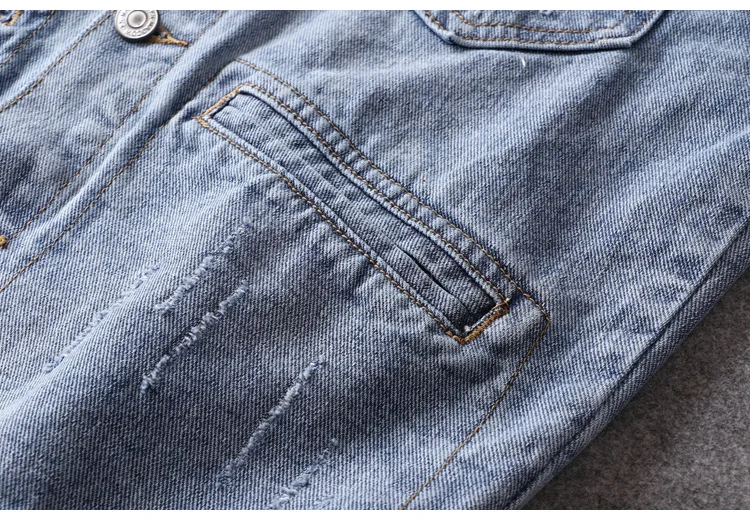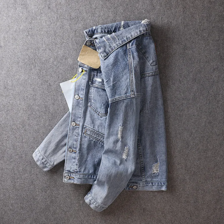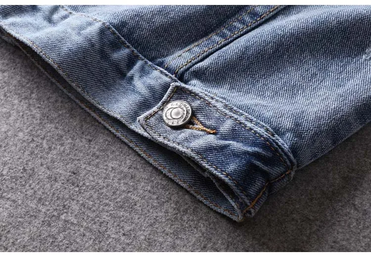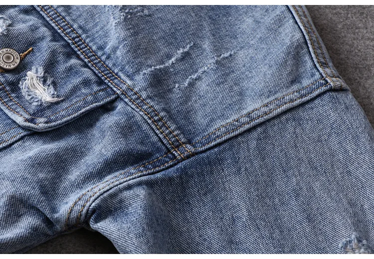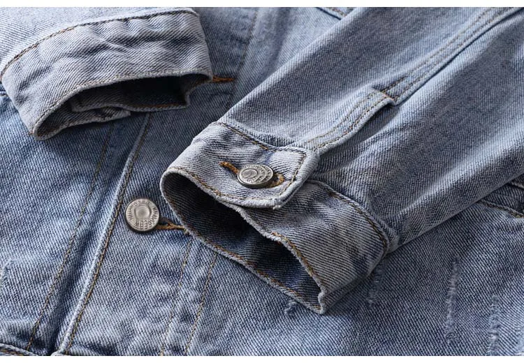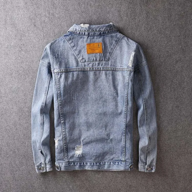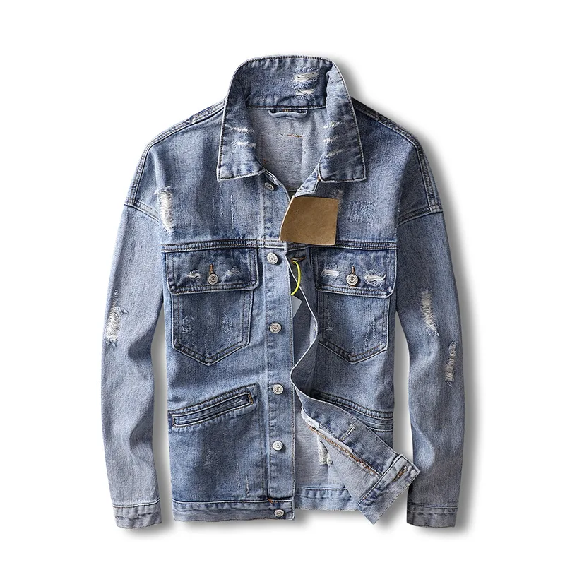 Men Light Blue Denim Jackets Holes Jean Jackets Streetwear Casual Denim Coats Men Cotton Outwear Slim Denim Jackets Size 3XL