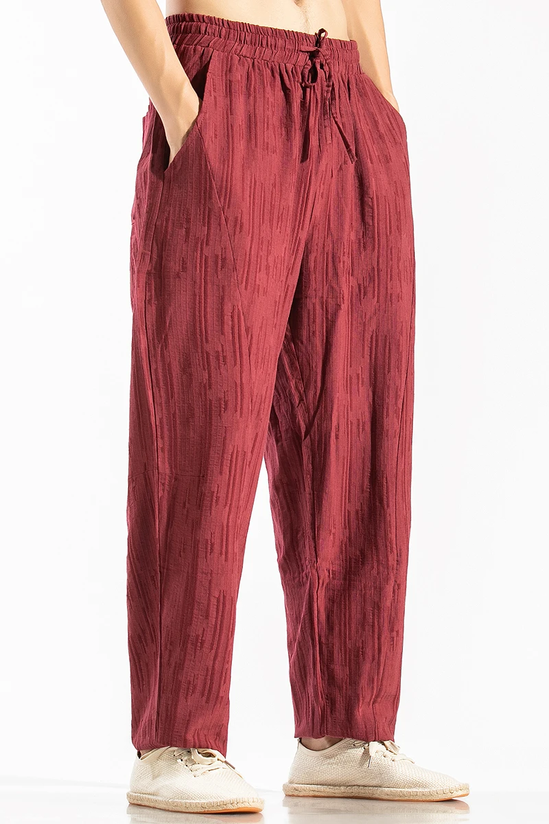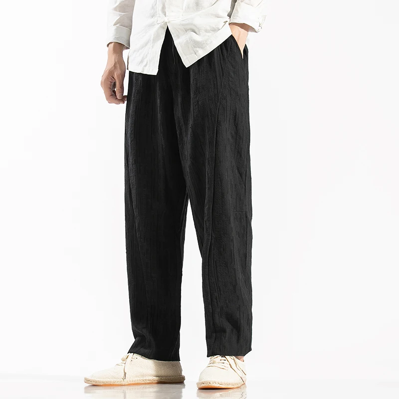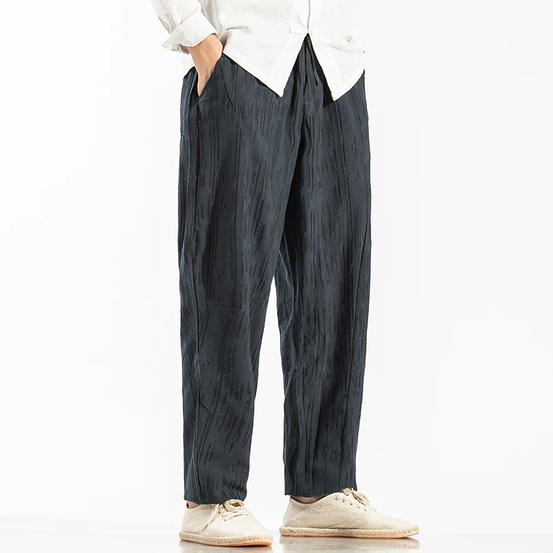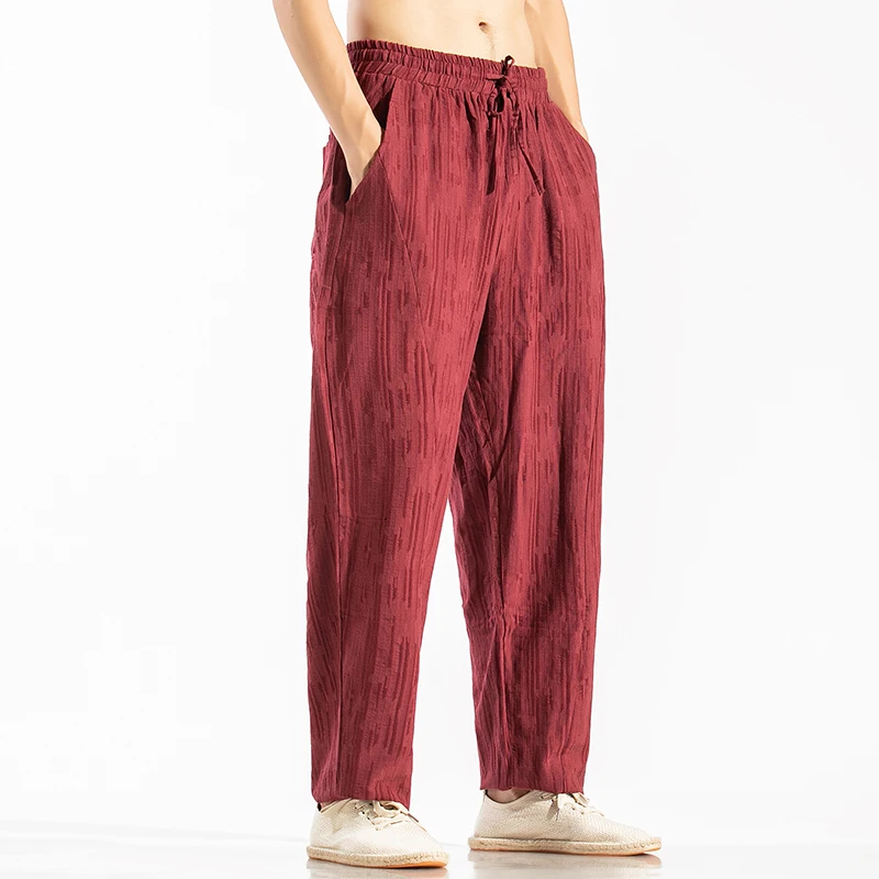 Men Linen Pants Mens Casual Harem Pants Men Cotton Solid Trousers Jogger Pants Fitness Male Elastic Waist Straight Pants