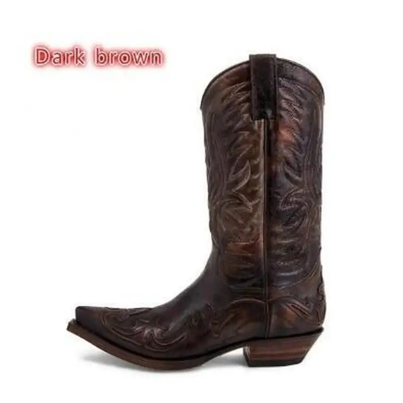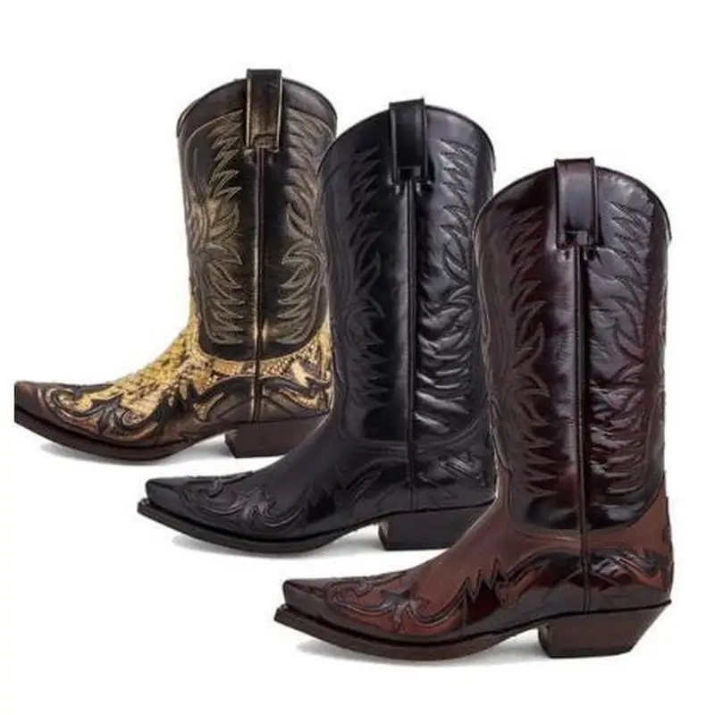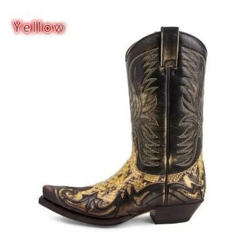 Men Male Man Plus Size Mid-calf Boots Autumn Embroidery Shoe Mens Vintage PU Leather Zapatos De Hombres Personlizar Zapatos