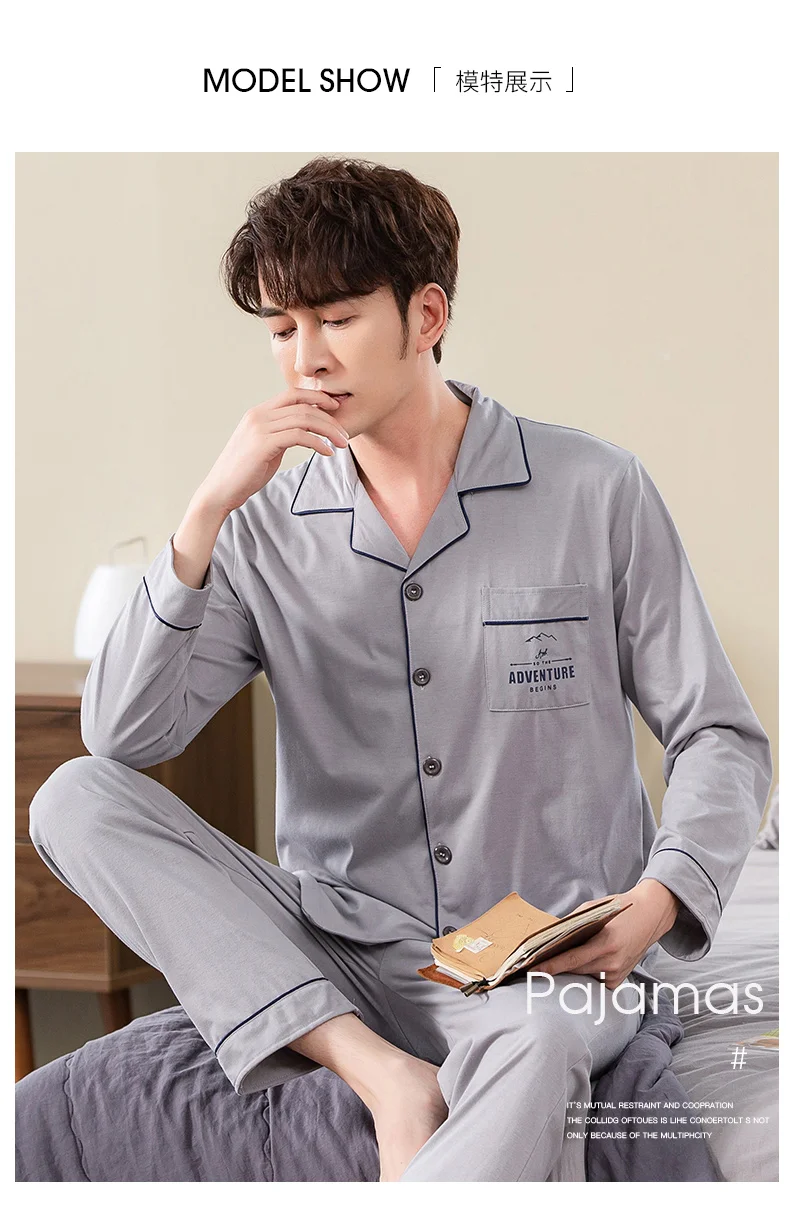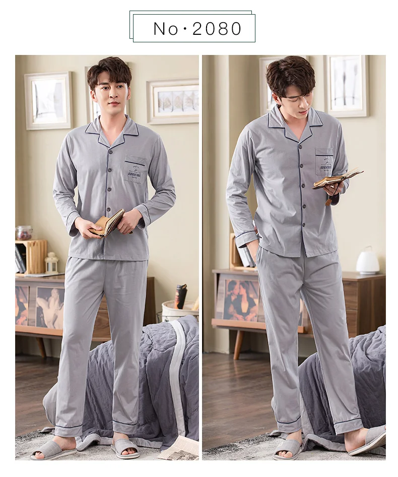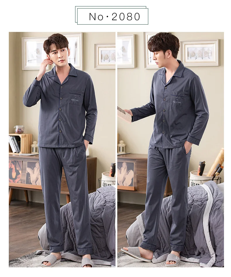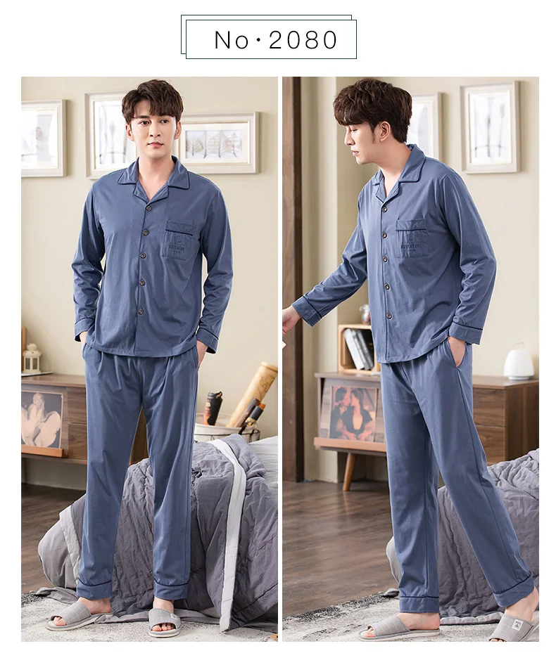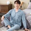 Men Pajama Set Full Cotton Autumn Long Sleeve Solid Color Men Pyjama Suit Spring Nightwear Collar Pijama Male Sleepwear XXXXL