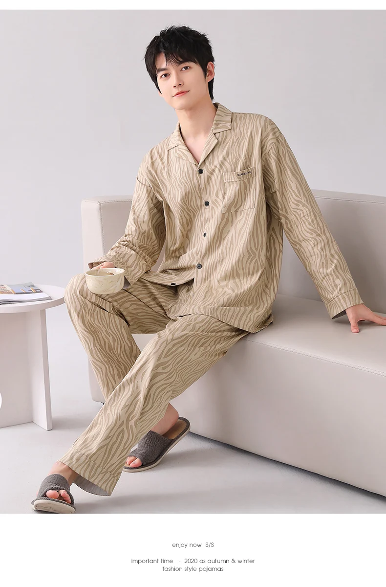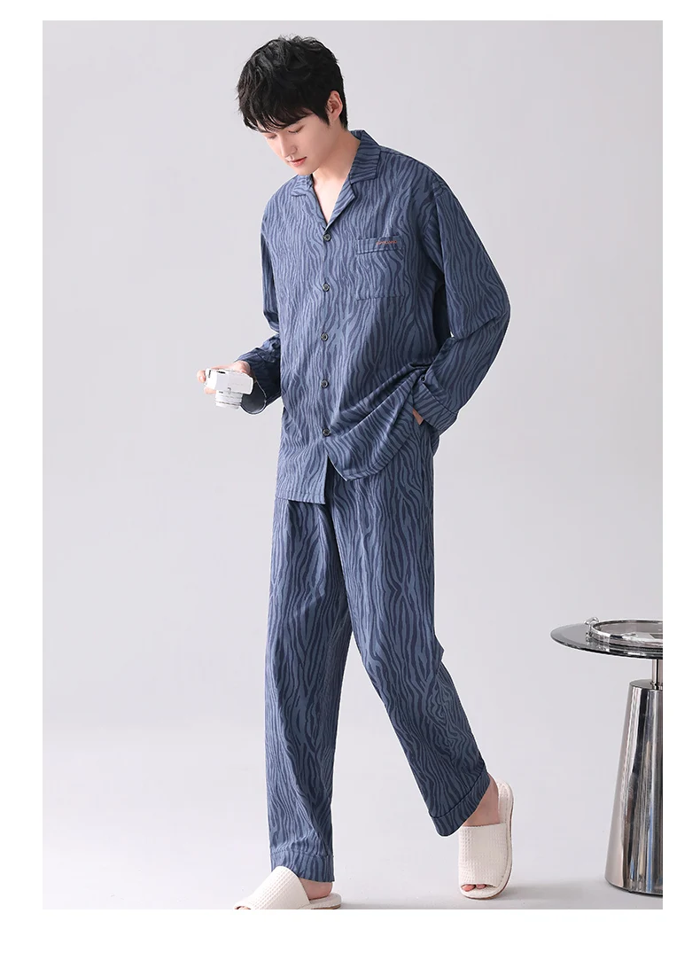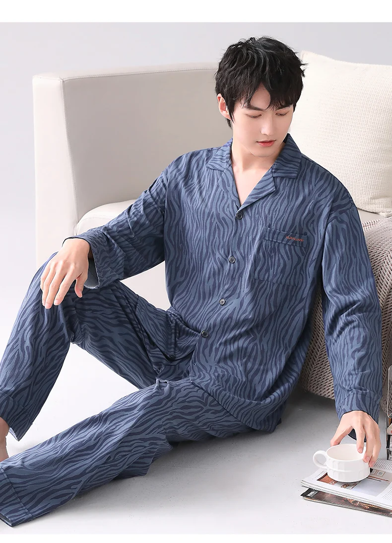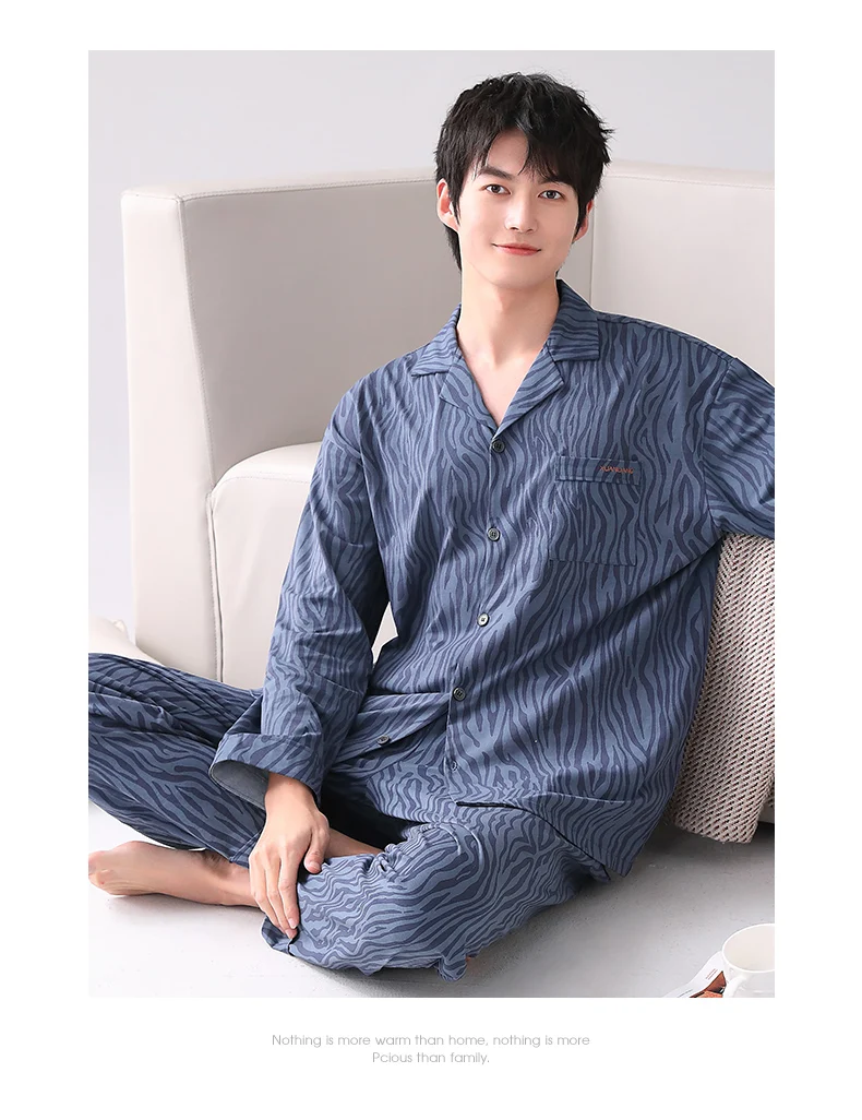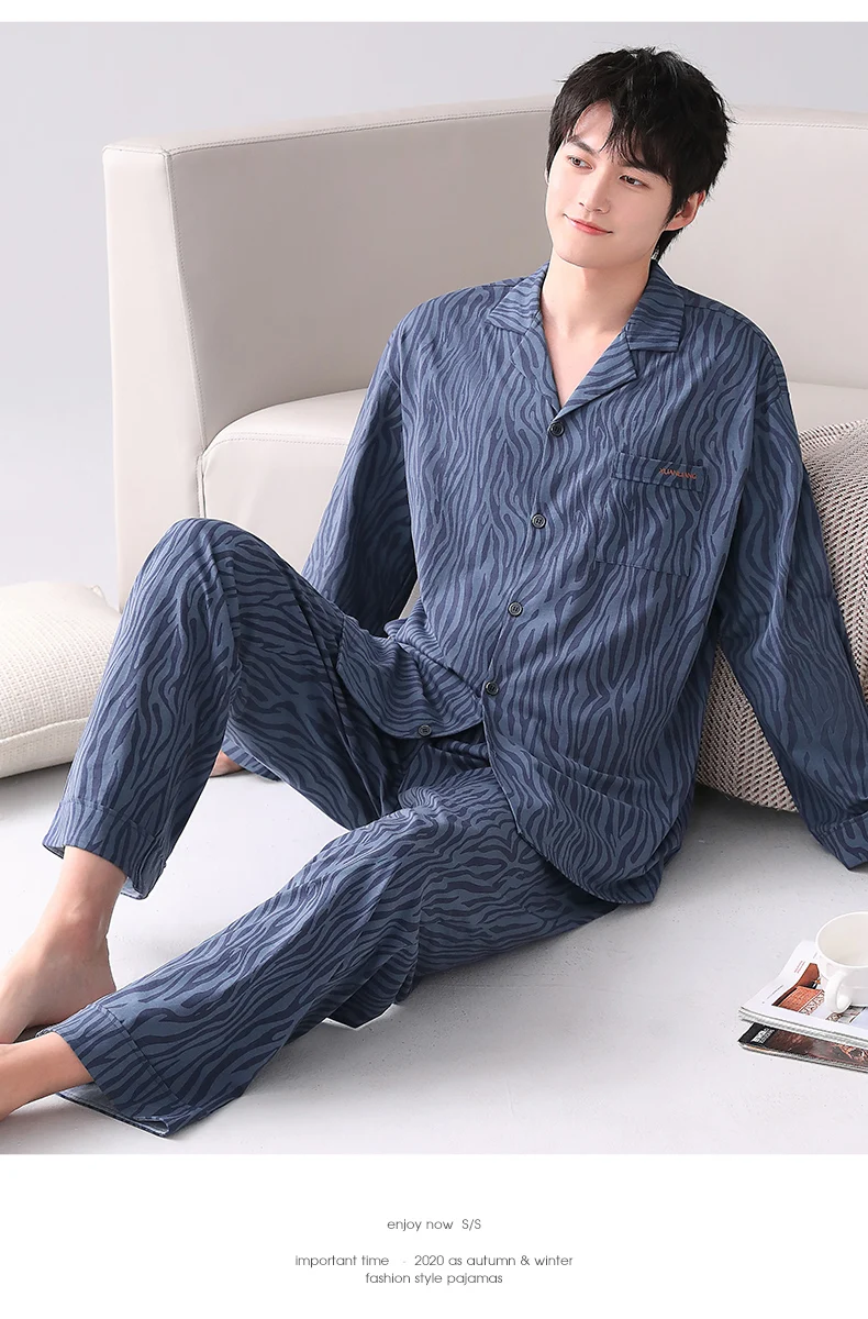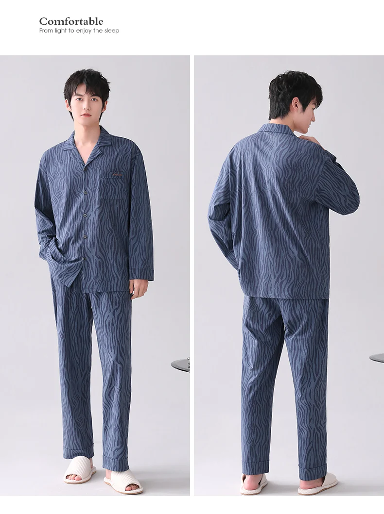 Men Pajamas Sets Cotton Pyjamas Male Button Cardigan Sleepwear Nightwear Long Sleeve Printed Casual Tracksuit Pijama Hombre